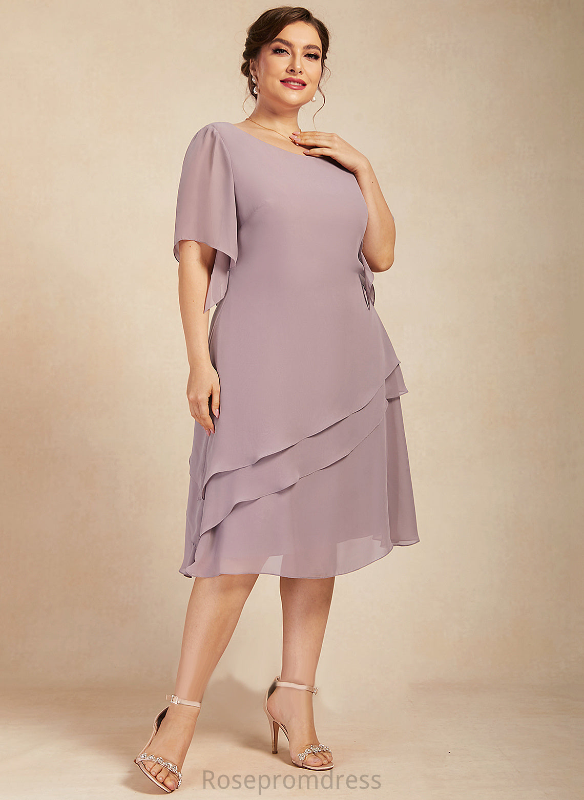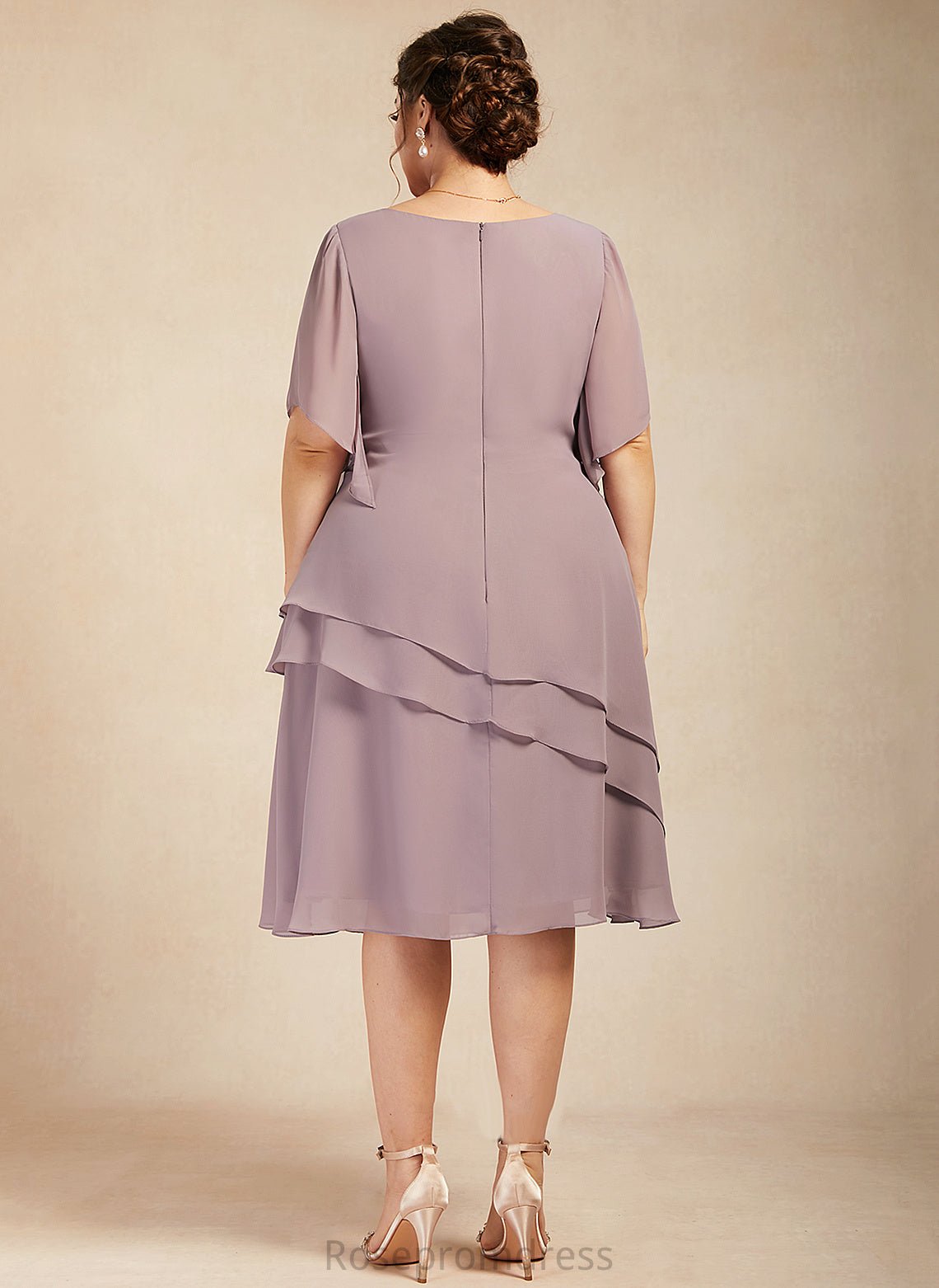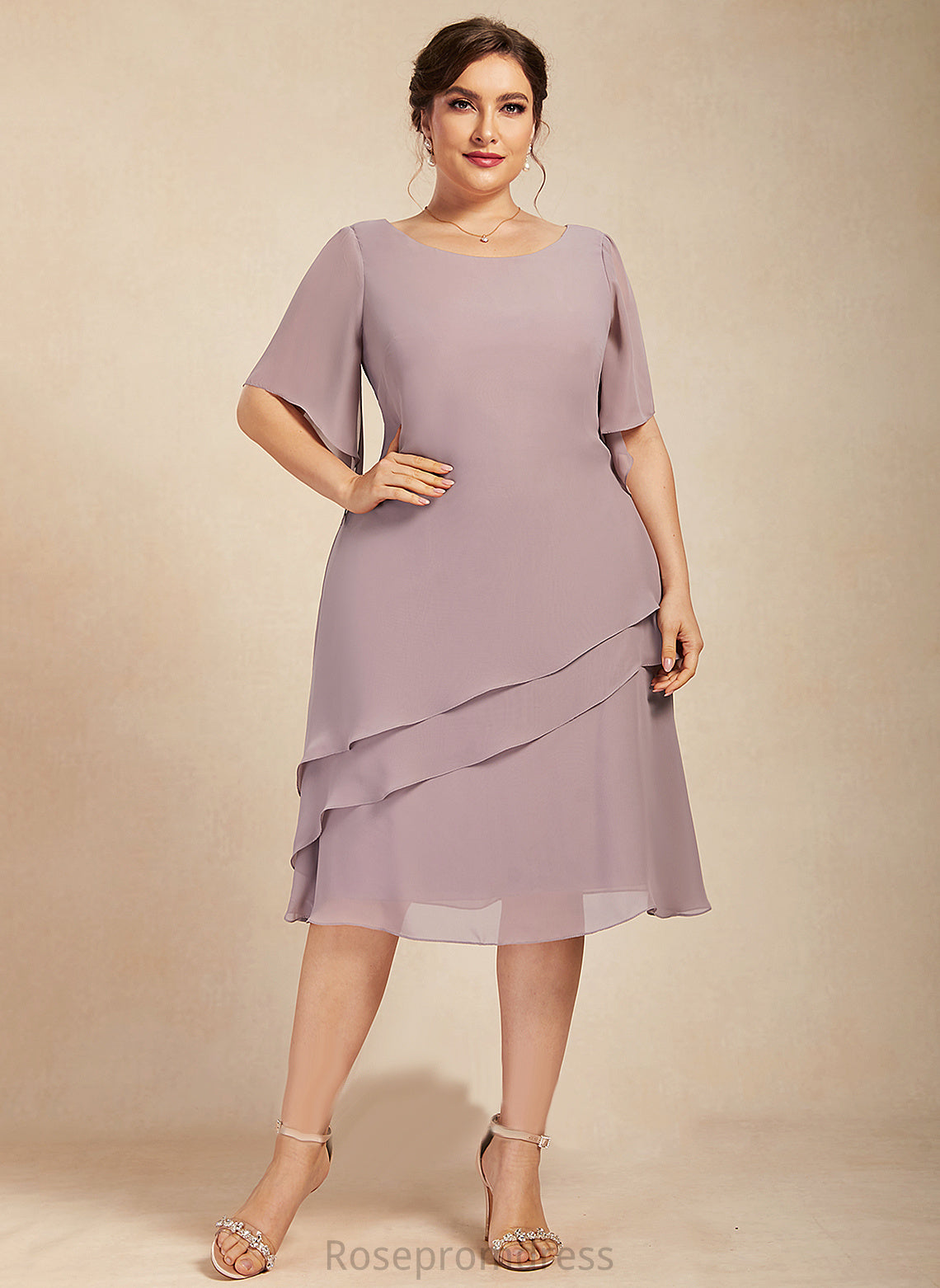 of Chiffon Mother Cascading A-Line the Knee-Length Dress Mother of the Bride Dresses Neck With Ruffles Bride Danica Scoop