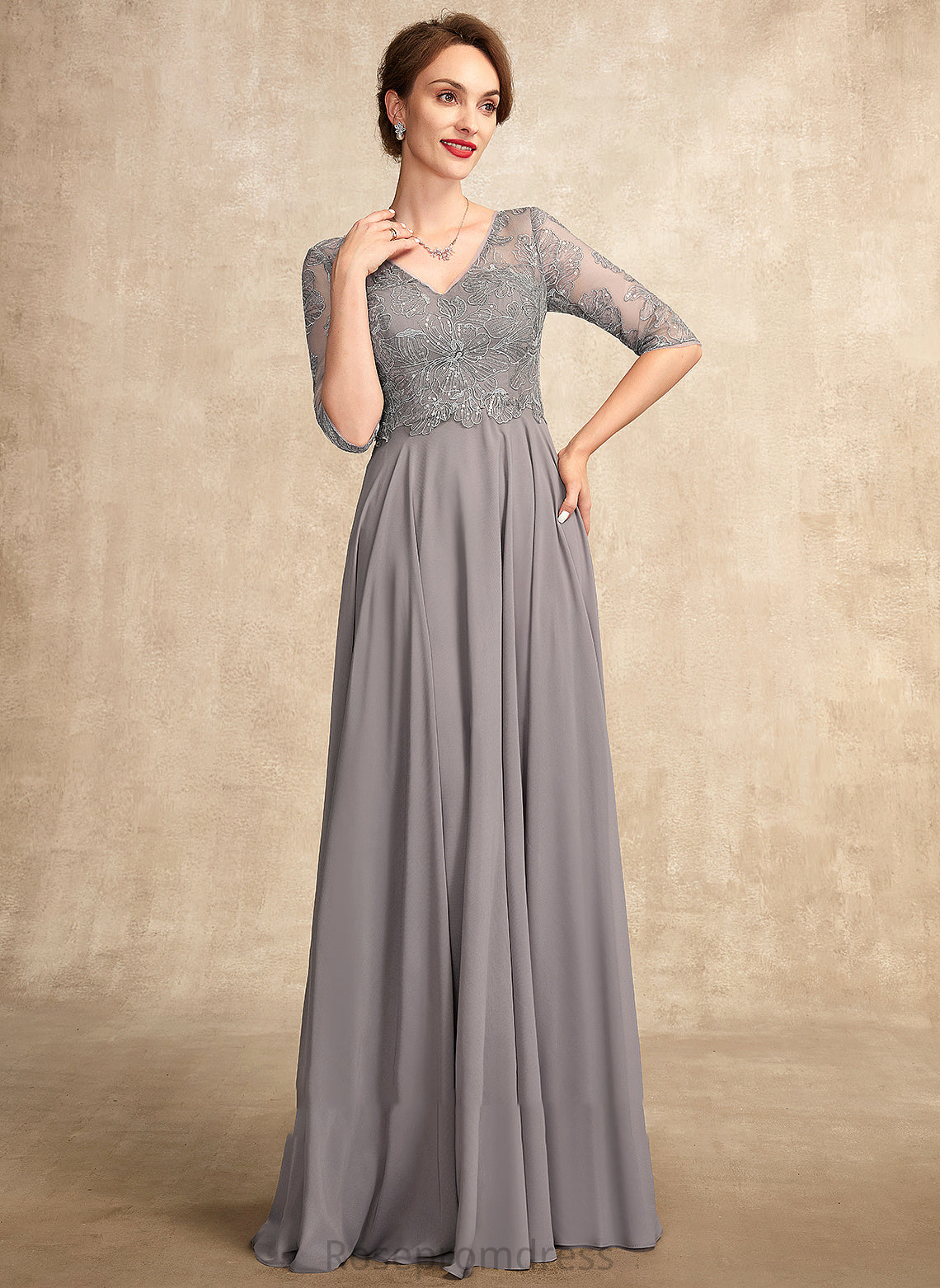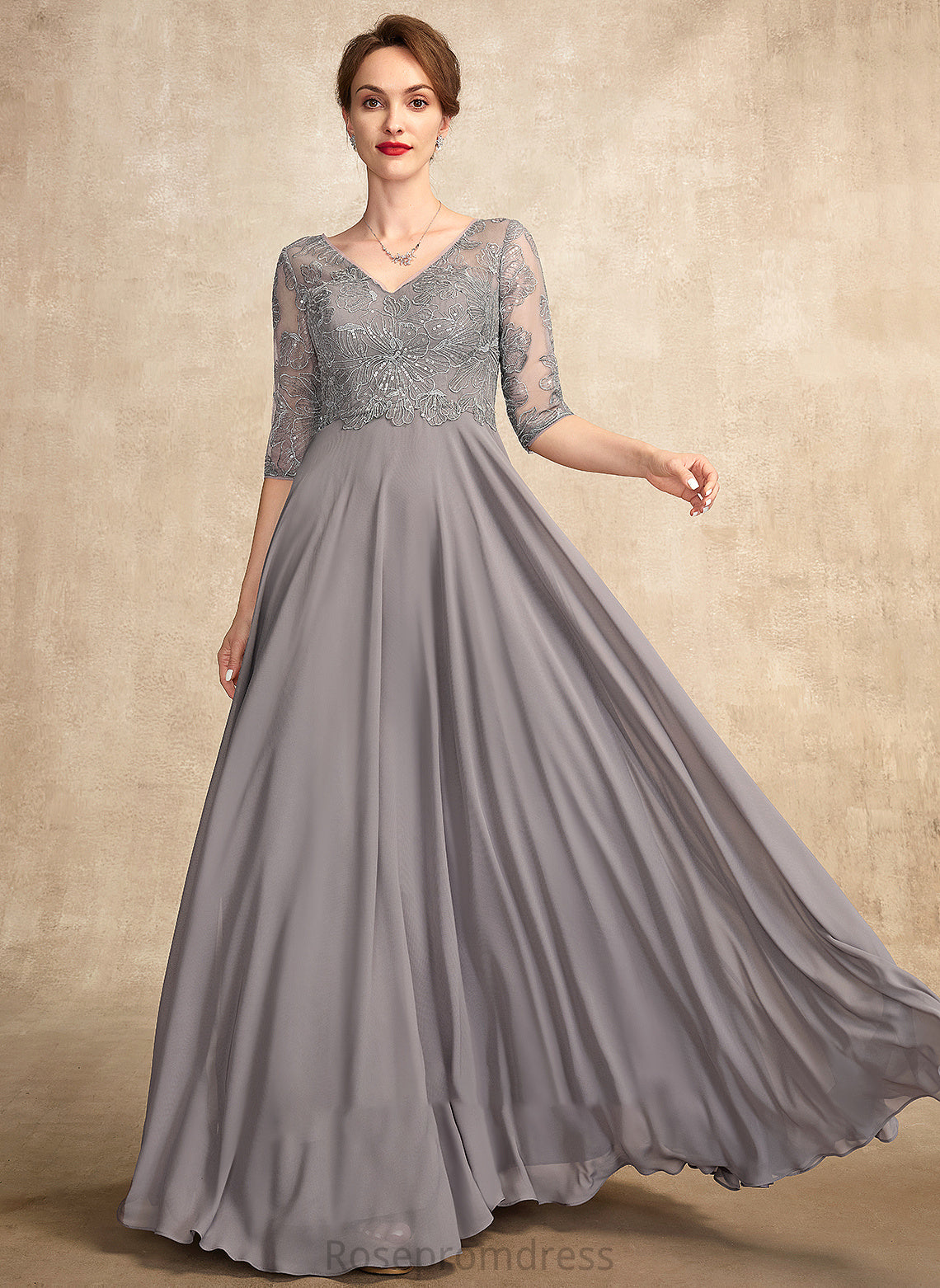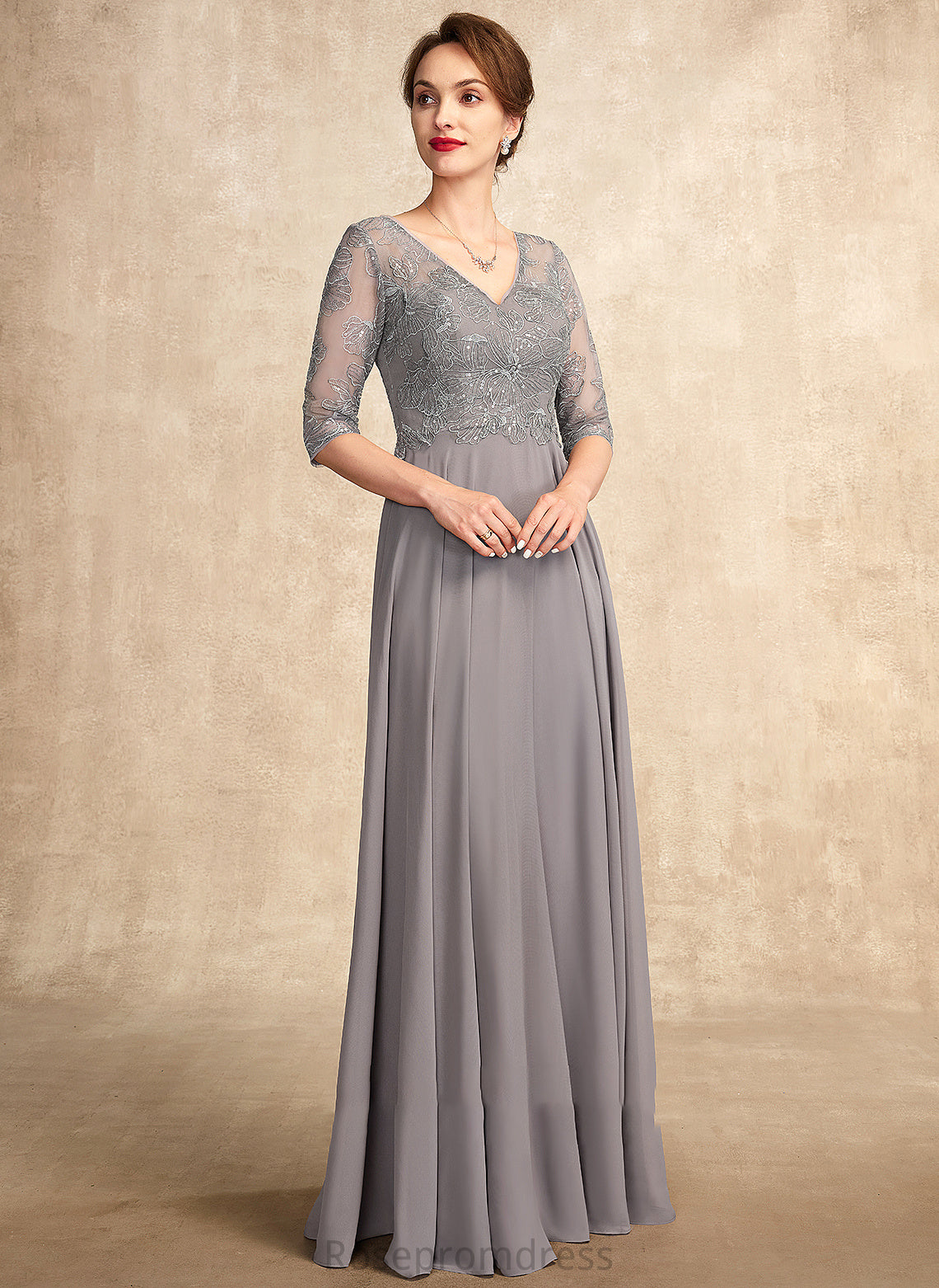 of Dress the Floor-Length Thirza Sequins With Mother Bride V-neck A-Line Mother of the Bride Dresses Chiffon Lace