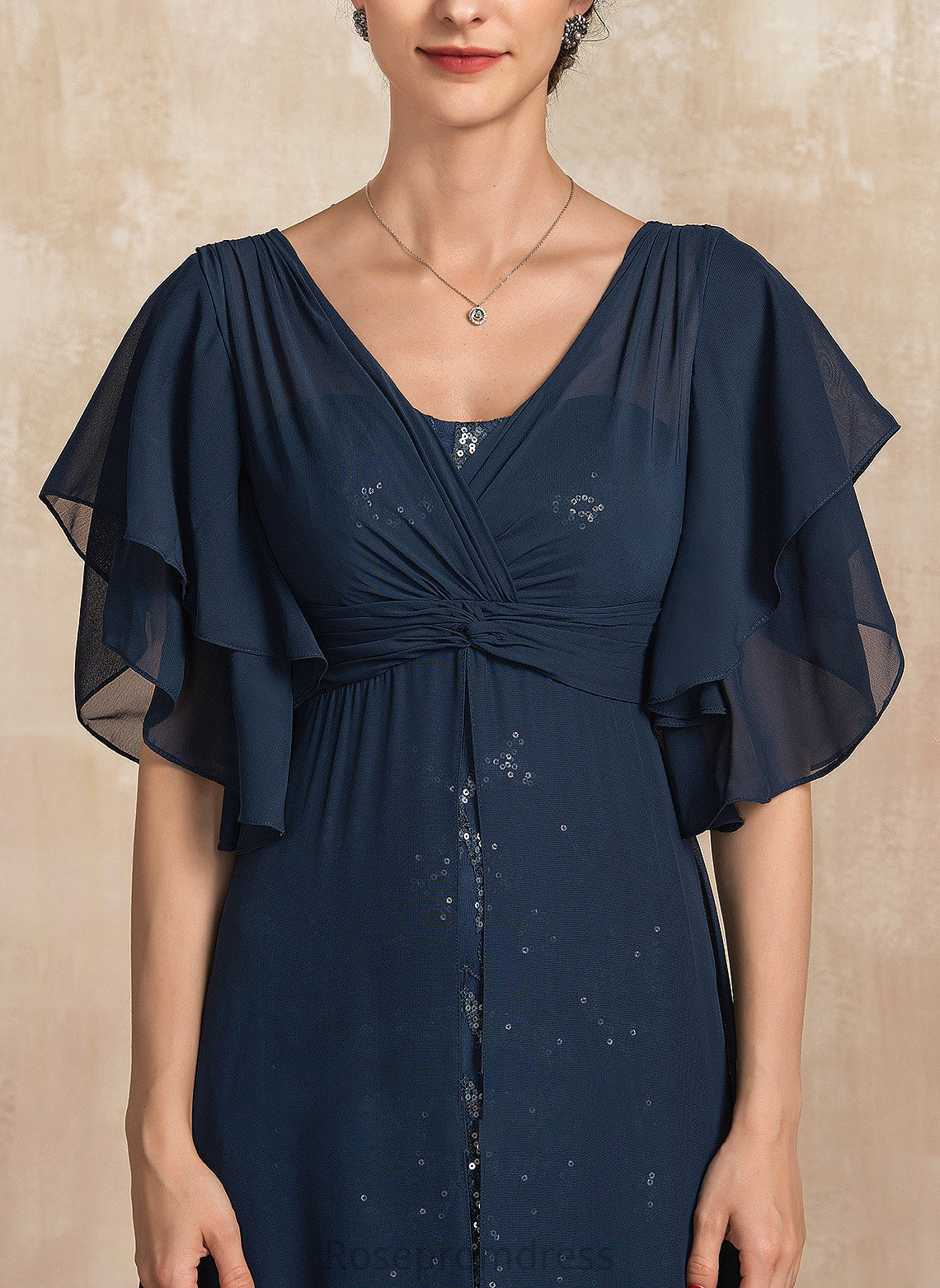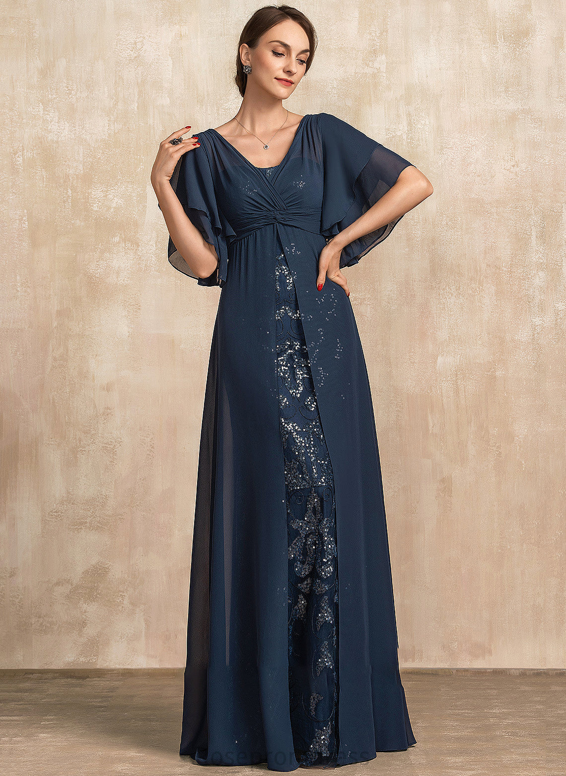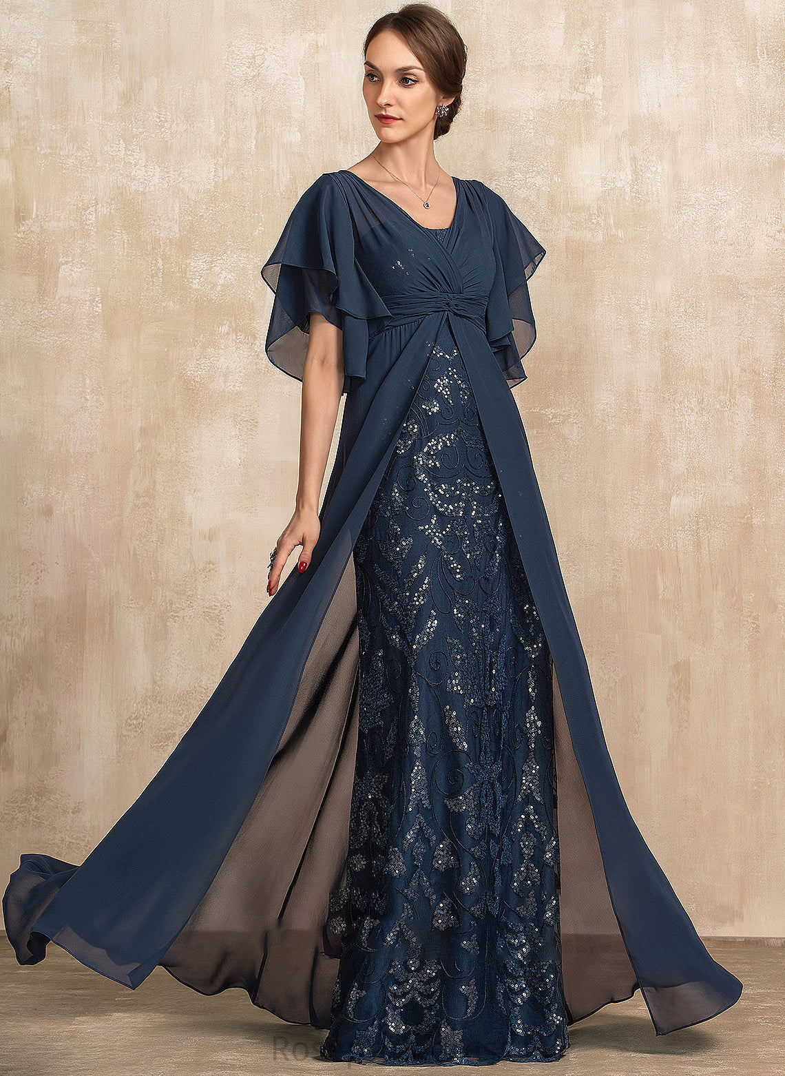 of Lace the Chiffon Dress Floor-Length Sequins Janet V-neck Mother of the Bride Dresses Ruffle Sheath/Column With Mother Bride