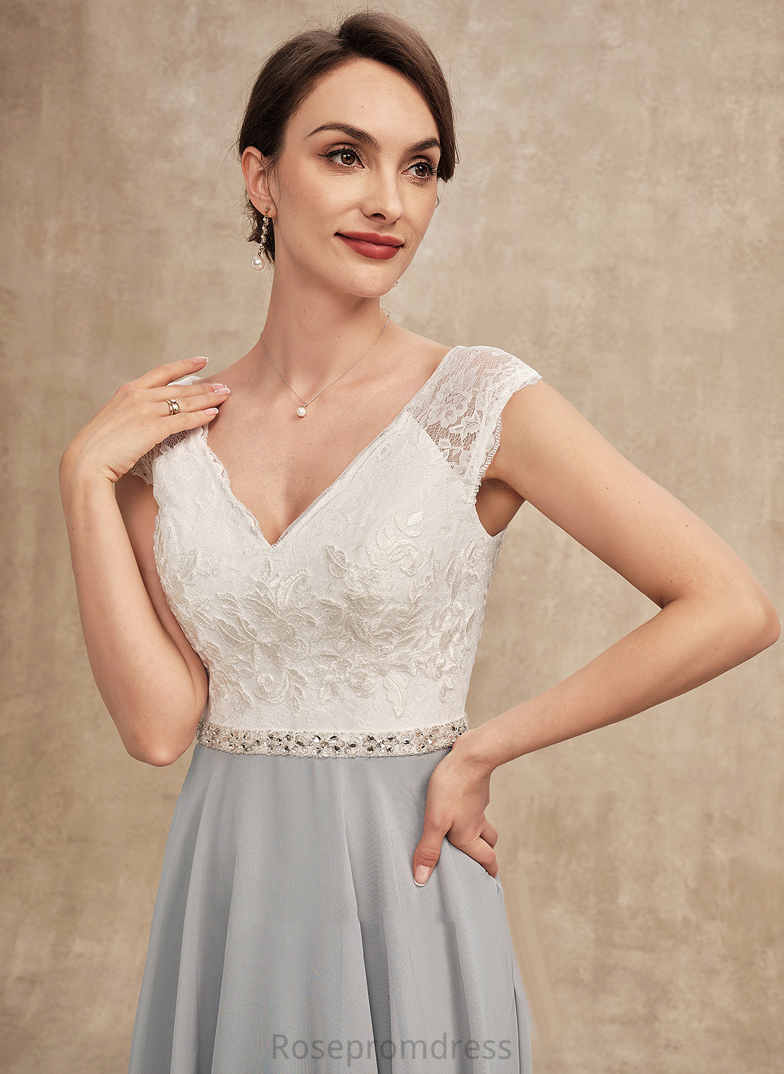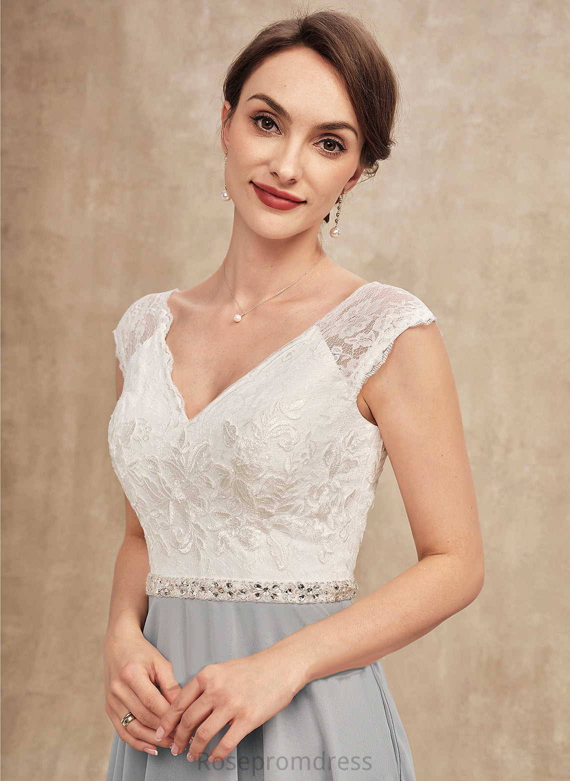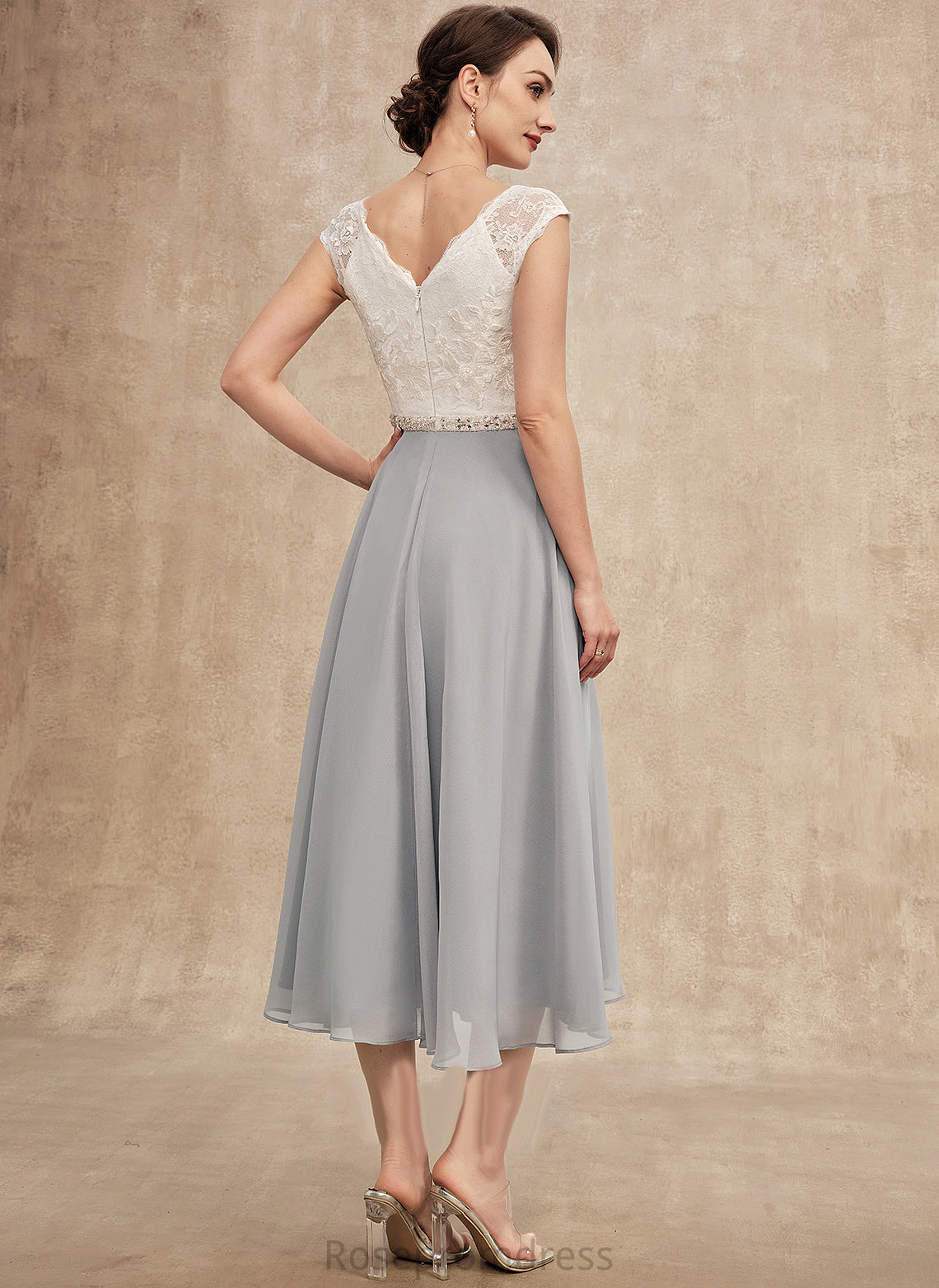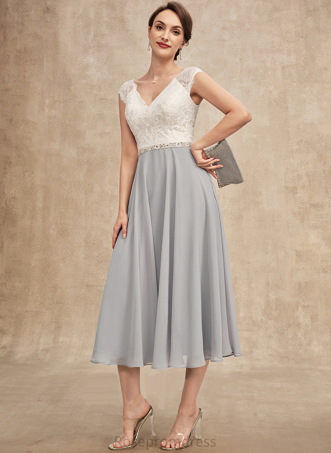 of Mother of the Bride Dresses Lace Beading V-neck With Tea-Length Teresa Mother Bride Chiffon Dress the A-Line