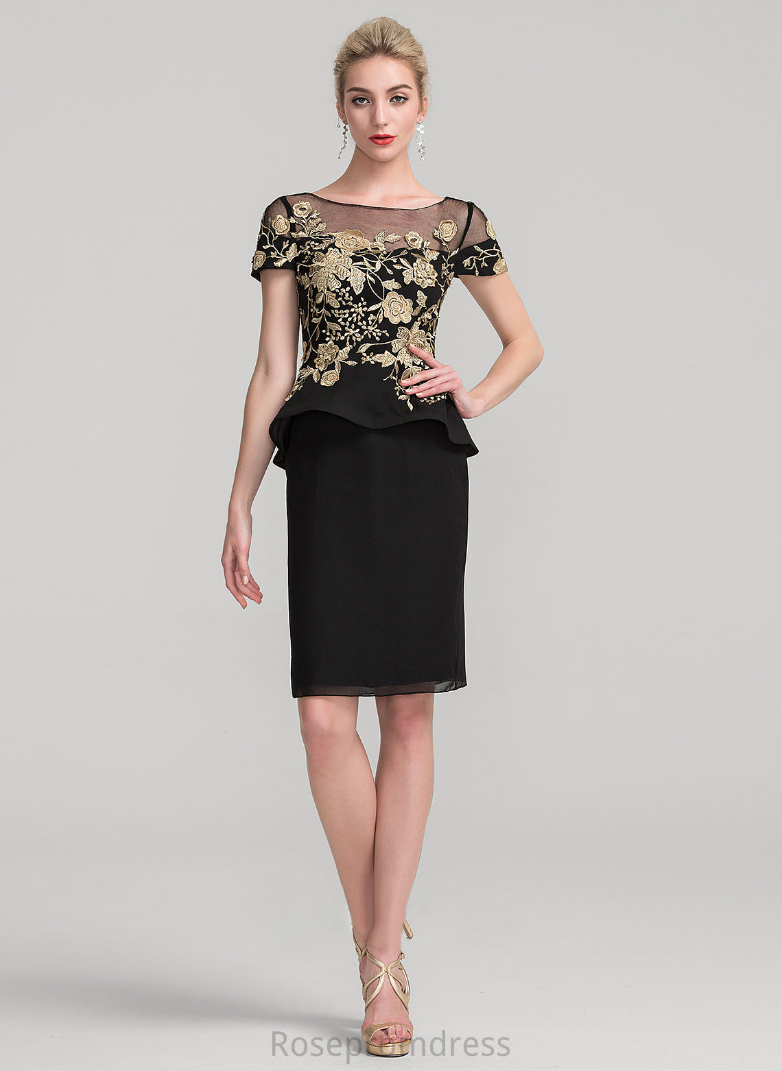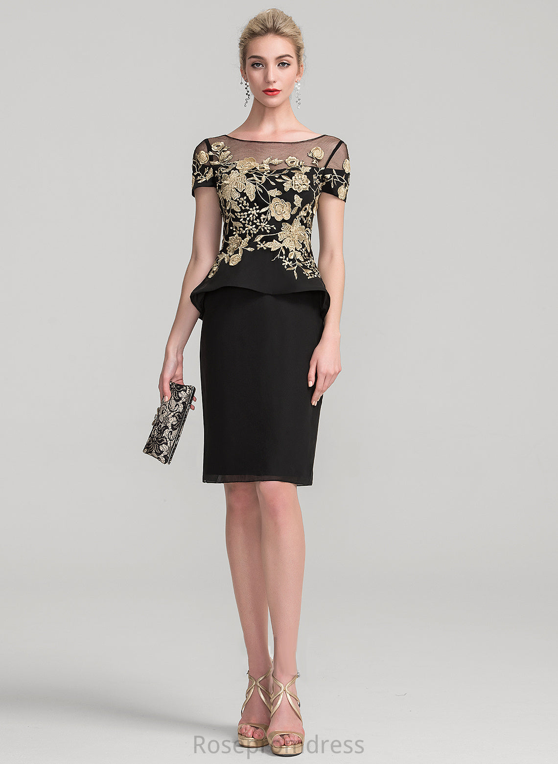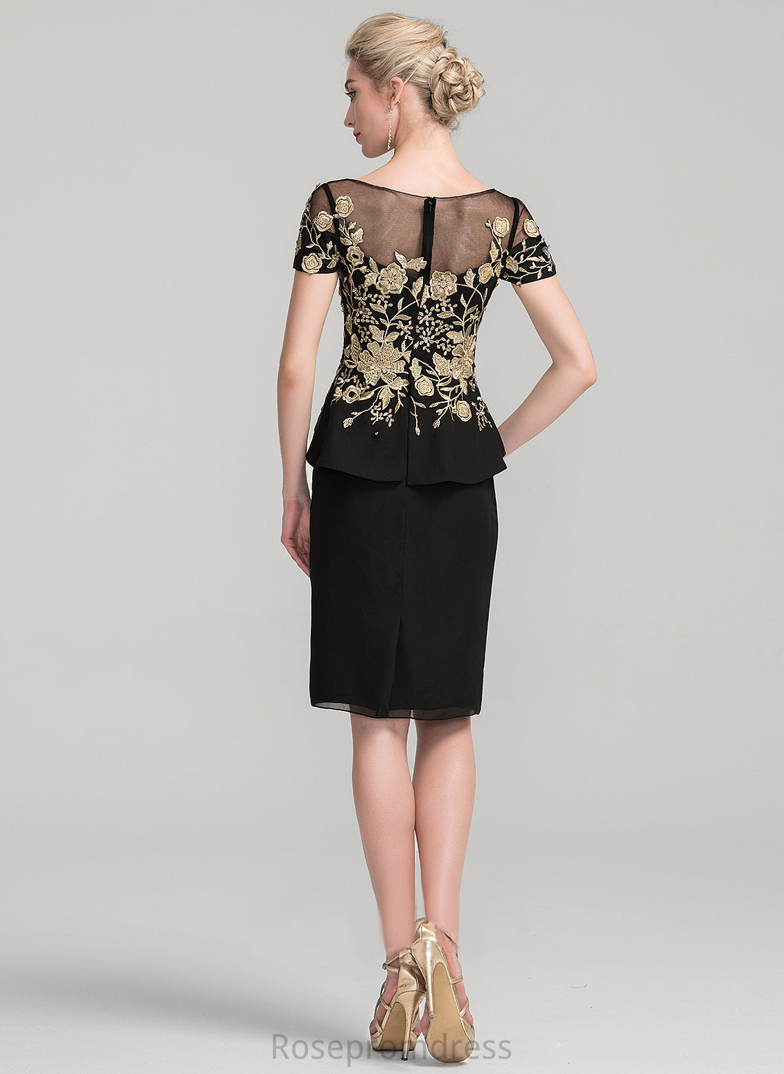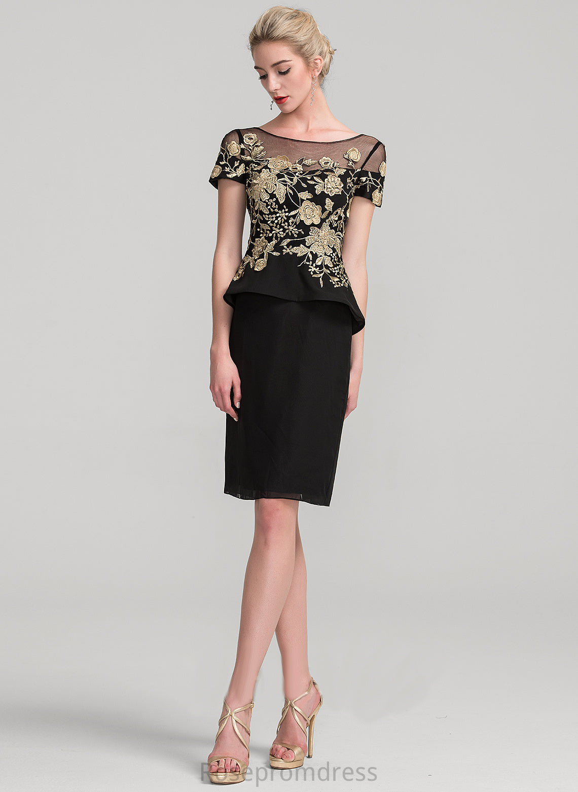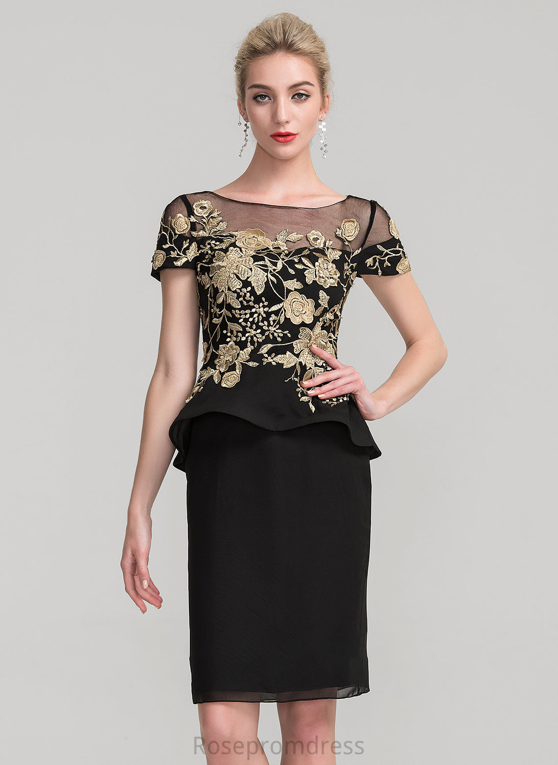 of Neck Scoop Ruffles the With Sheath/Column Cascading Dress Knee-Length Mother of the Bride Dresses Bride Chiffon Mother Aria Lace