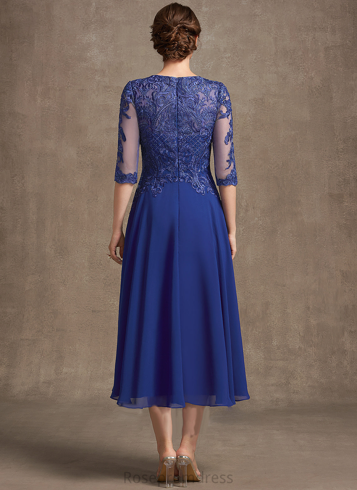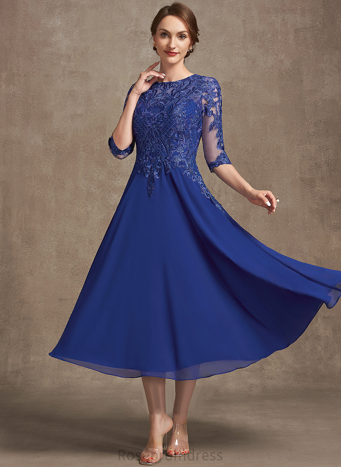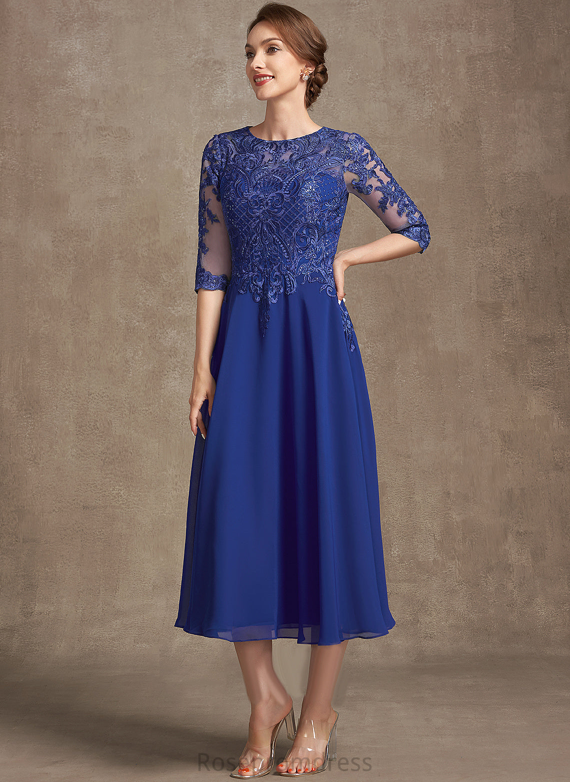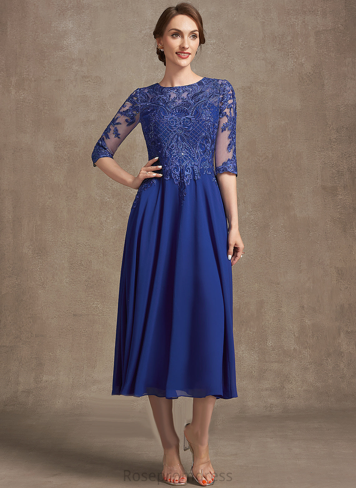 of Tea-Length A-Line Chiffon Mother Mother of the Bride Dresses Scoop Bride Dress Neck With Sequins Lace Shania the