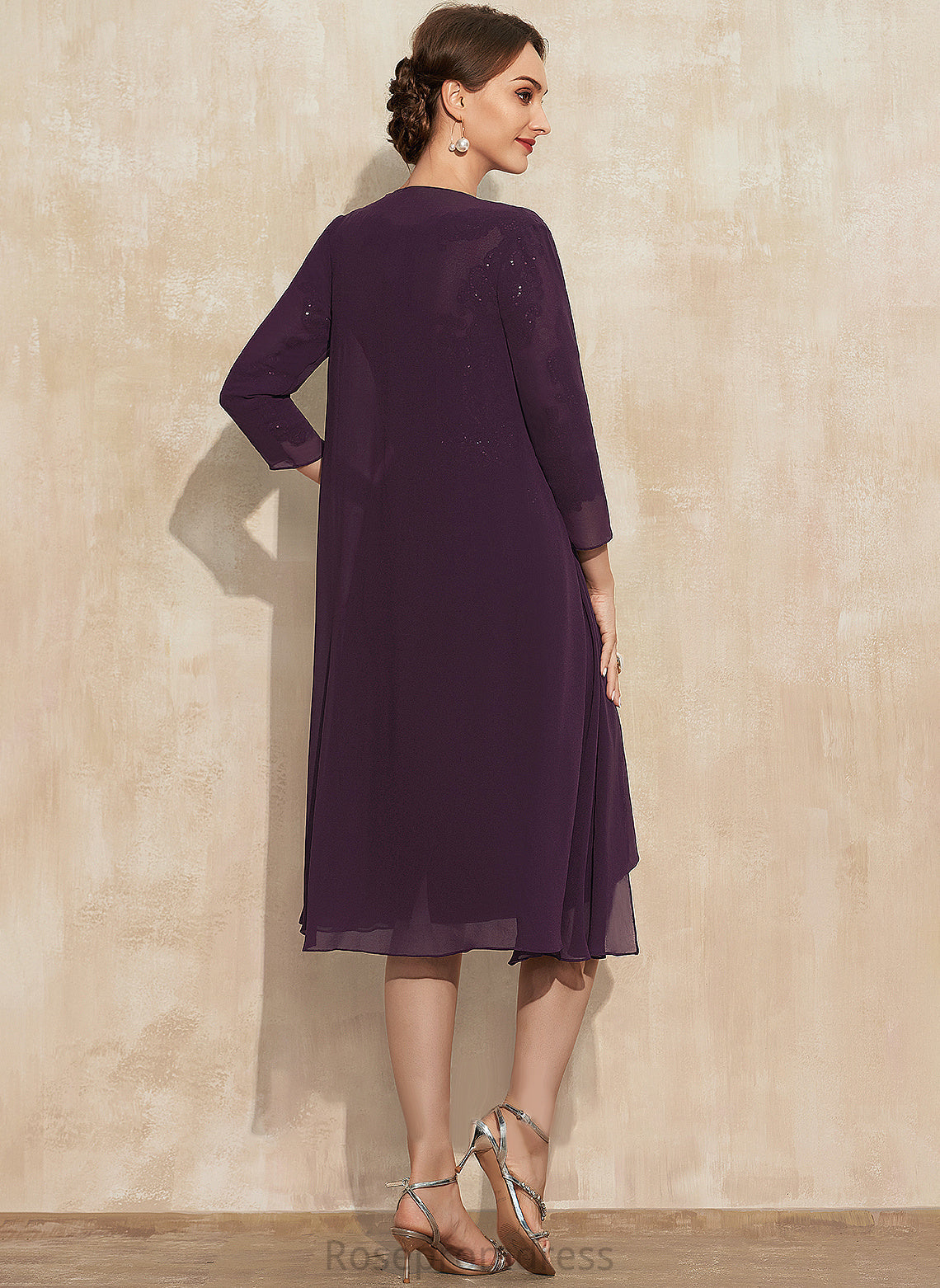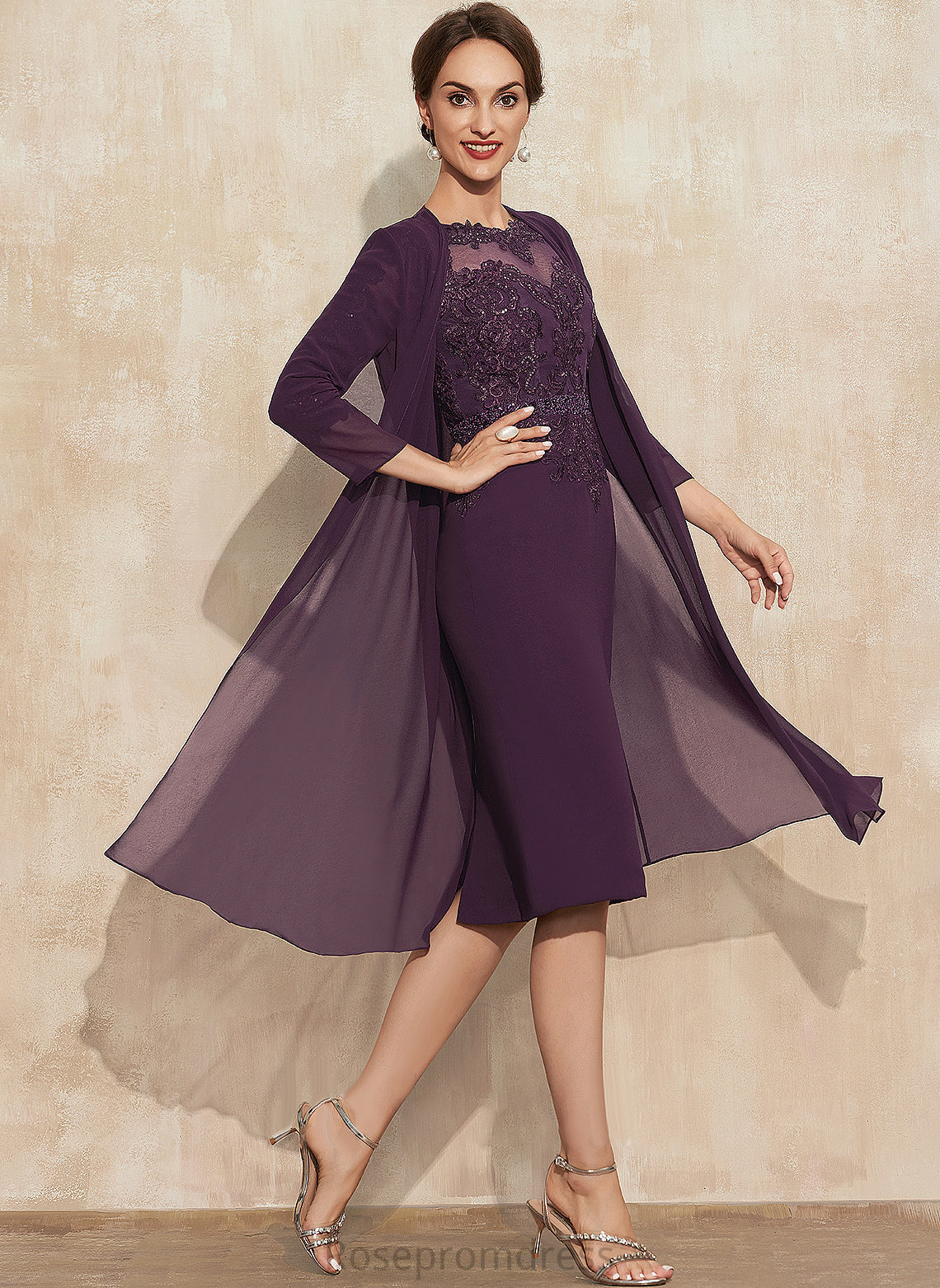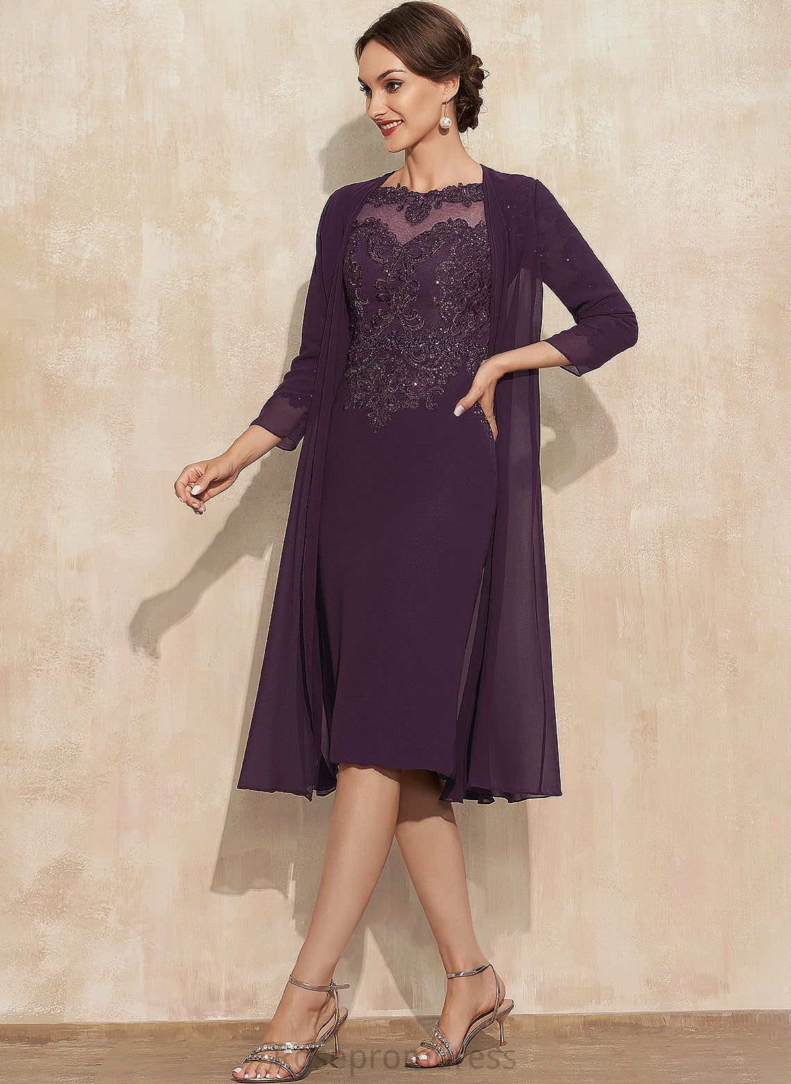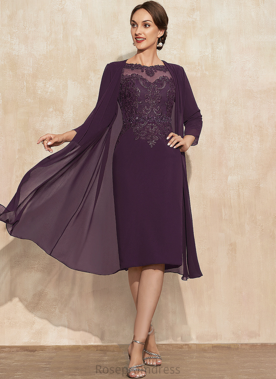 of the Neck Mother of the Bride Dresses With Bride Chiffon Beading Scoop Mother Knee-Length Dress Aaliyah Lace Sheath/Column
