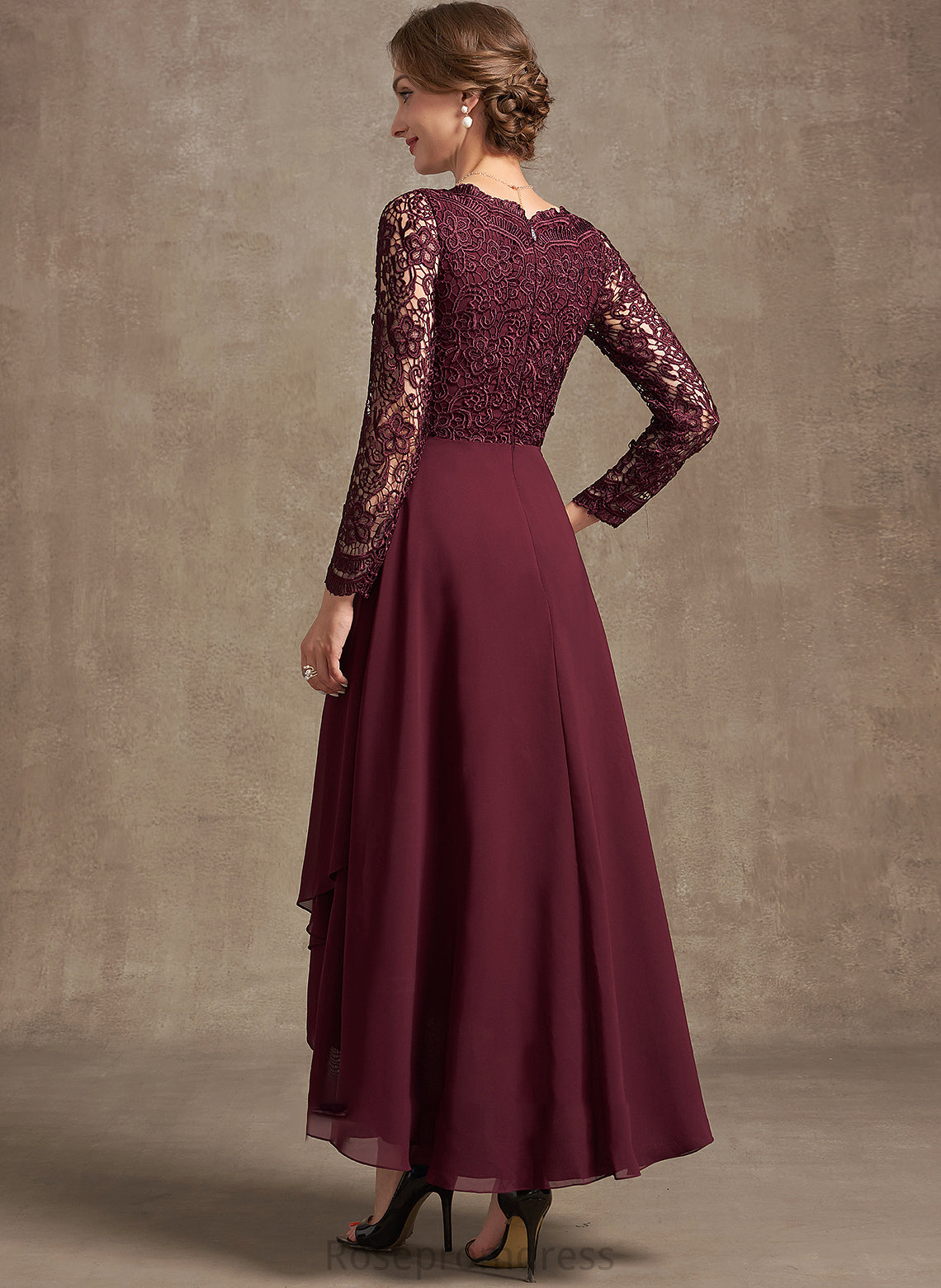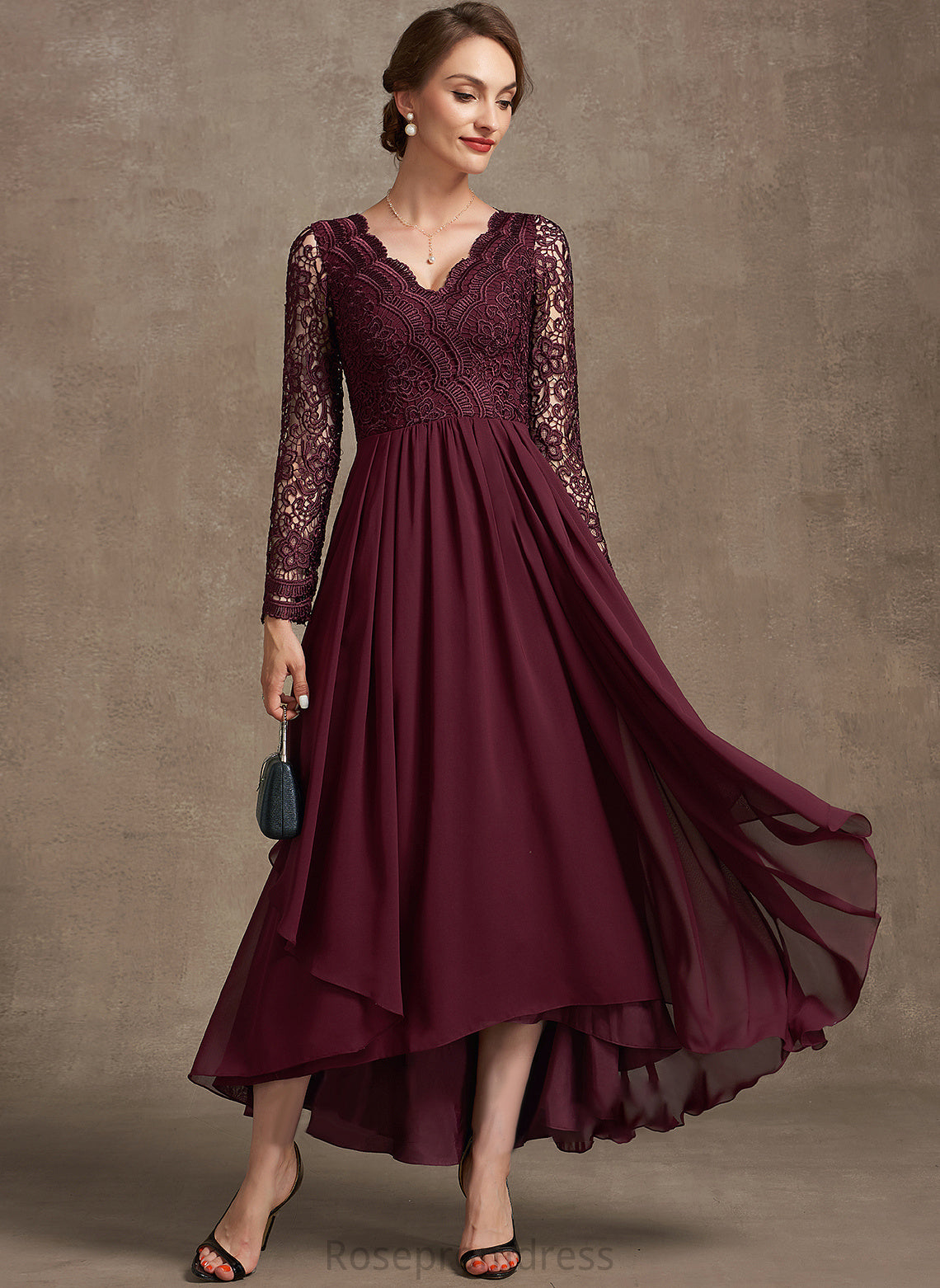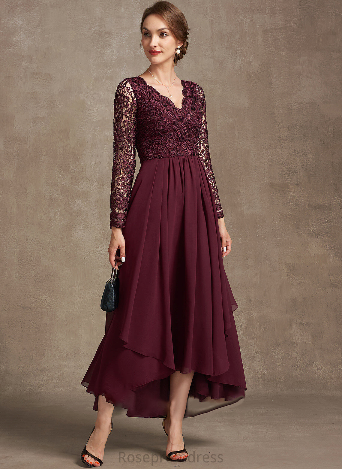 of the Riley Mother Chiffon V-neck A-Line Mother of the Bride Dresses Bride Dress Asymmetrical Lace