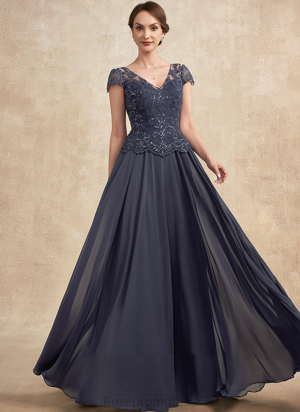 of V-neck Chiffon Bride Sequins Floor-Length With A-Line Rihanna Mother the Lace Dress Mother of the Bride Dresses