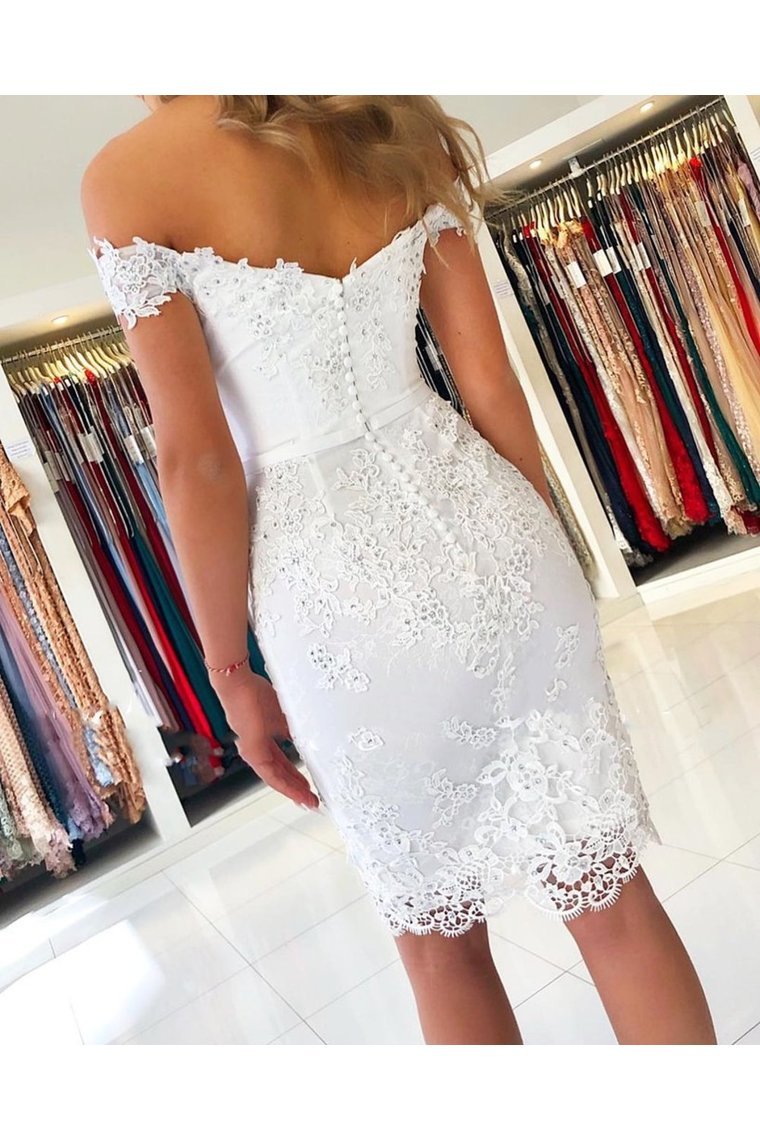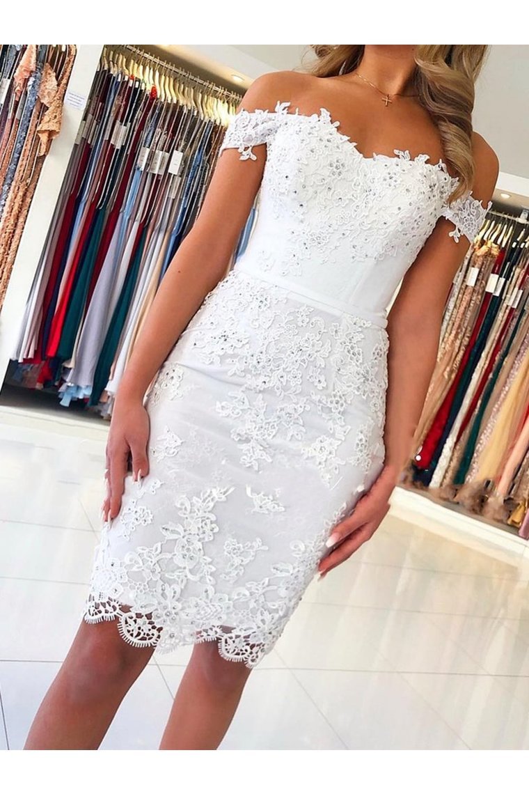 Off Shoulder Short Lace Graduation Formal Homecoming Dresses Sheath