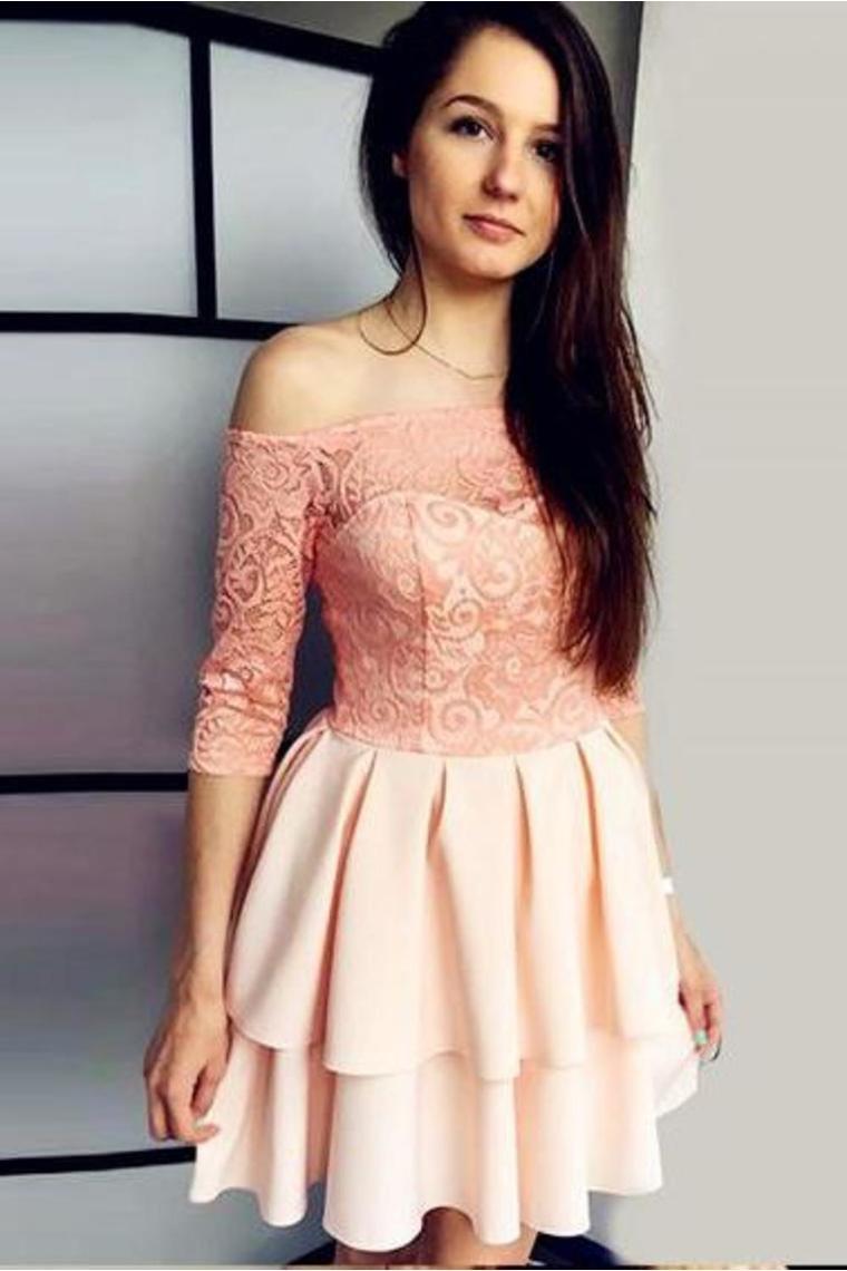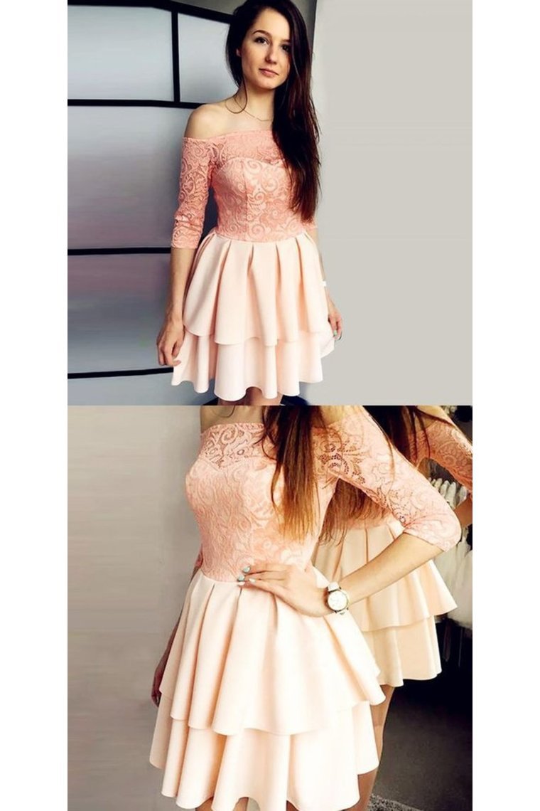 Off The Shoulder 3/4 Sleeves A Line Short Homecoming Dress With Lace
