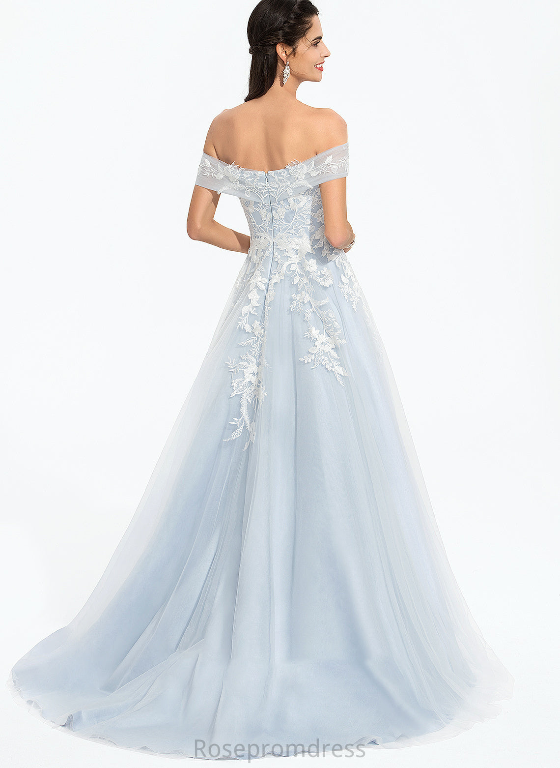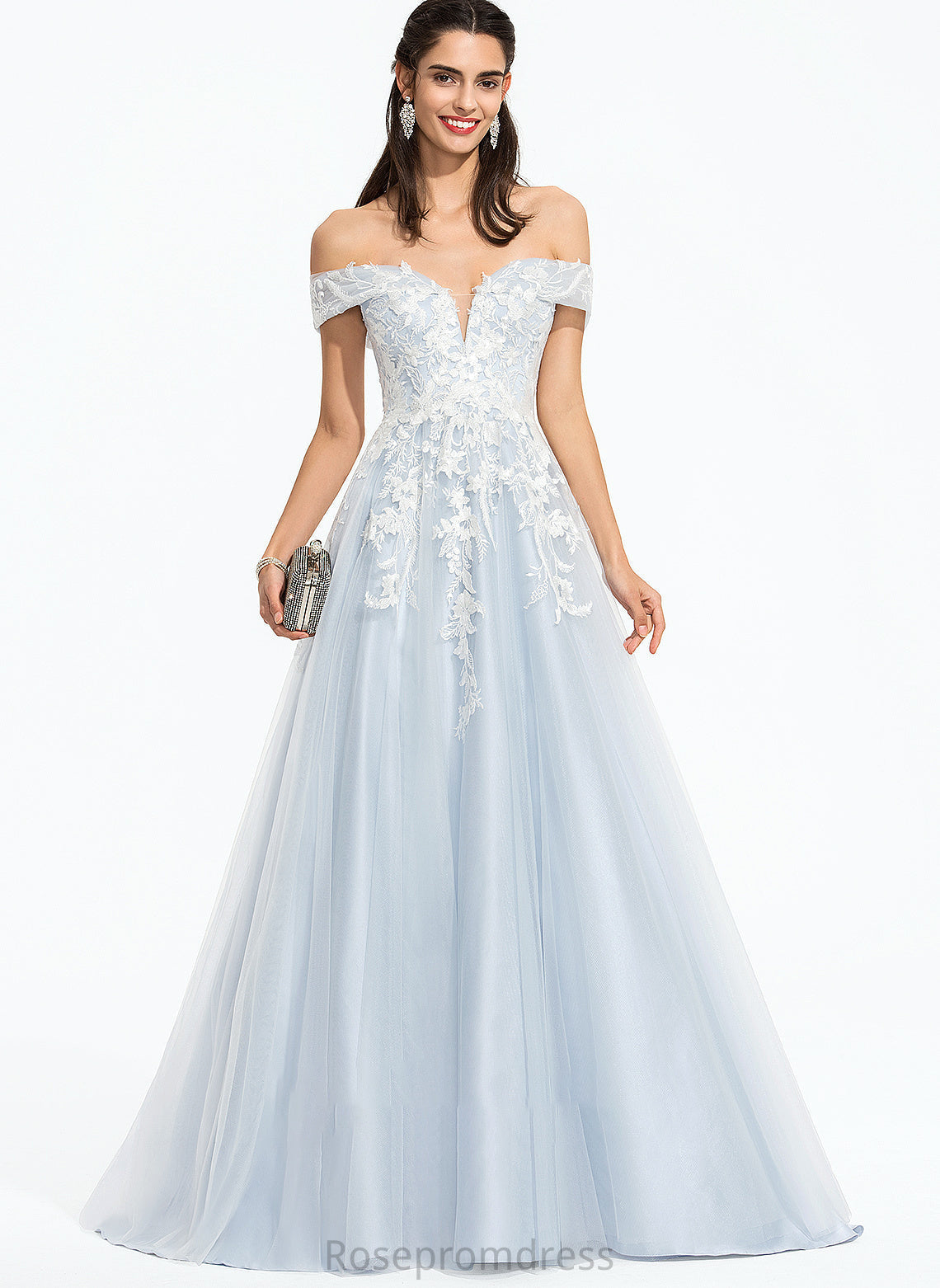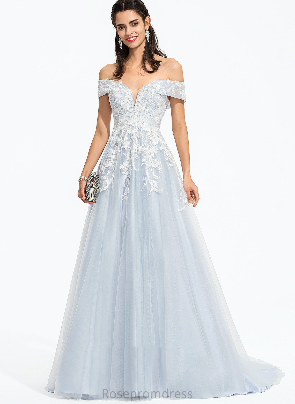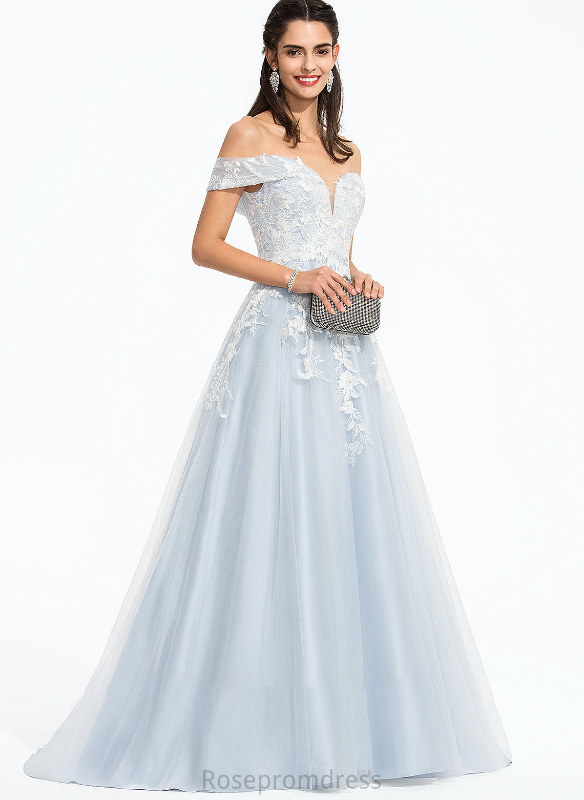 Off-the-Shoulder Coral Ball-Gown/Princess Tulle Sequins Sweep Train Prom Dresses With