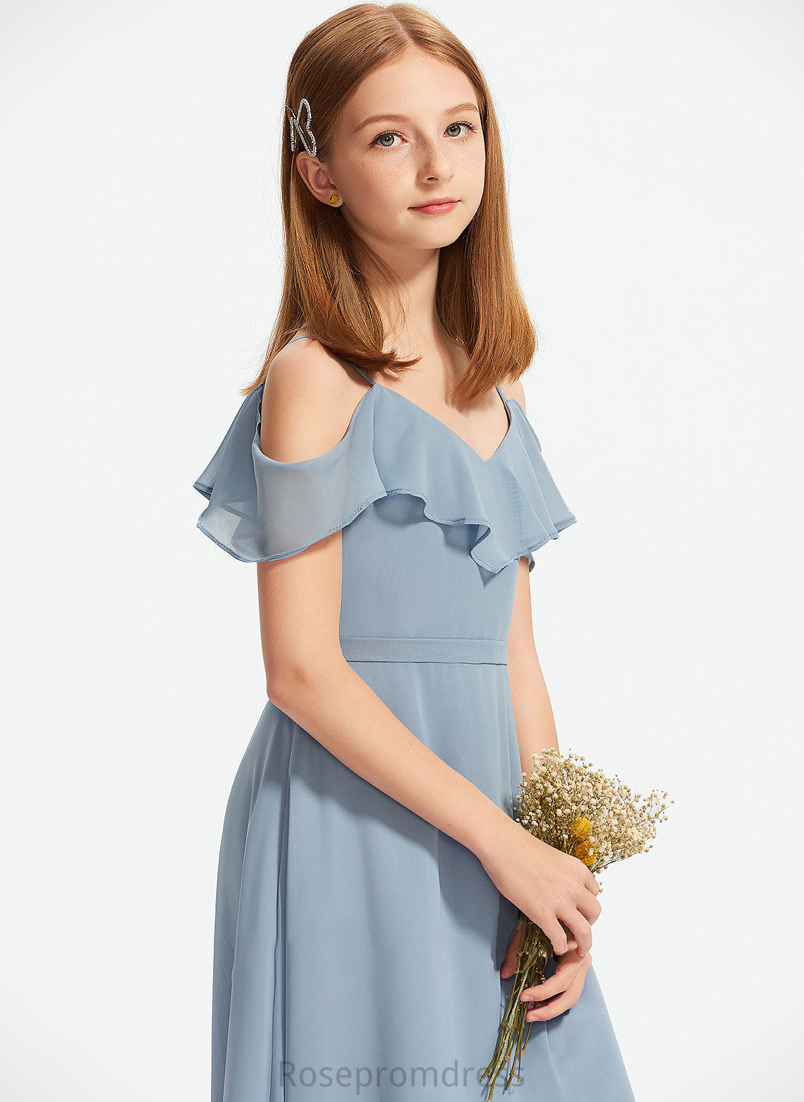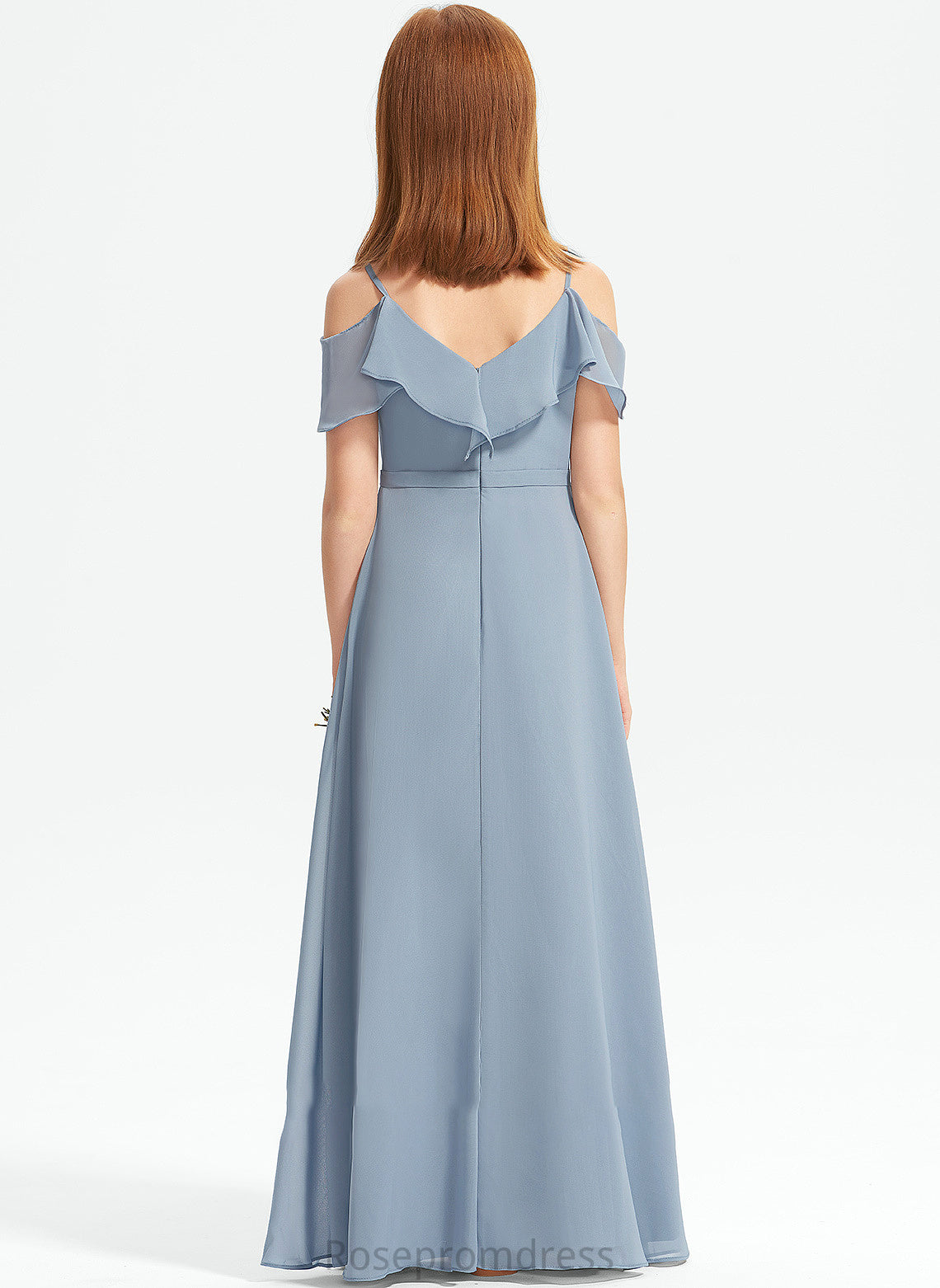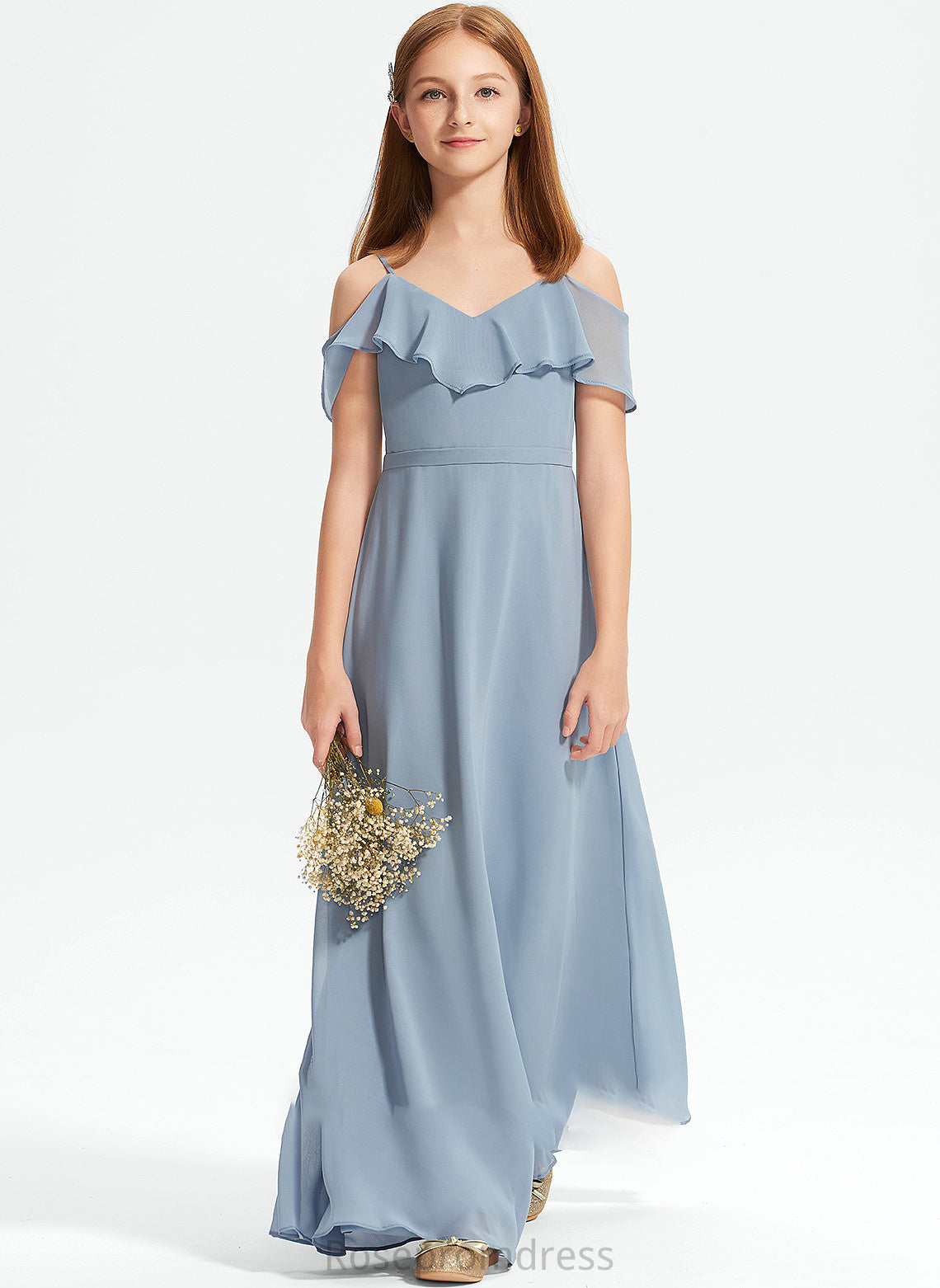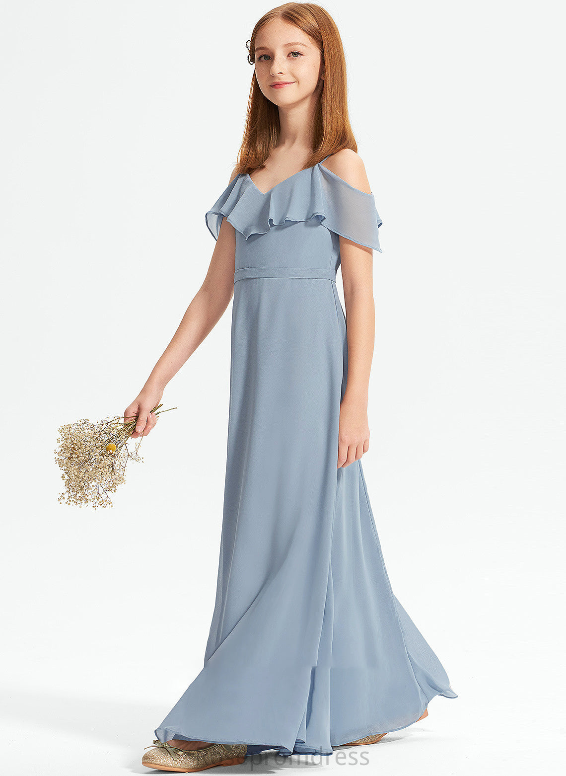 Off-the-Shoulder Ellie A-Line Junior Bridesmaid Dresses Chiffon With Floor-Length Ruffles