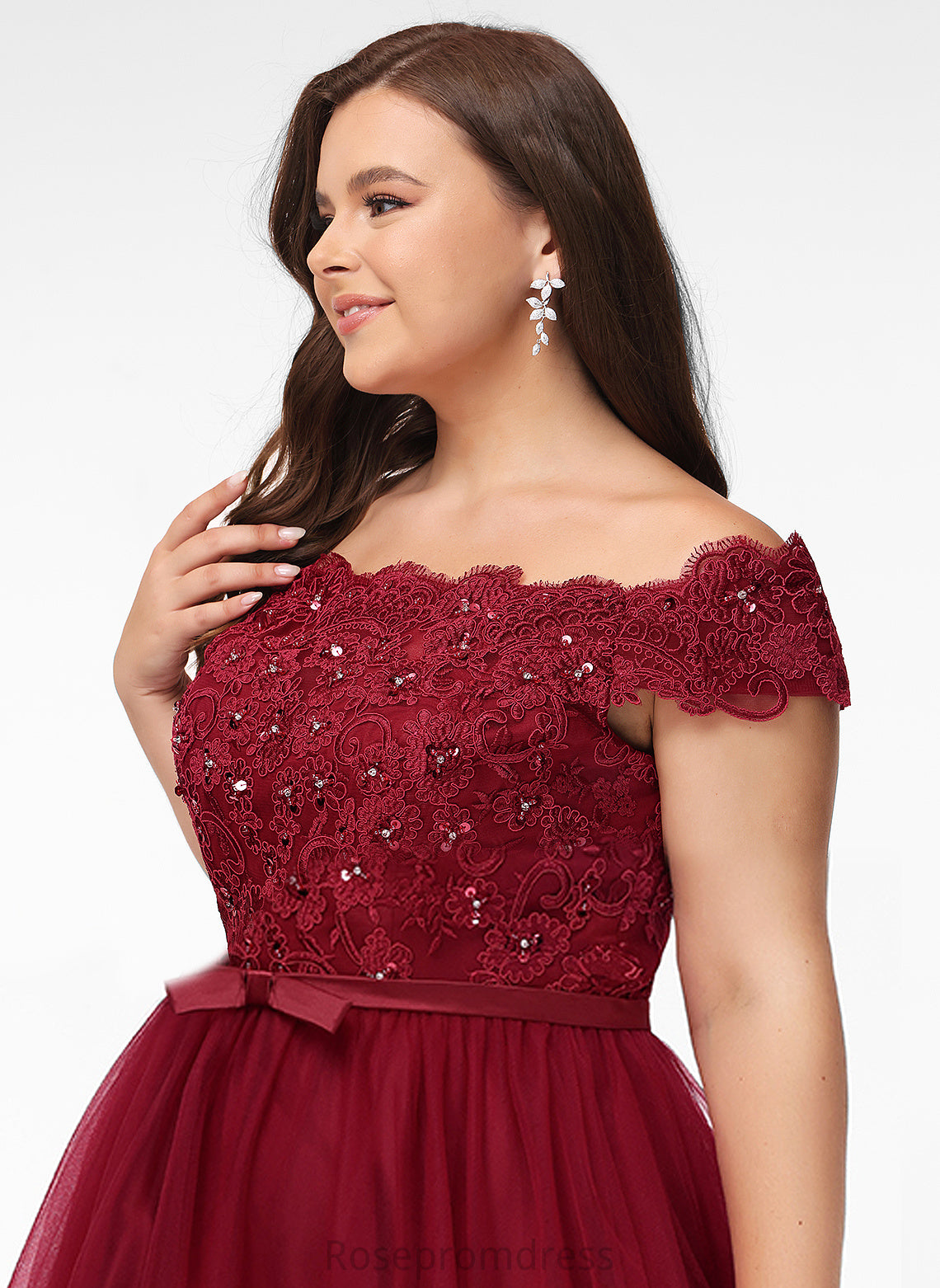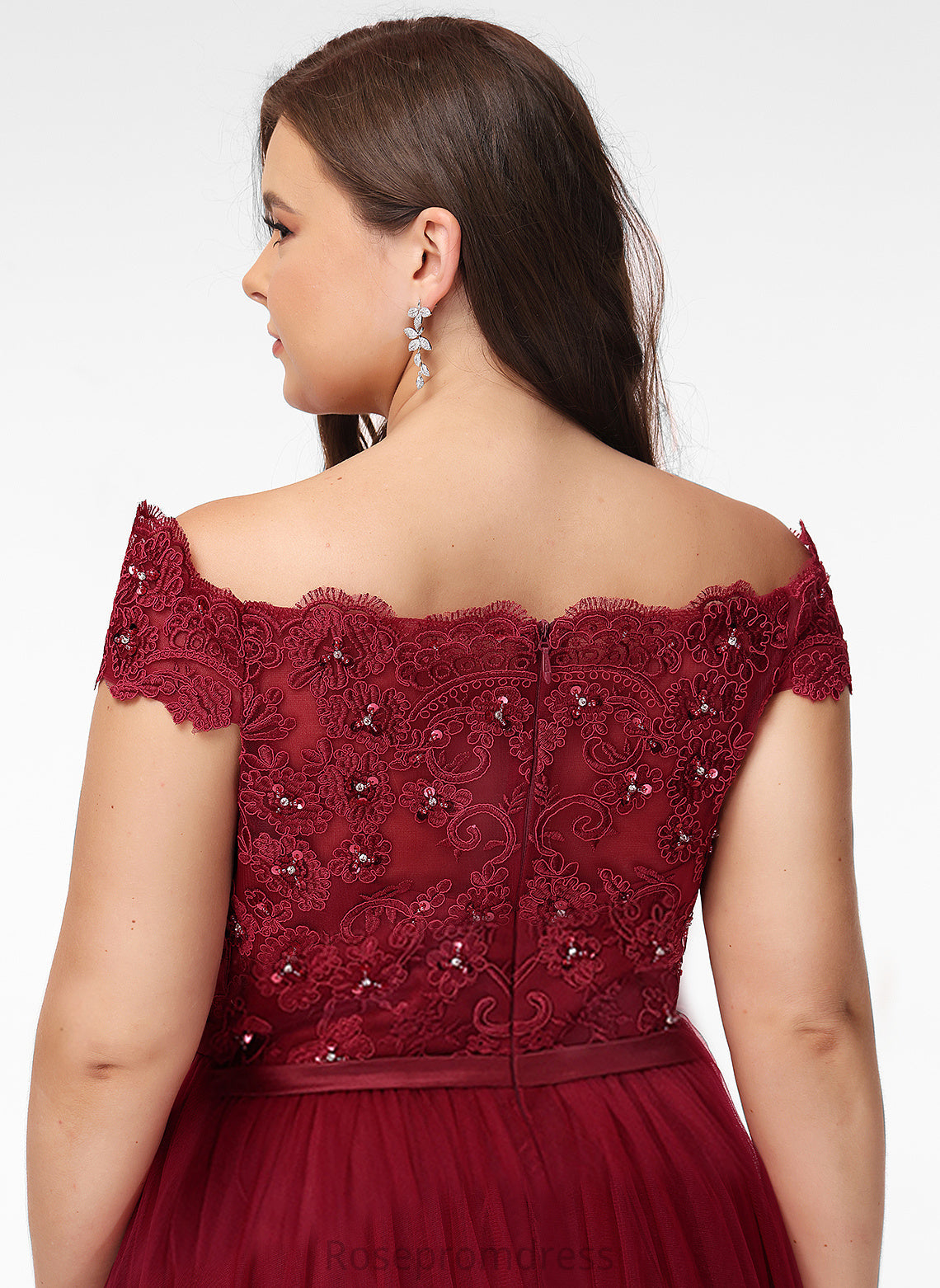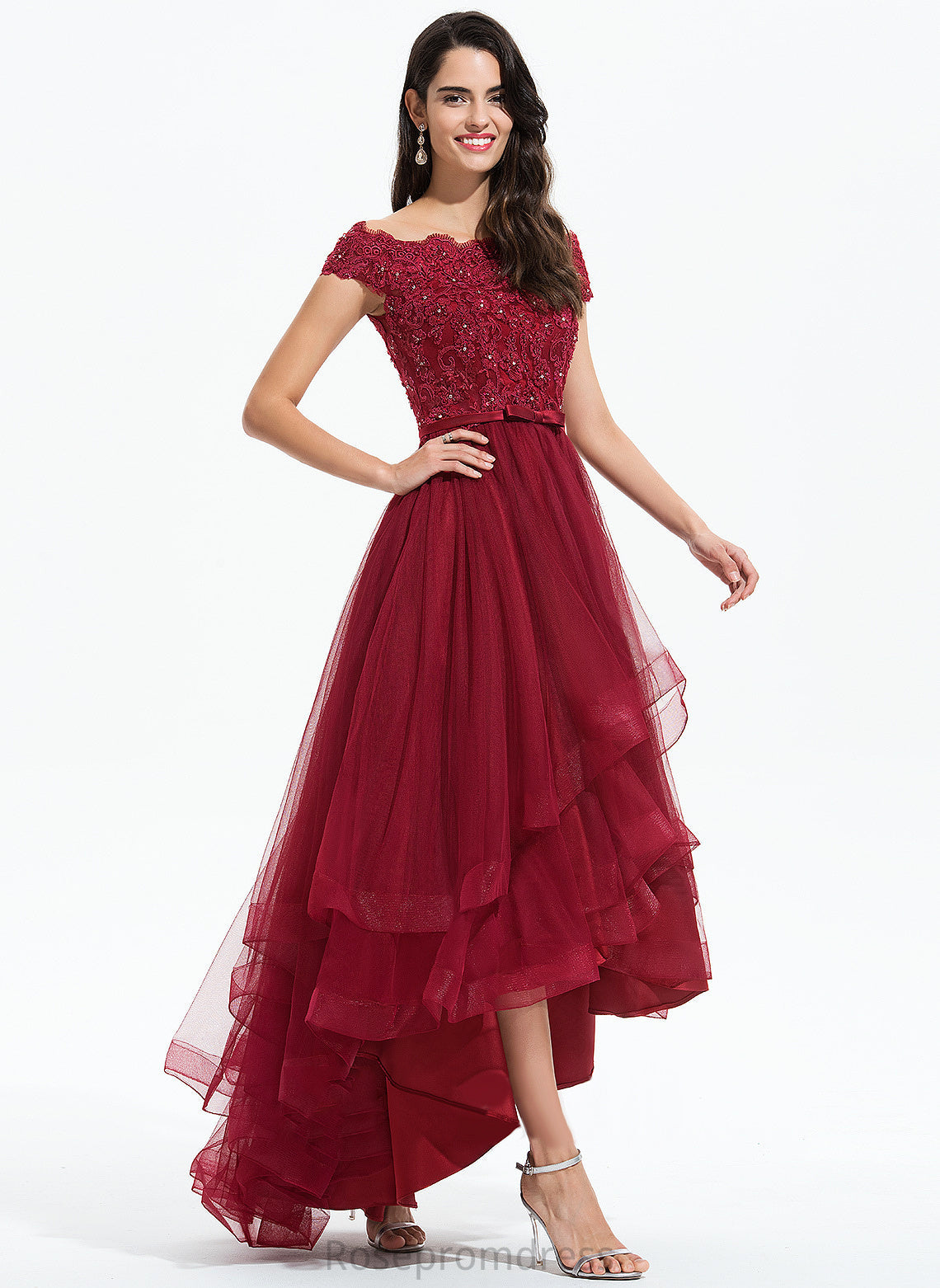 Off-the-Shoulder Embellishment Lace Length Beading Neckline Bow(s) Silhouette A-Line Asymmetrical Fabric Chelsea Bridesmaid Dresses