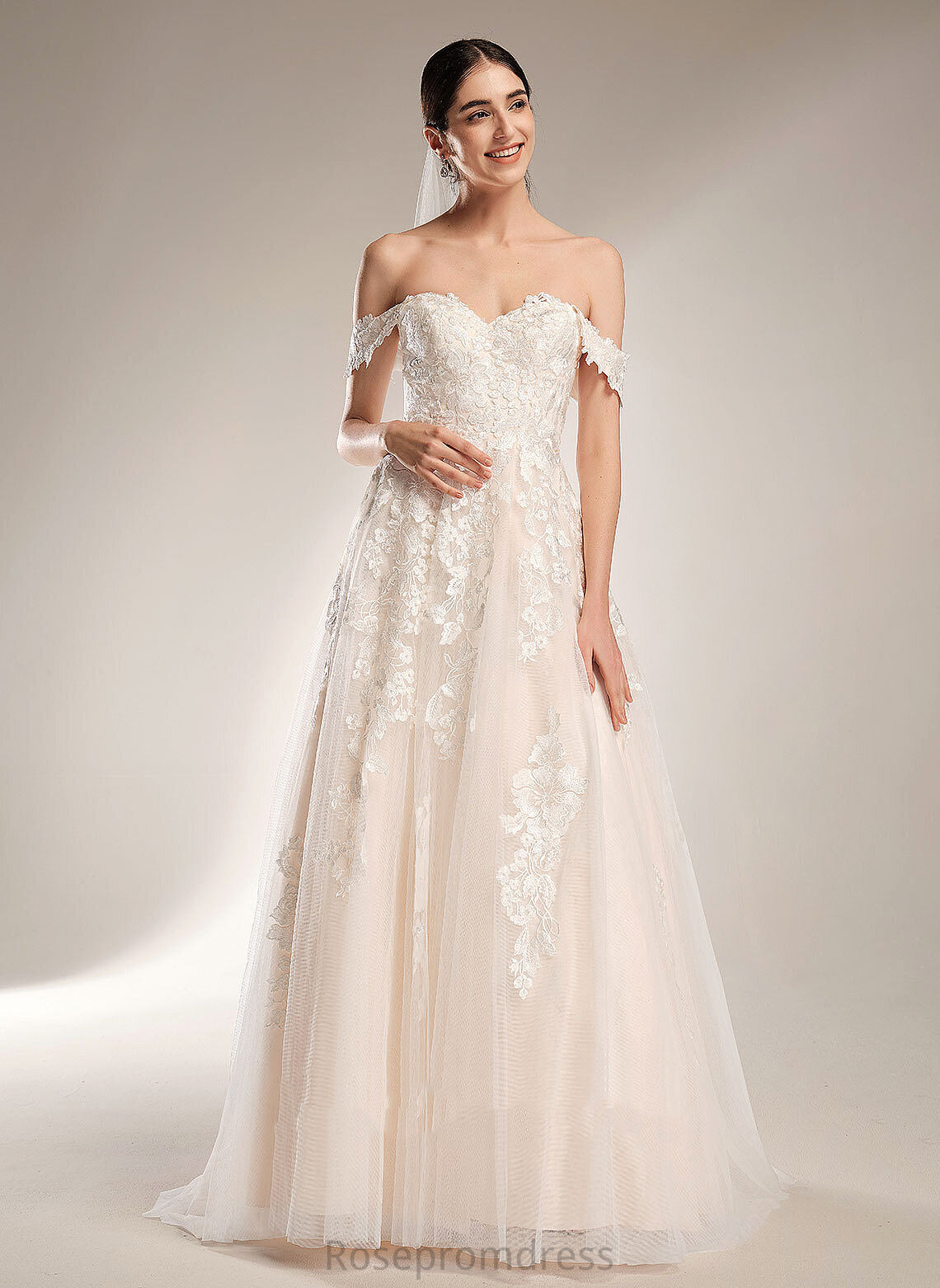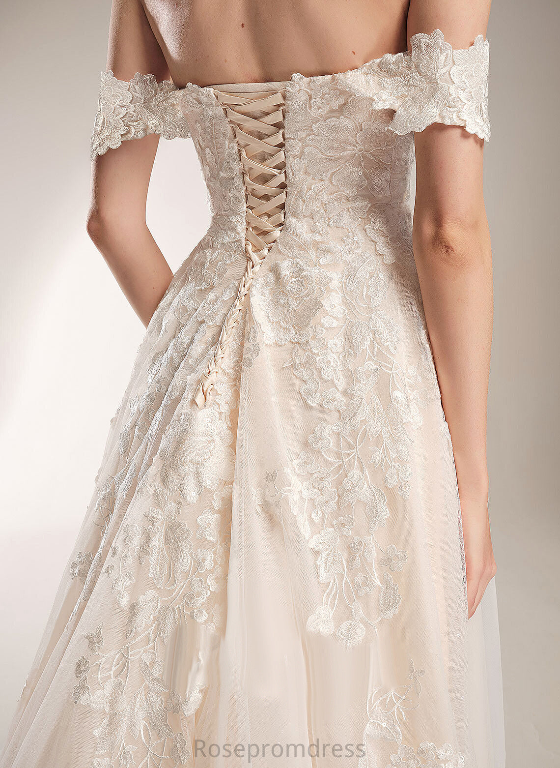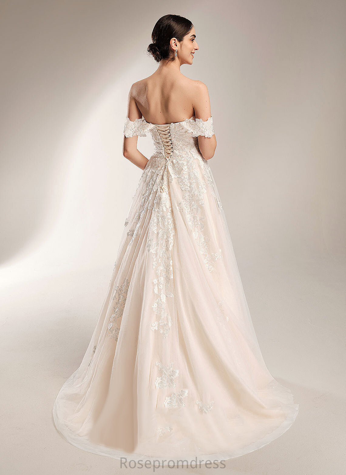 Off-the-Shoulder Lace Chapel Wedding Dresses Wedding Train Ivy Dress Tulle Ball-Gown/Princess