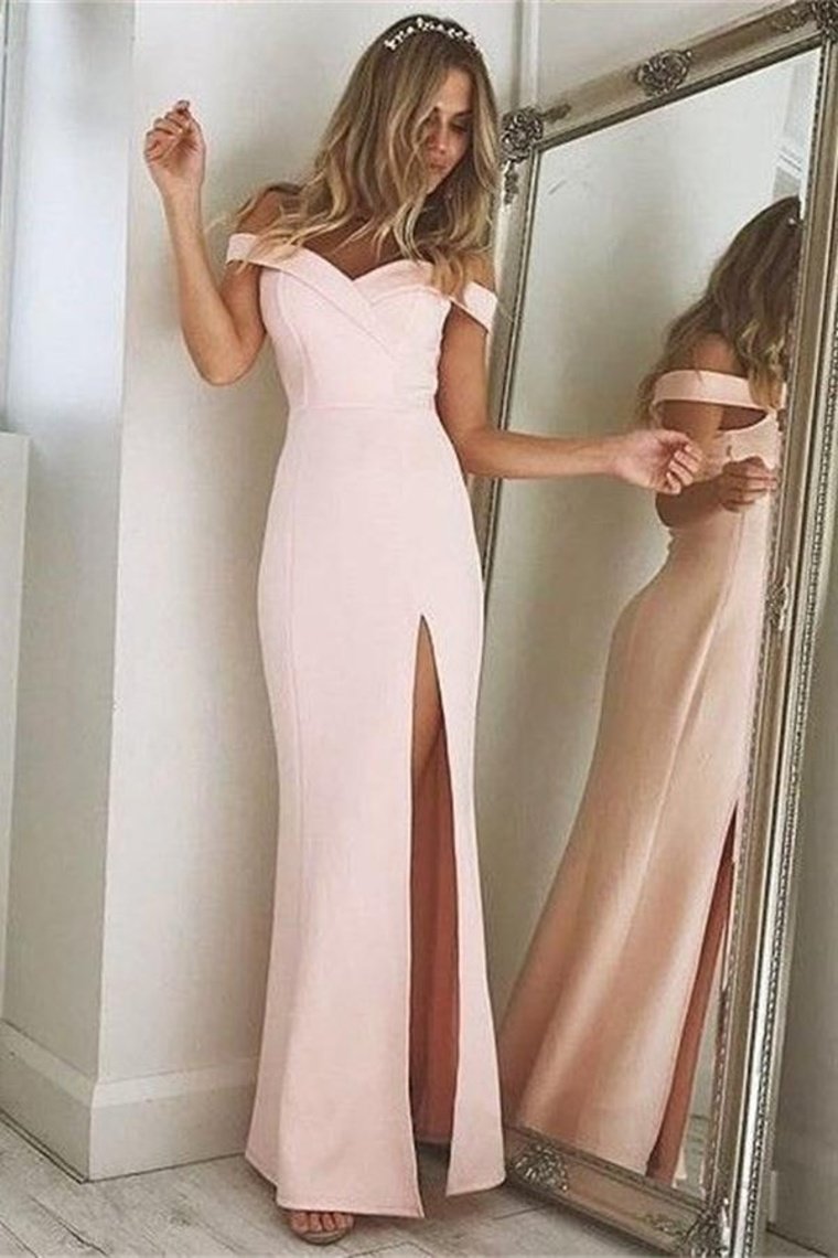 Off The Shoulder Pink Long Prom Dresses Evening Dresses Party Dresses