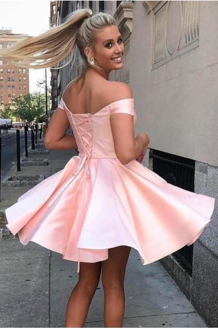 Off The Shoulder Satin A Line Short Homecoming Dress
