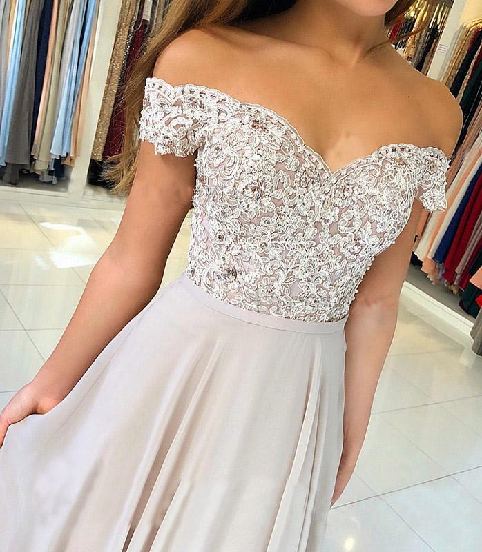 Off the Shoulder Sweetheart Lace Appliques Prom Dresses with Chiffon Party Dresses P1023
