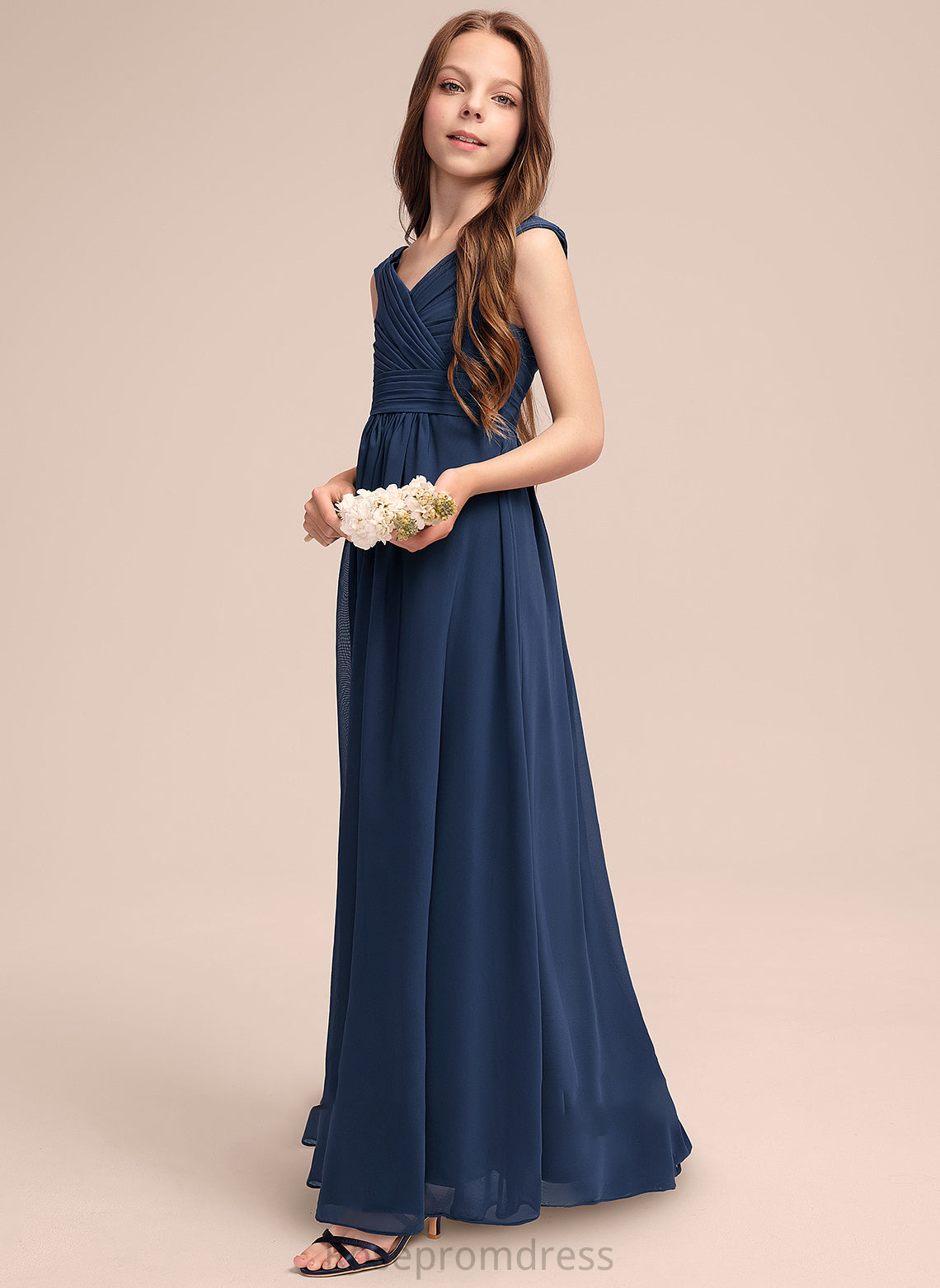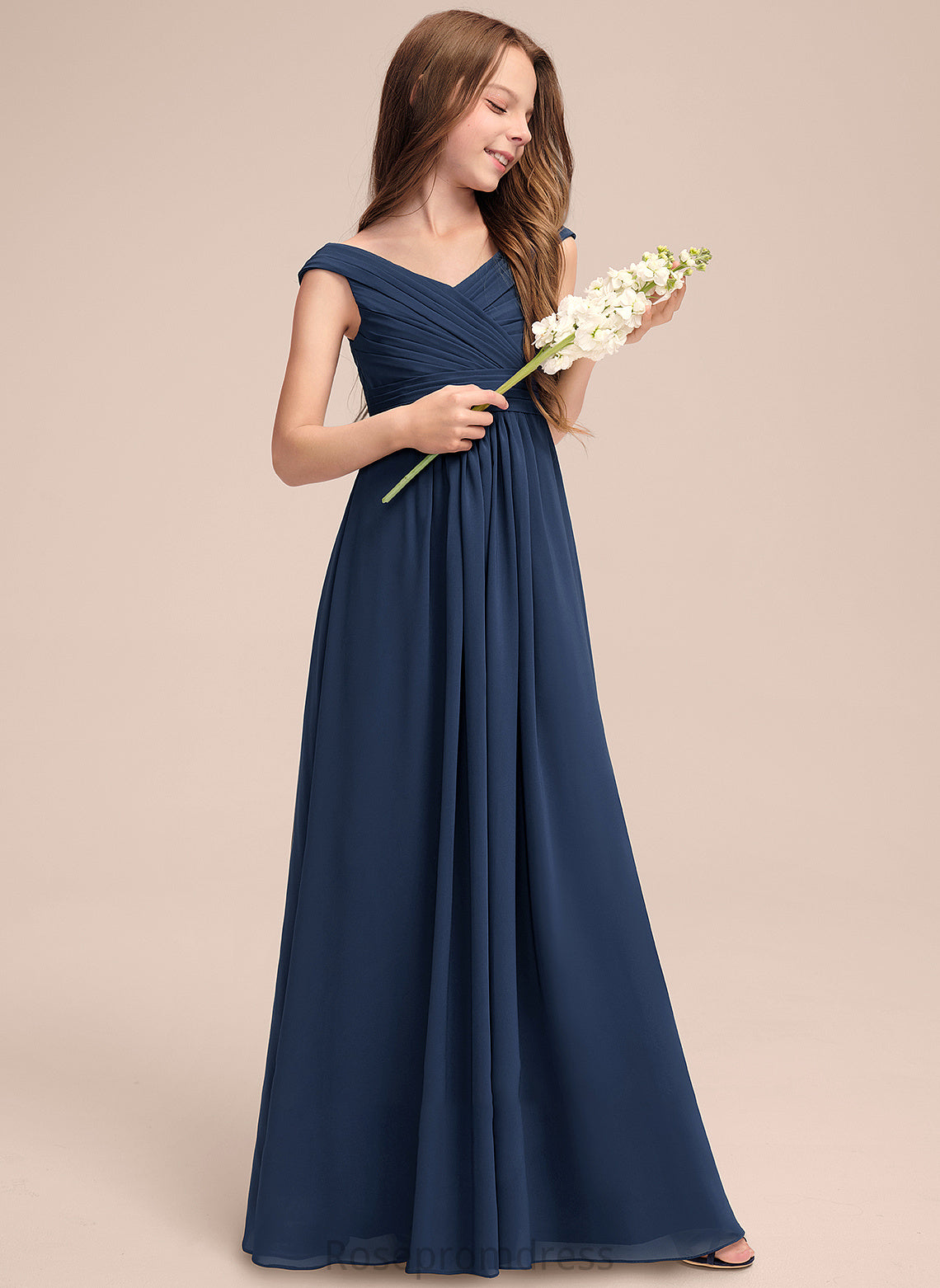 Off-the-Shoulder With Junior Bridesmaid Dresses Chiffon Cristal Ruffles A-Line Floor-Length