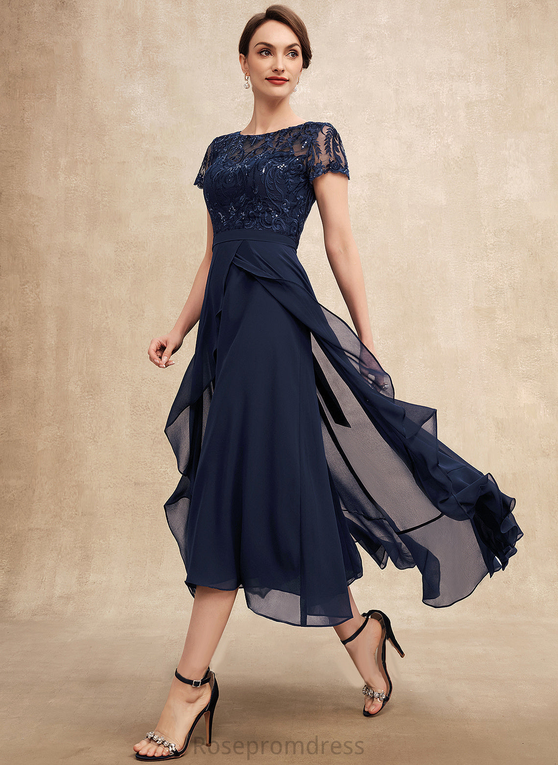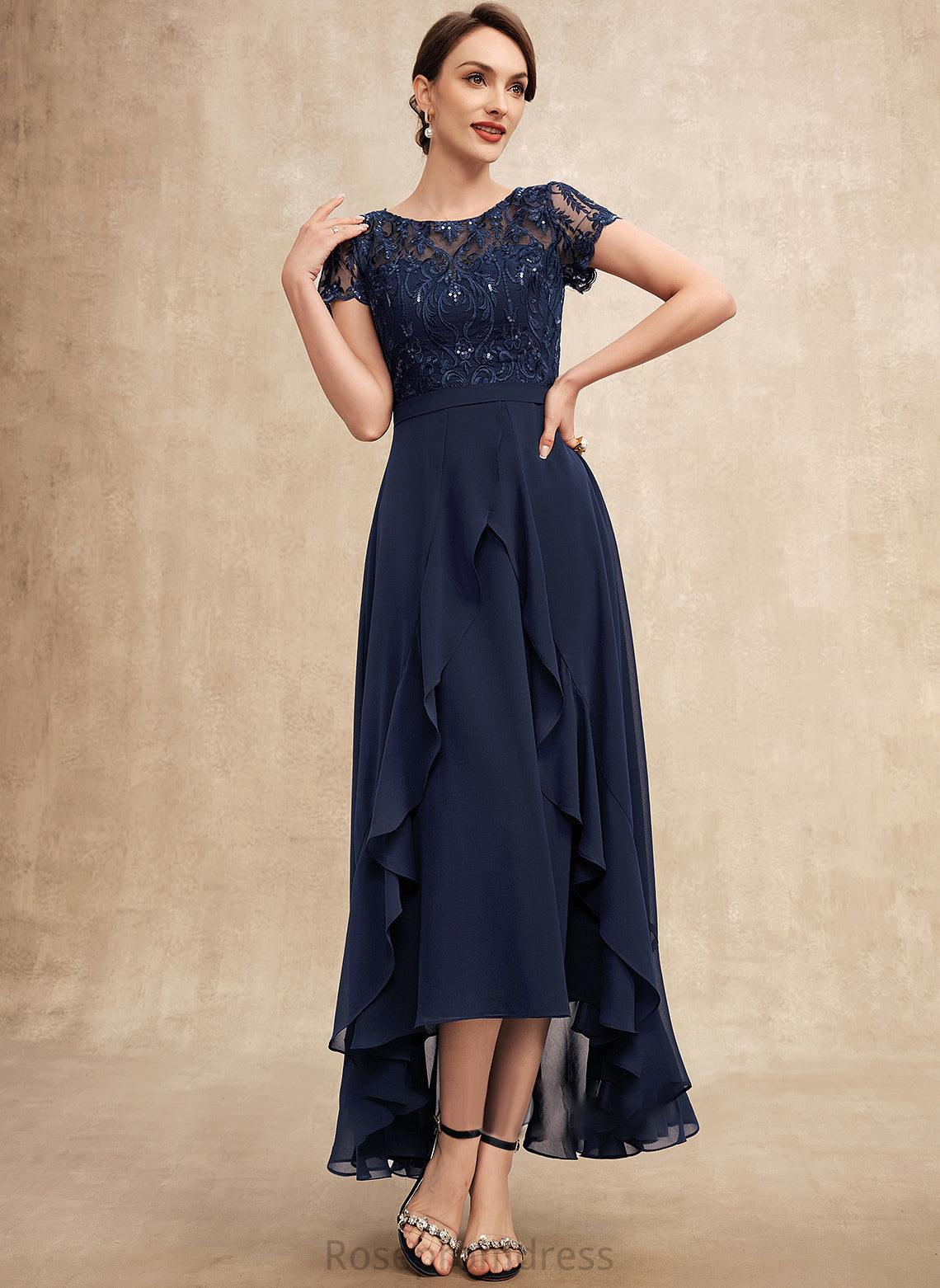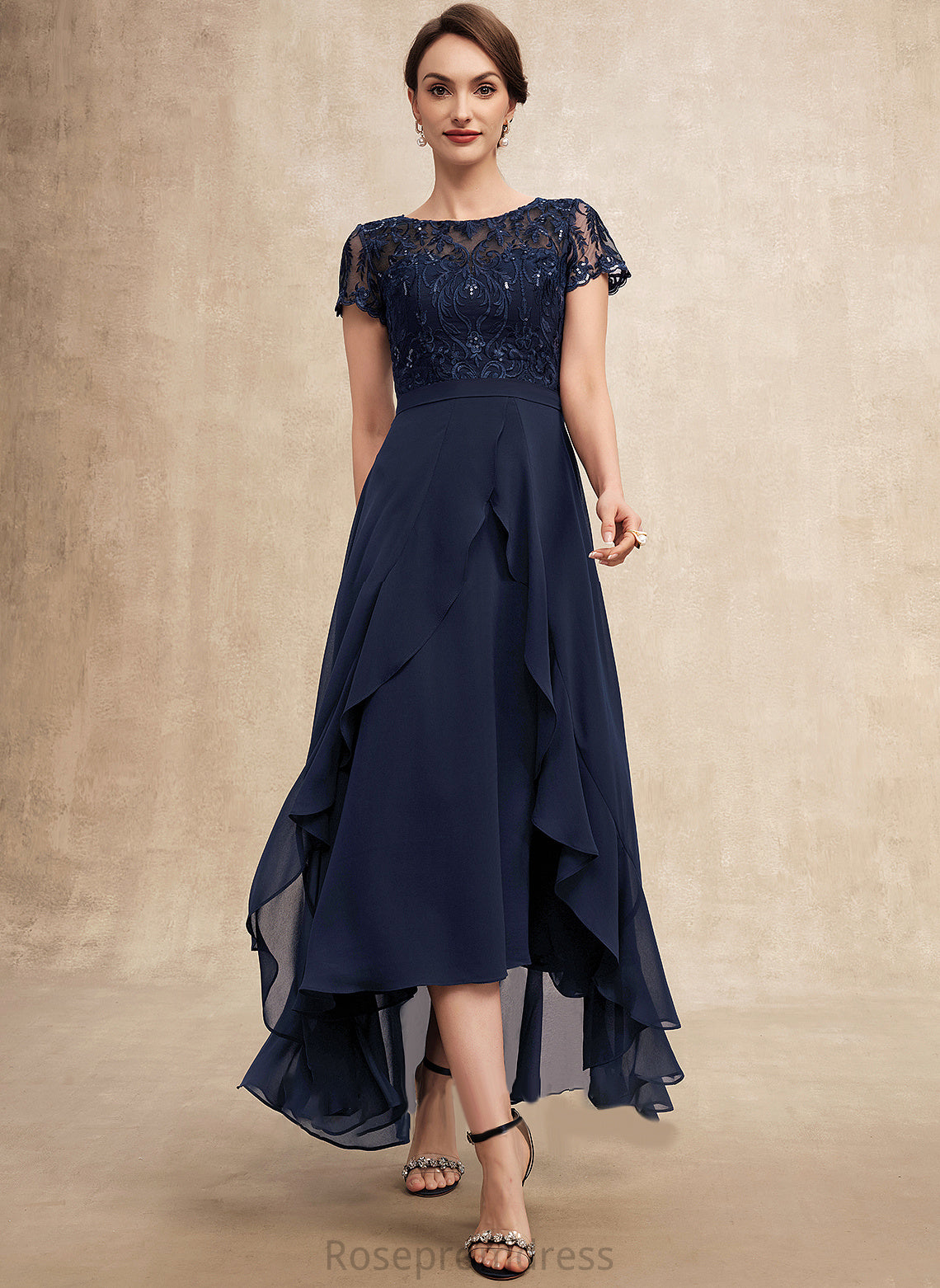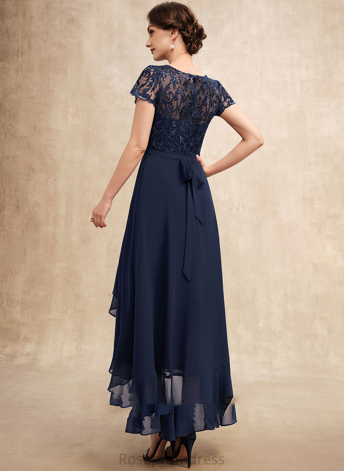 Olga A-Line Neck Cascading Sequins Mother of the Bride Dresses With Mother Lace Bride Asymmetrical the Scoop Chiffon Ruffles Bow(s) Dress of