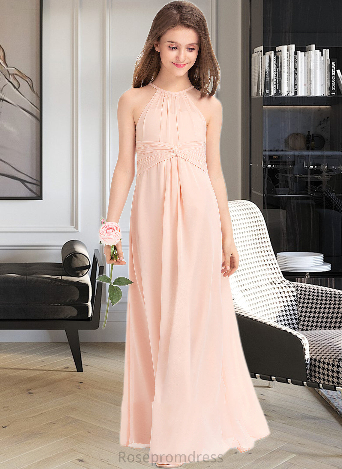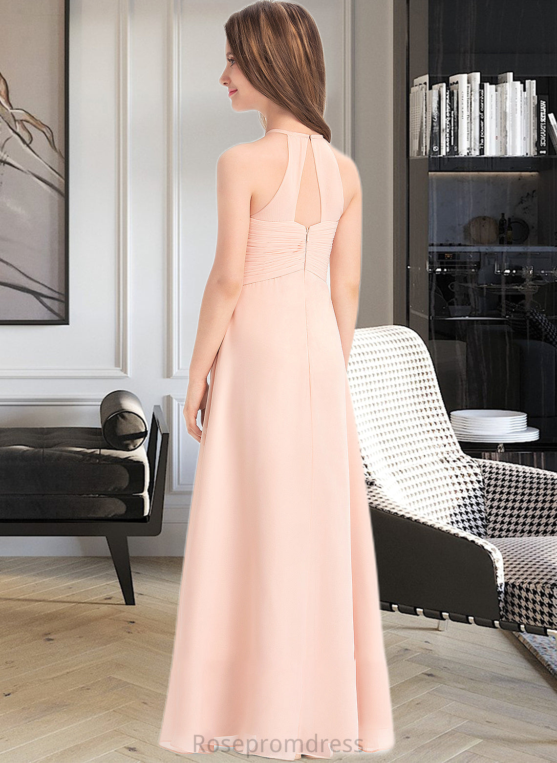 Olga A-Line Scoop Neck Floor-Length Chiffon Junior Bridesmaid Dress With Ruffle SRSP0013528