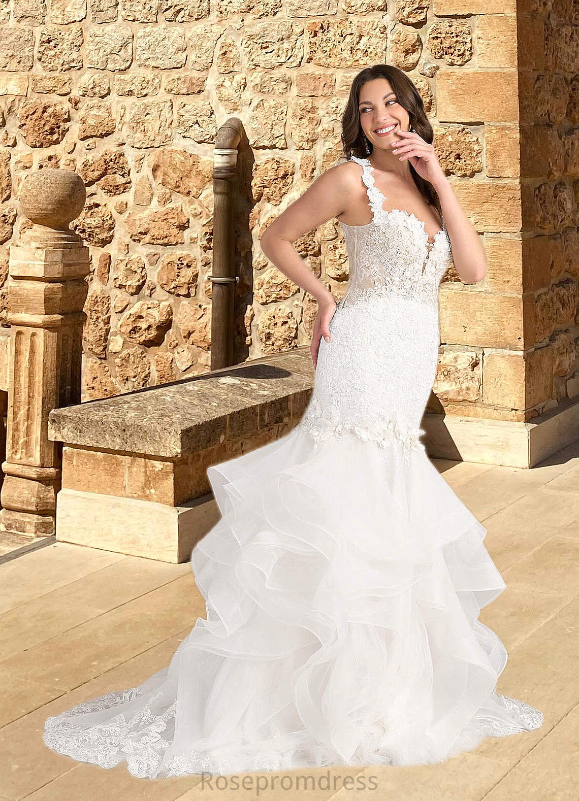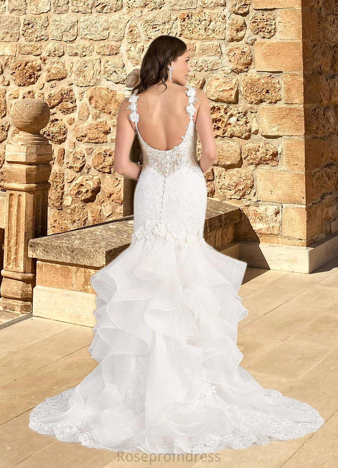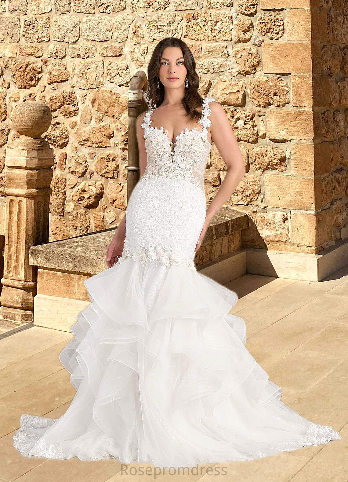 Olga Mermaid Lace Tulle Chapel Train Dress Diamond White/Nude SRSP0022801