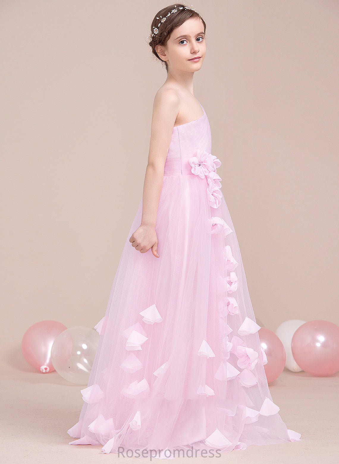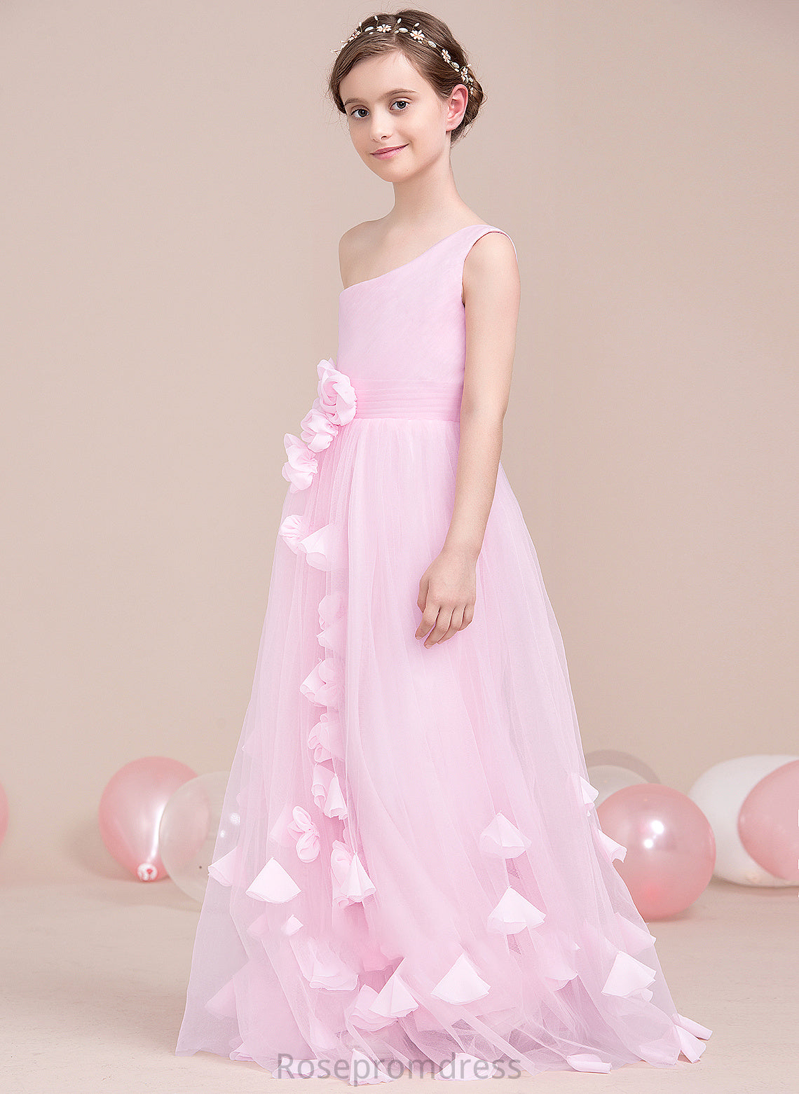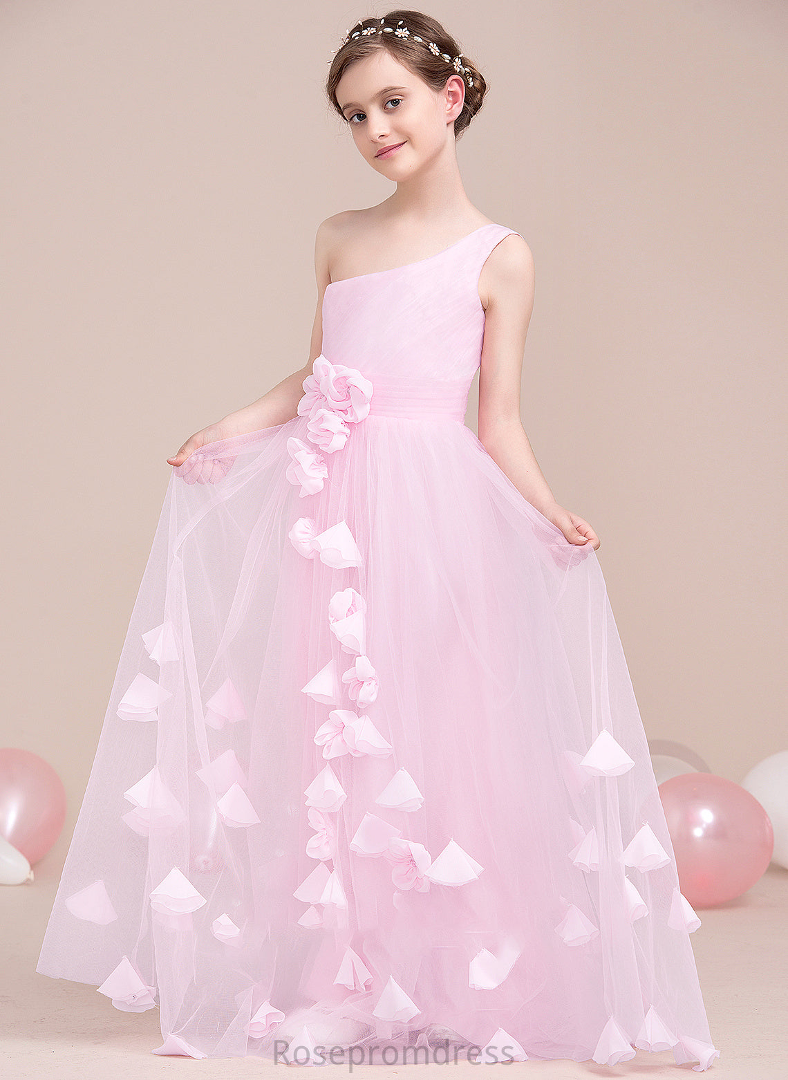 One-Shoulder A-Line Ruffle Flower(s) With Anabel Junior Bridesmaid Dresses Floor-Length Tulle
