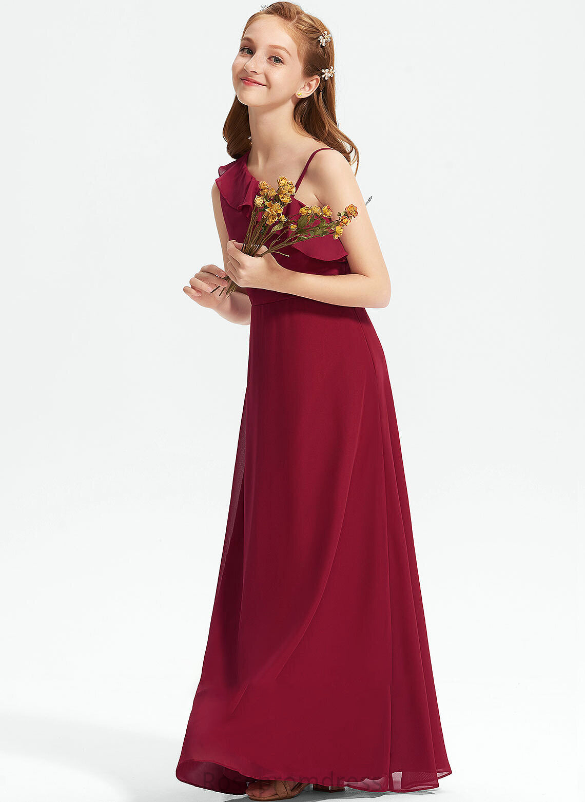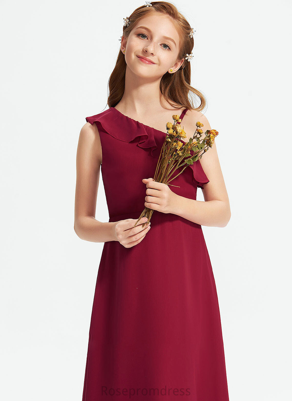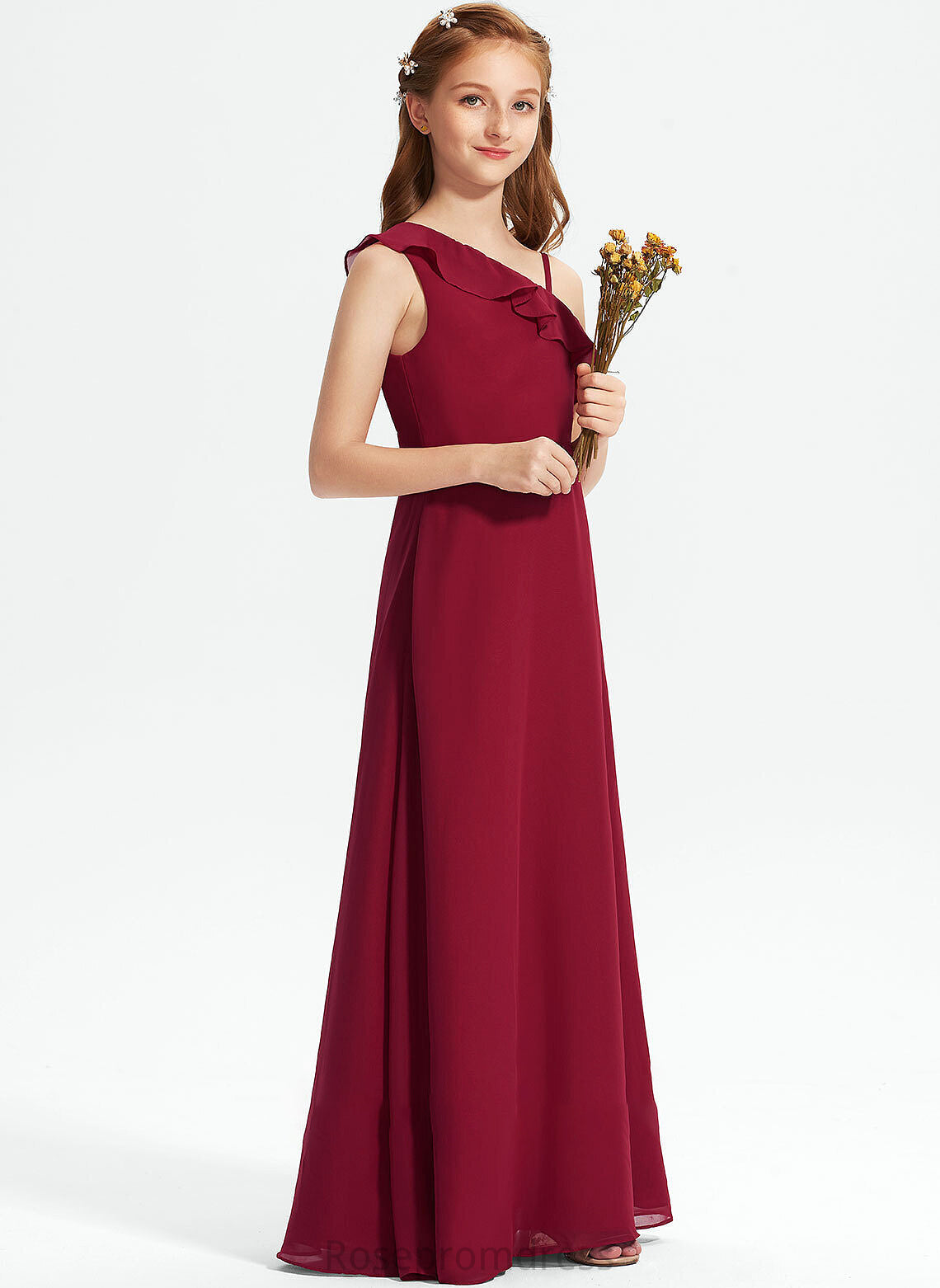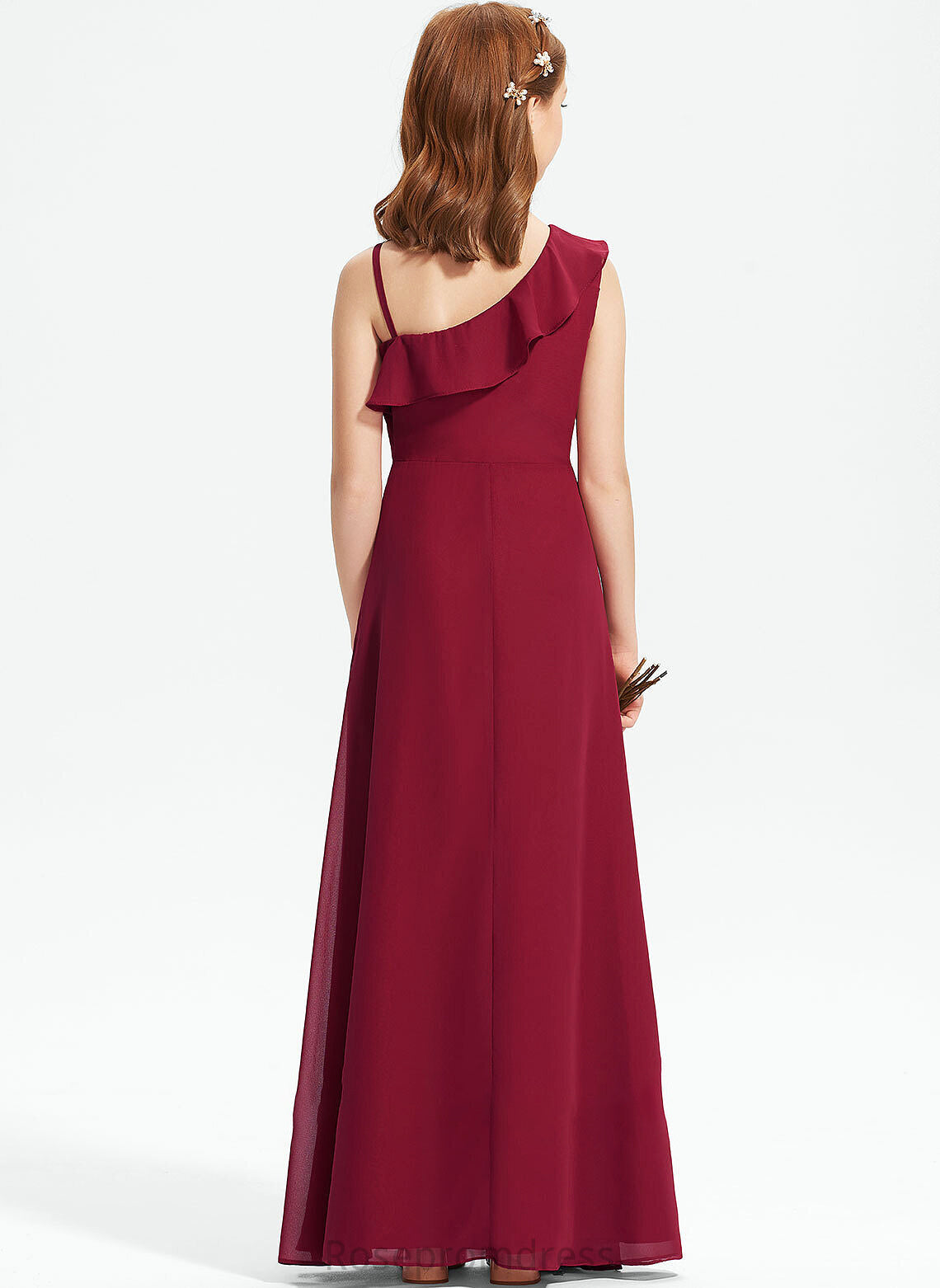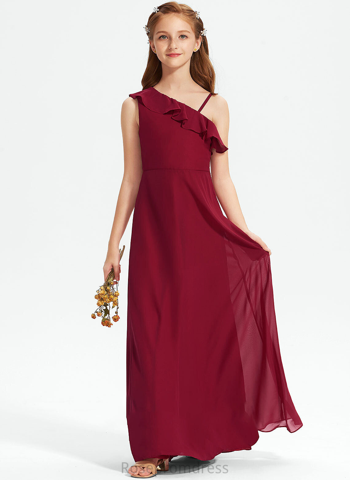 One-Shoulder Floor-Length Ruffles Junior Bridesmaid Dresses Chiffon Jaida With A-Line