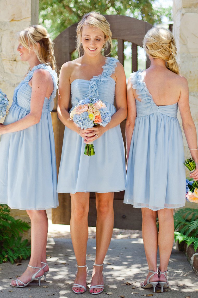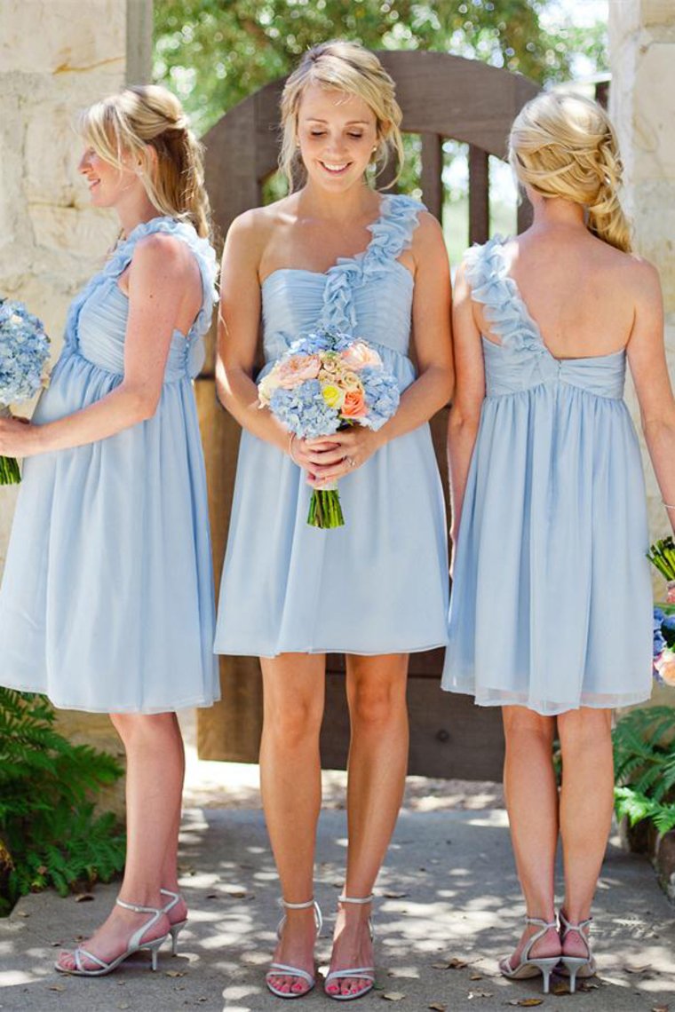 One Shoulder Light Sky Blue Short A-Line Knee Length Bridesmaid Dresses Pregnant Dresses