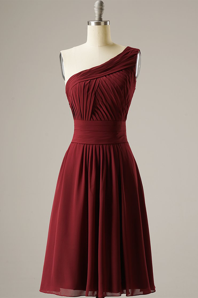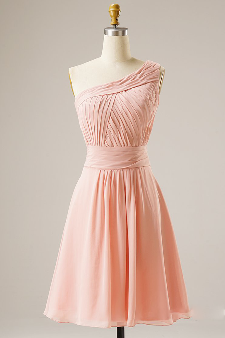 One Shoulder Pleats Short Prom Ivy Homecoming Dresses Dress