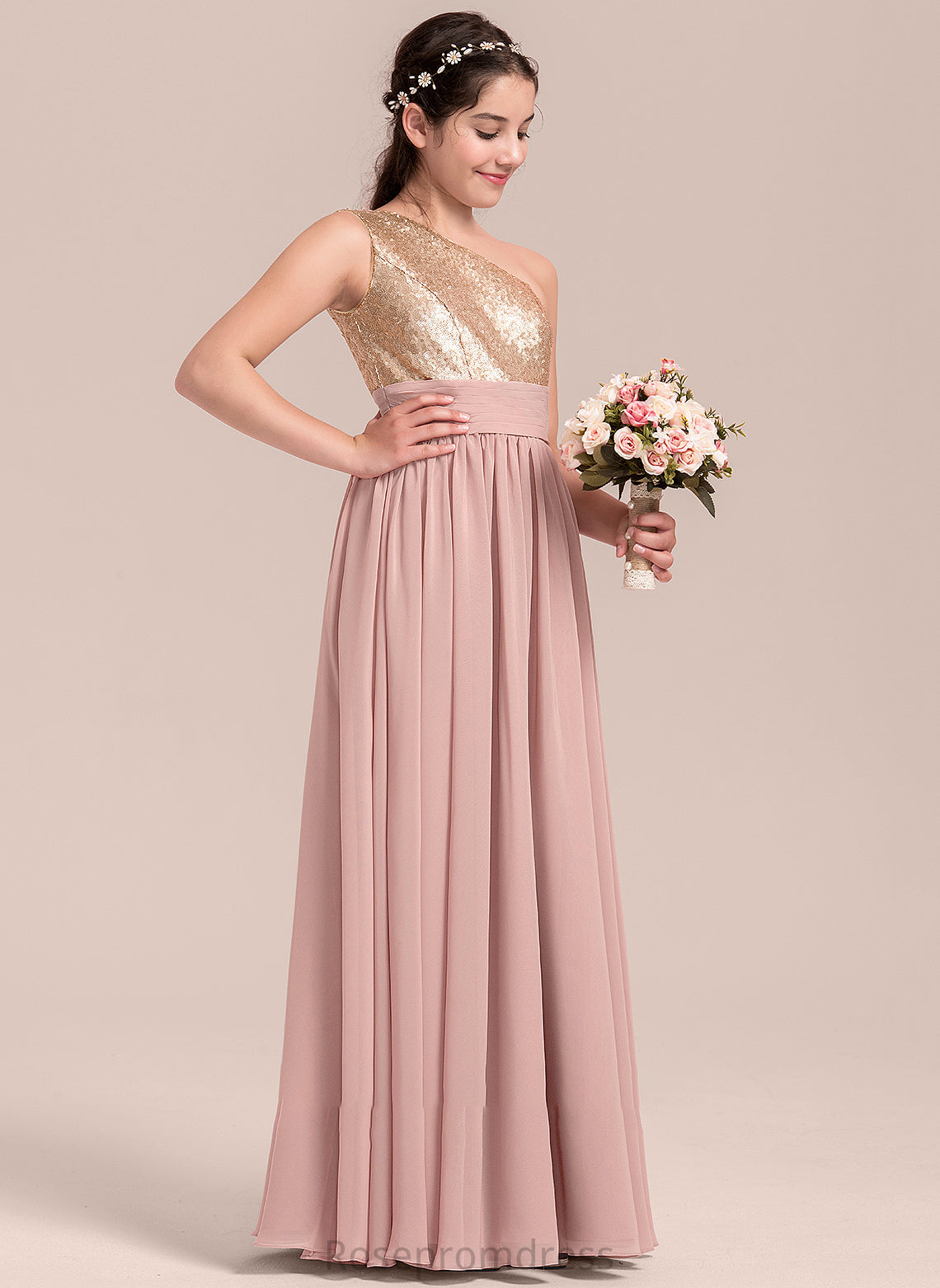 One-Shoulder Ruffle Junior Bridesmaid Dresses Chiffon Undine A-Line Floor-Length With