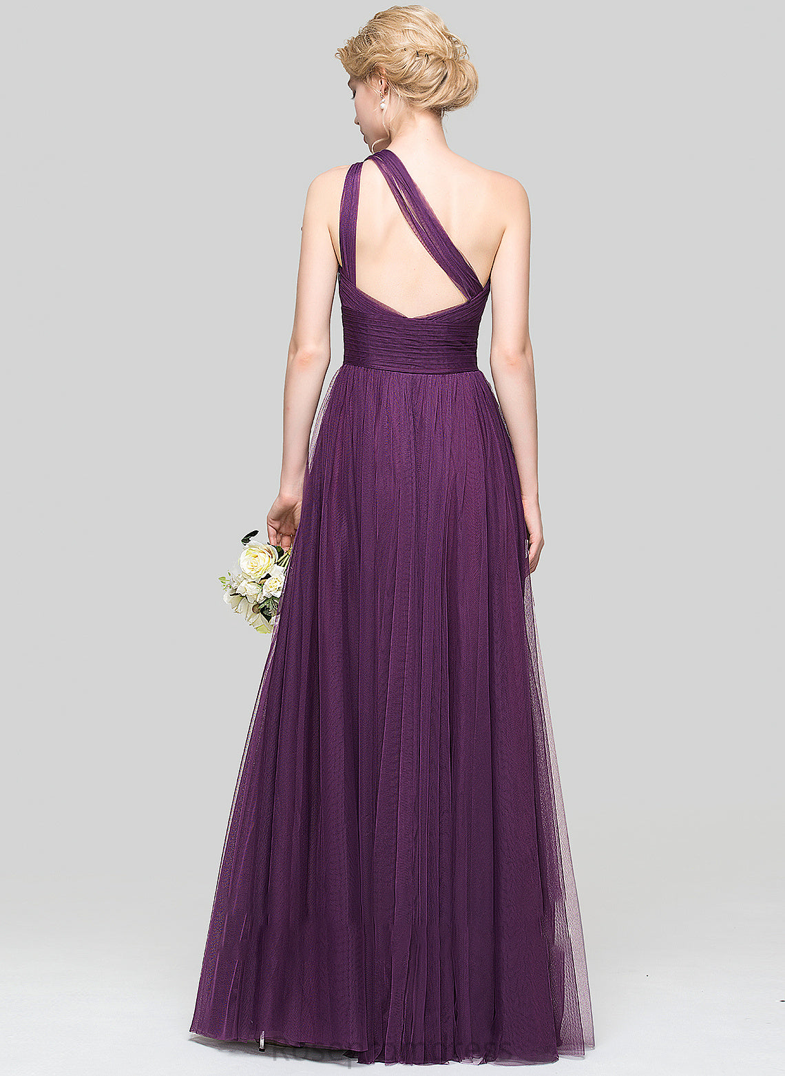 One-Shoulder Tulle A-Line Ruffle Kinsley With Floor-Length Prom Dresses