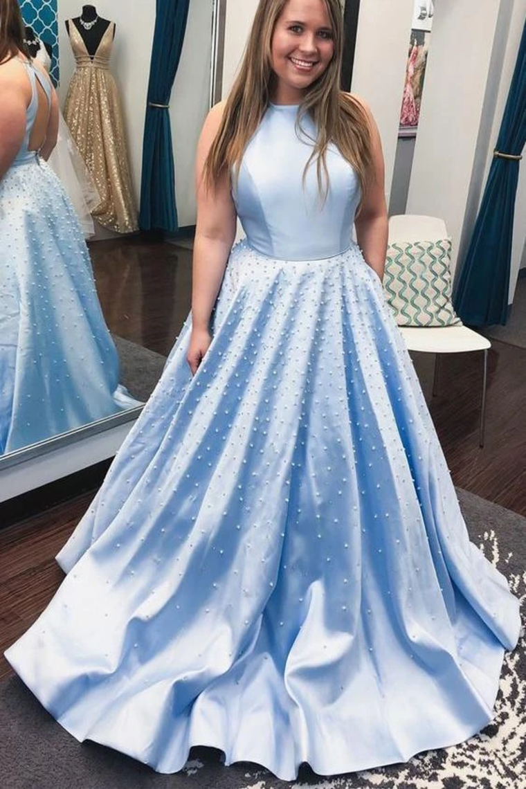 Open Back Floor Length Prom Dress With Pearls A Line Sleeveless Formal SRSP74AHYZK