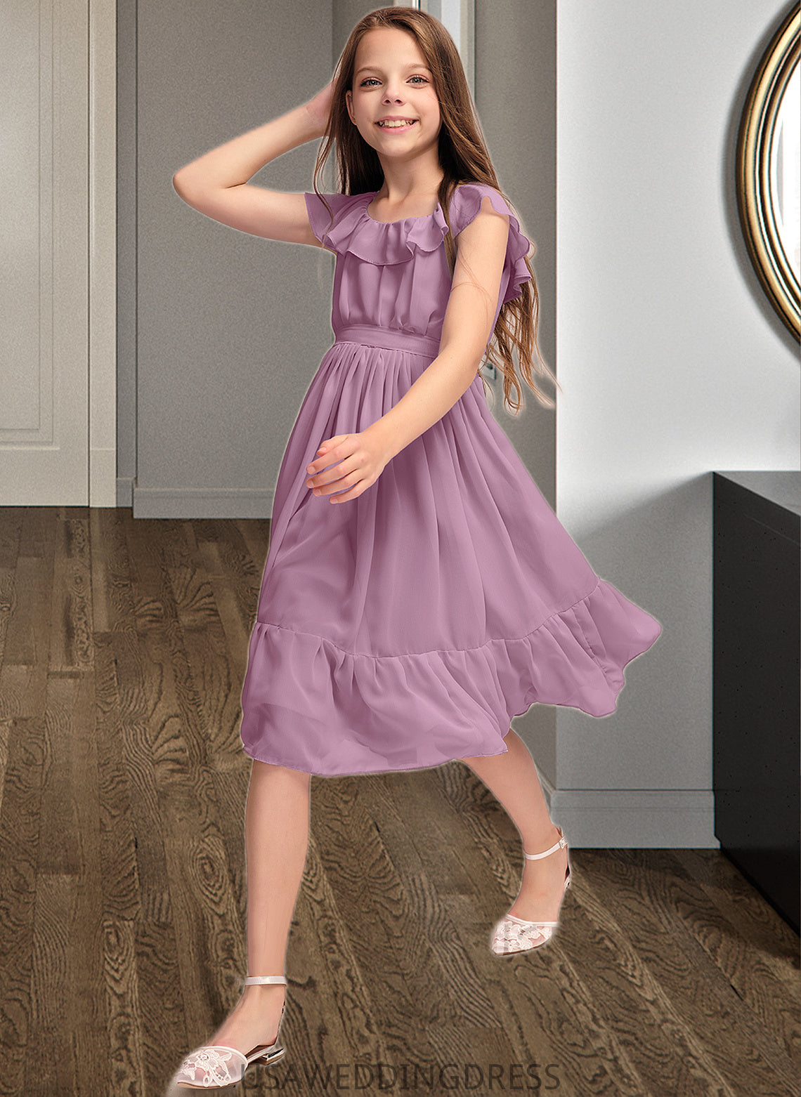 Pamela A-Line Scoop Neck Knee-Length Chiffon Junior Bridesmaid Dress With Bow(s) Cascading Ruffles DSP0013426