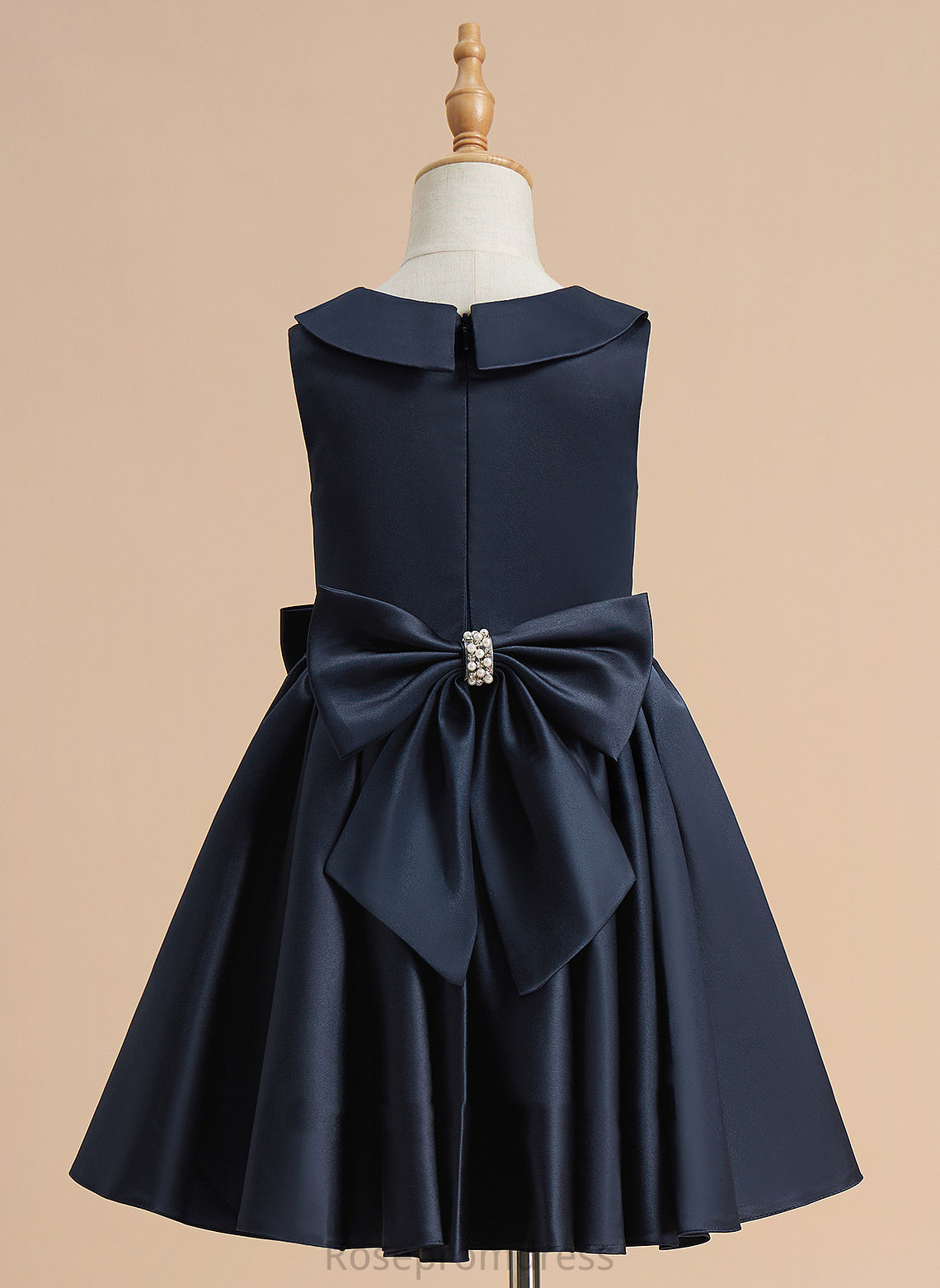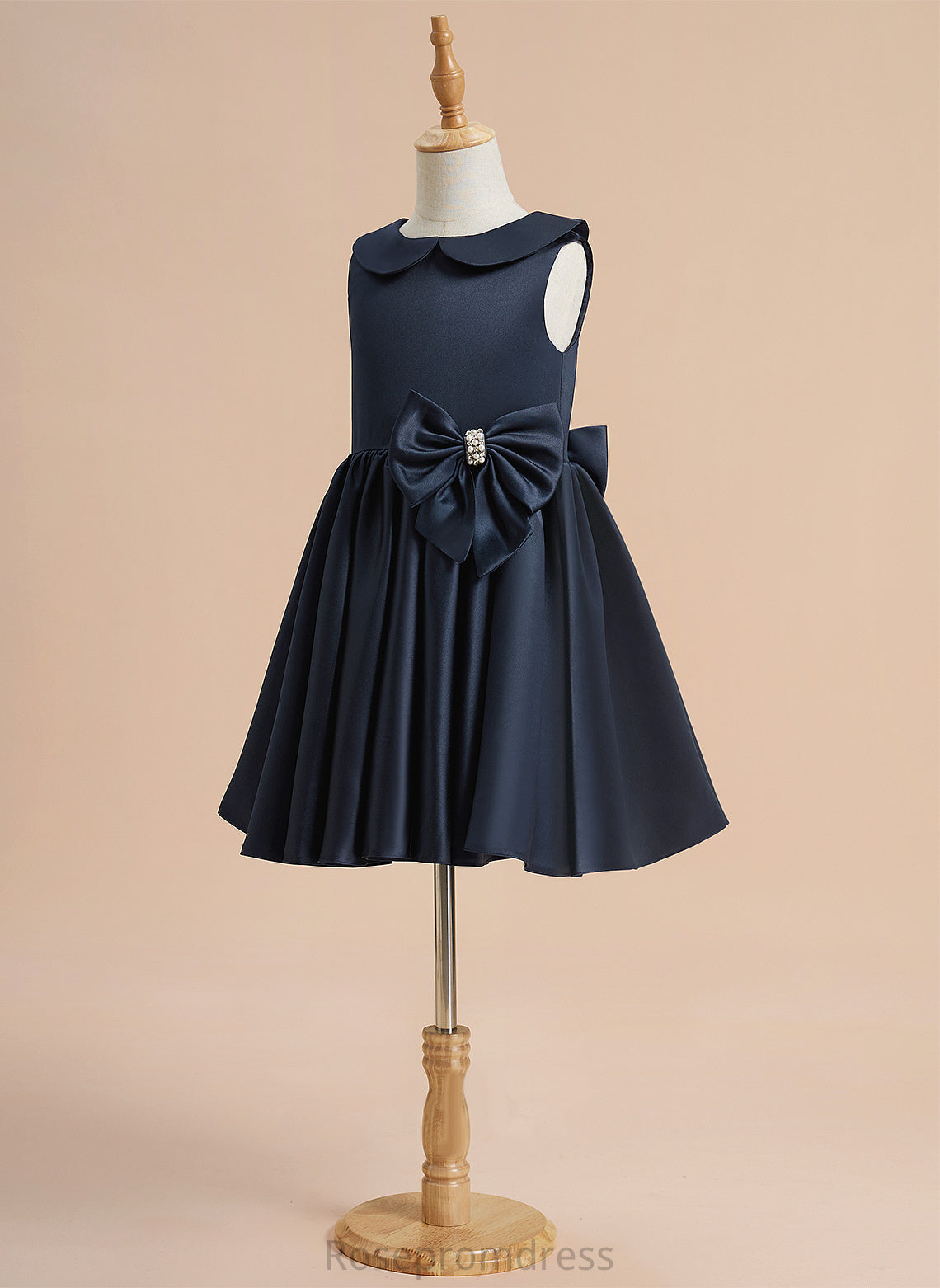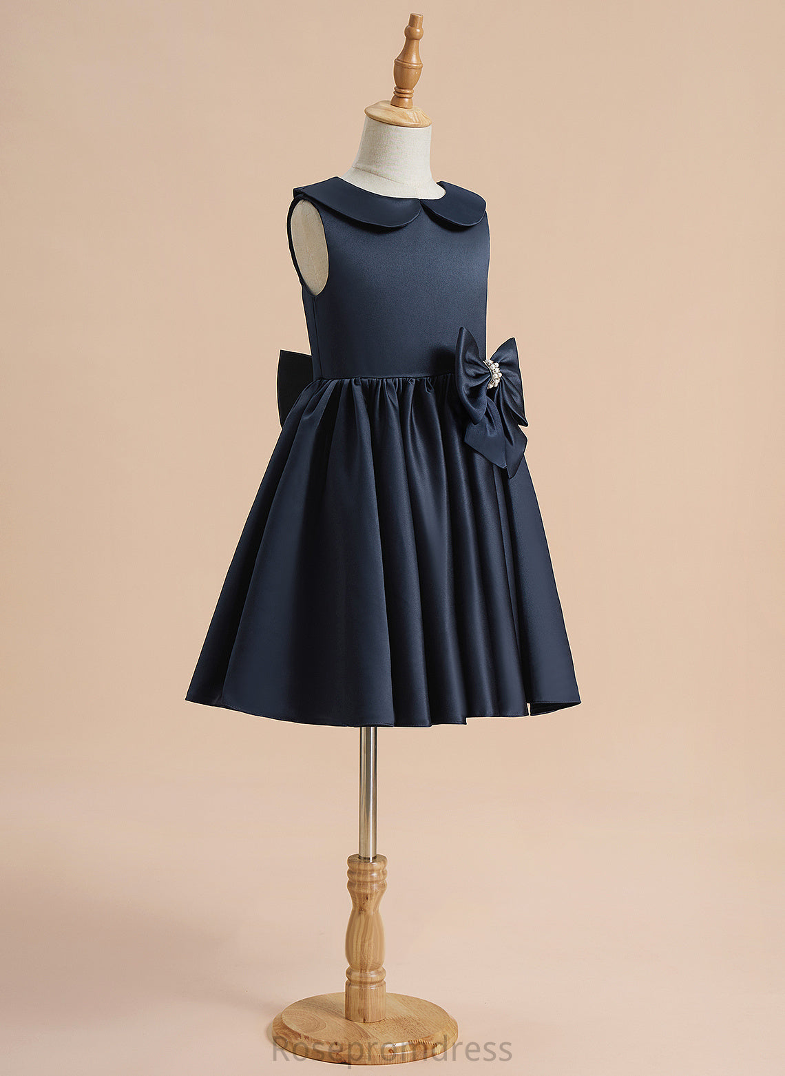 Pan - Flower Girl Dresses Collar Dress Mya A-Line Sleeveless Girl Satin With Knee-length Peter Flower Beading/Bow(s)