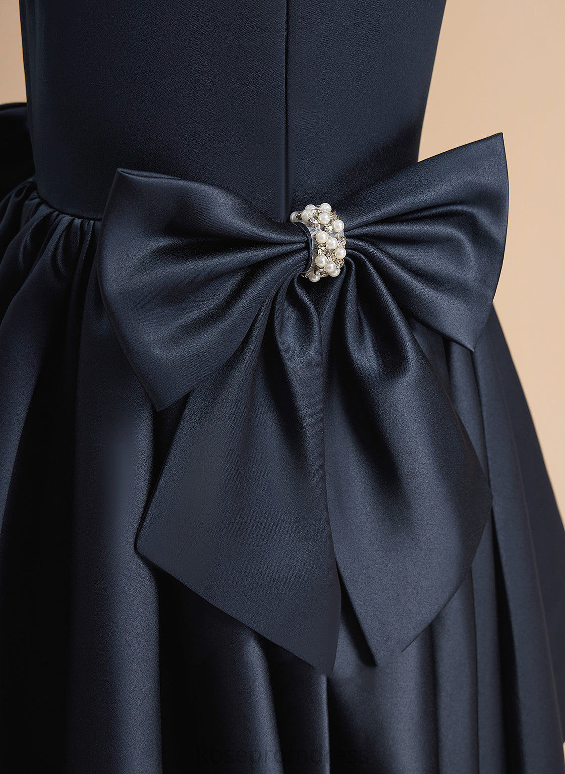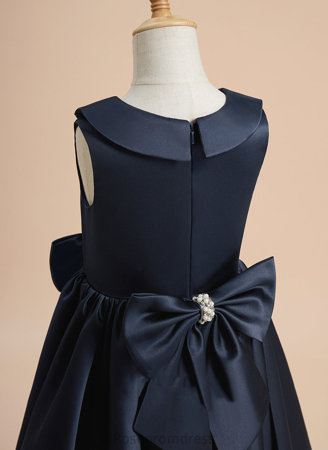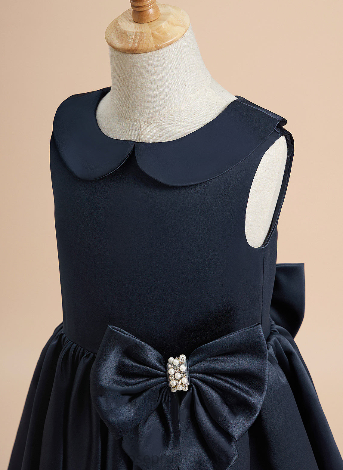 Pan - Flower Girl Dresses Collar Dress Mya A-Line Sleeveless Girl Satin With Knee-length Peter Flower Beading/Bow(s)