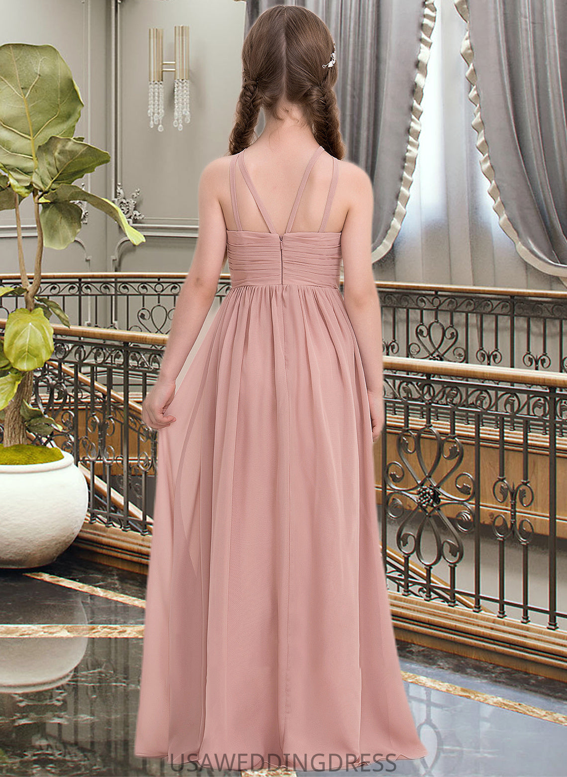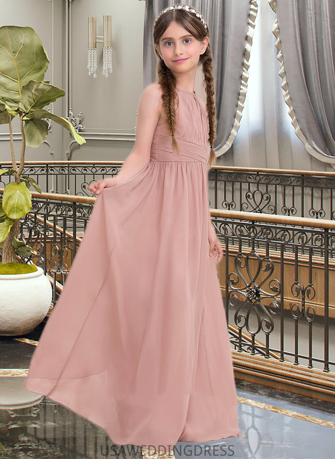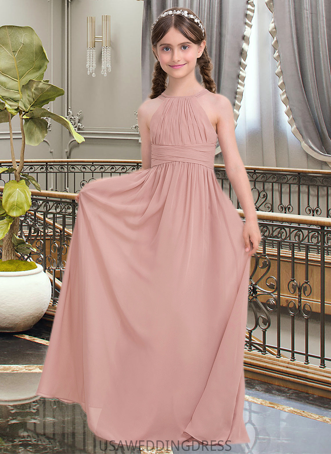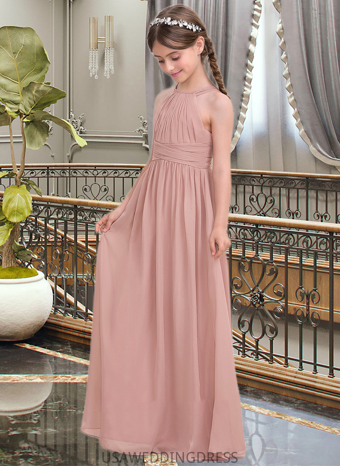 Pancy A-Line Scoop Neck Floor-Length Chiffon Junior Bridesmaid Dress With Ruffle DSP0013473