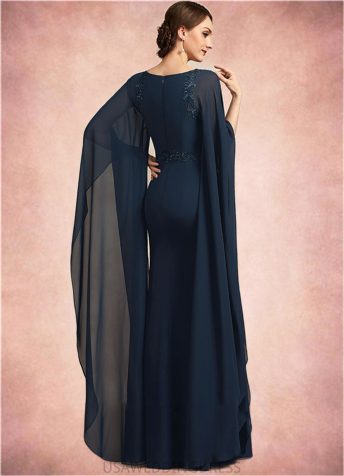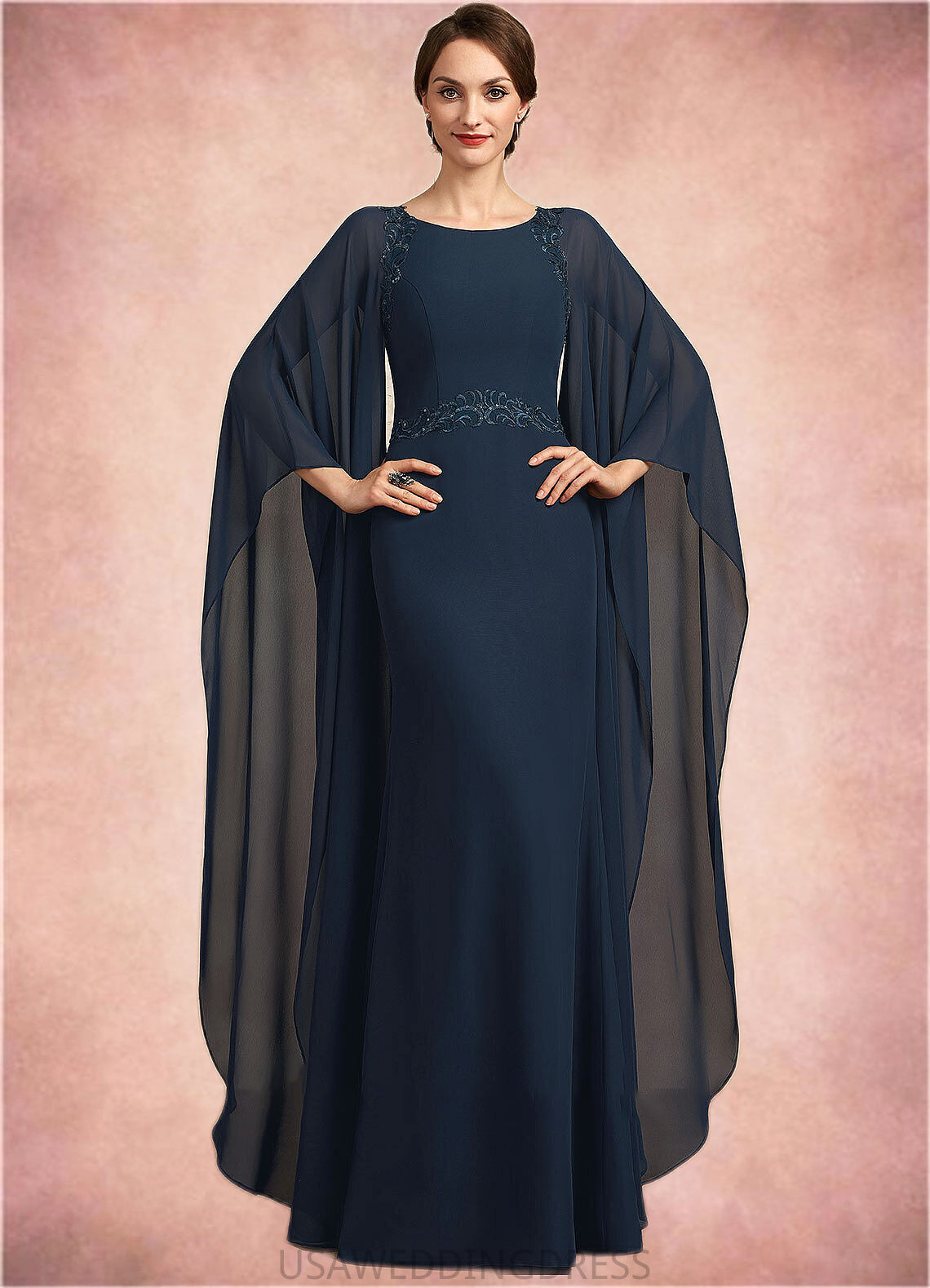 Pancy Sheath/Column Scoop Neck Floor-Length Chiffon Mother of the Bride Dress With Lace Sequins DS126P0014806
