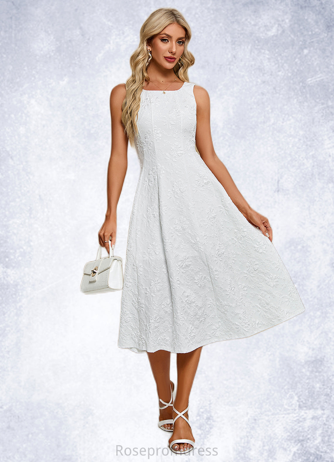 Paola Flower Jacquard Square Elegant A-line Polyester Midi Dresses SRSP0022311