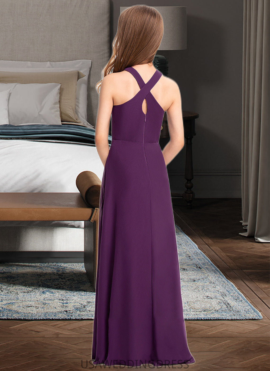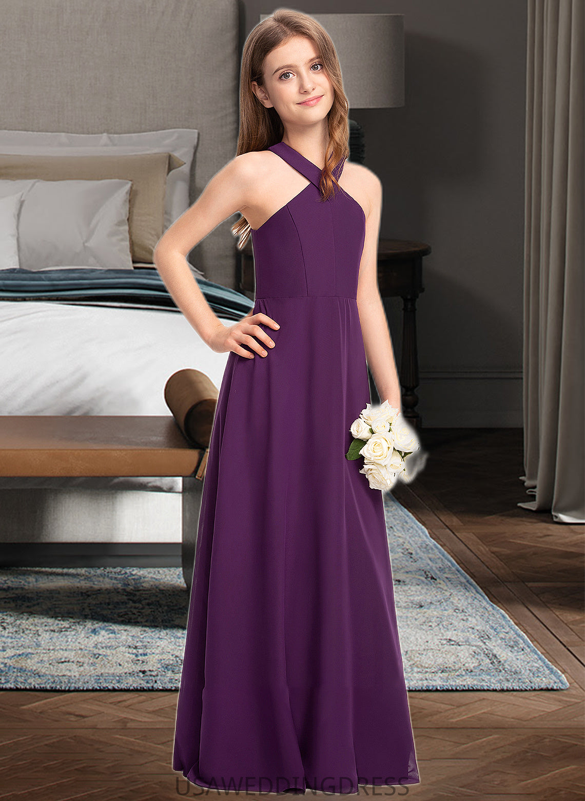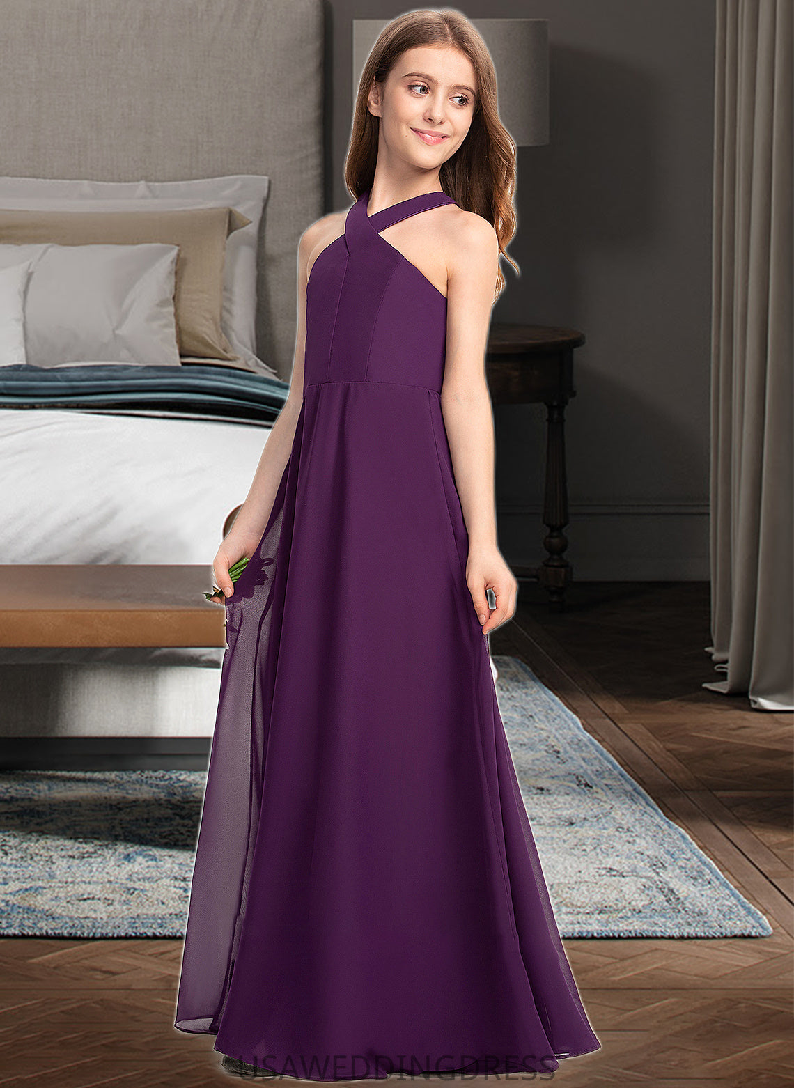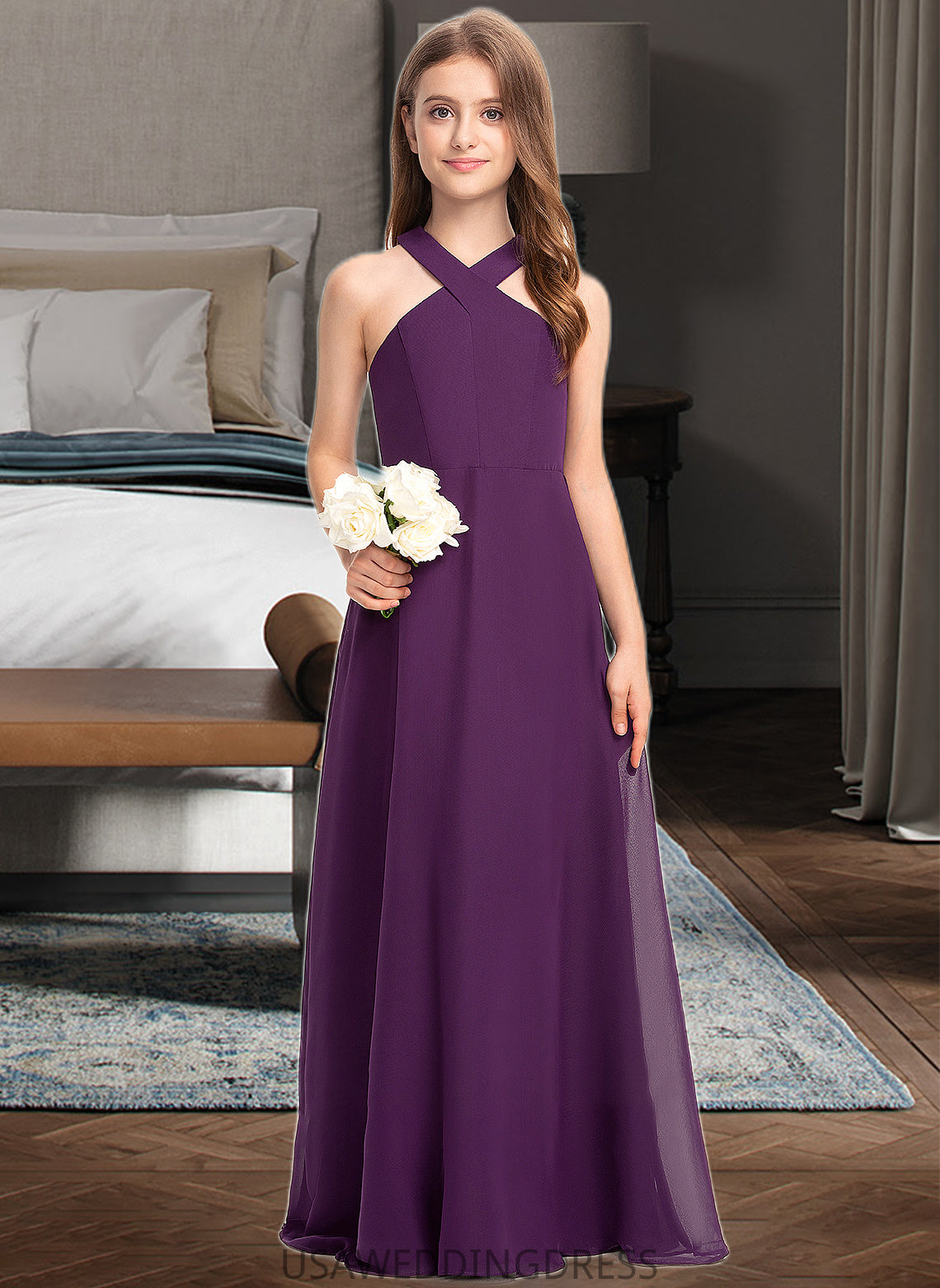 Patti A-Line V-neck Floor-Length Chiffon Junior Bridesmaid Dress DSP0013346