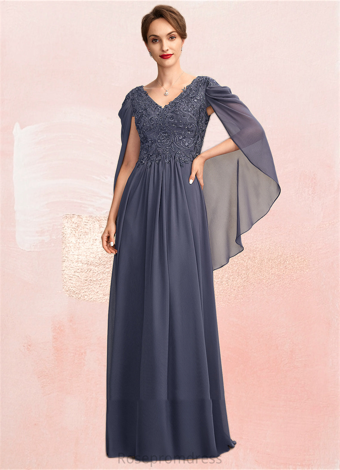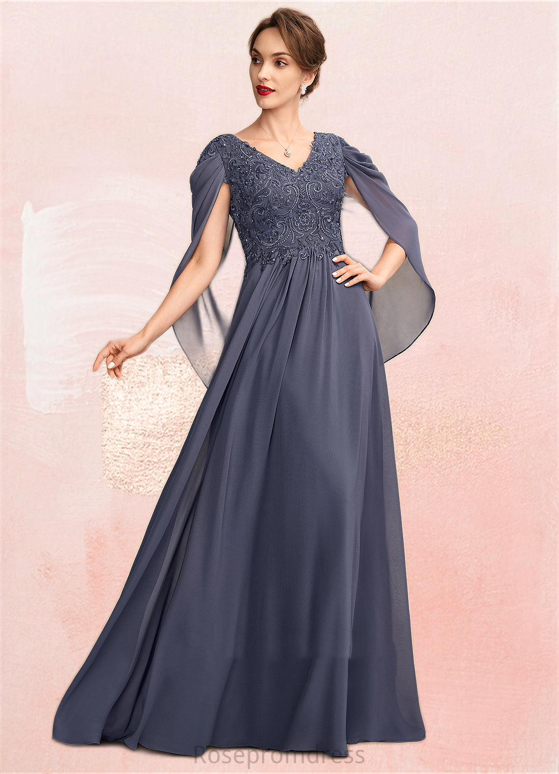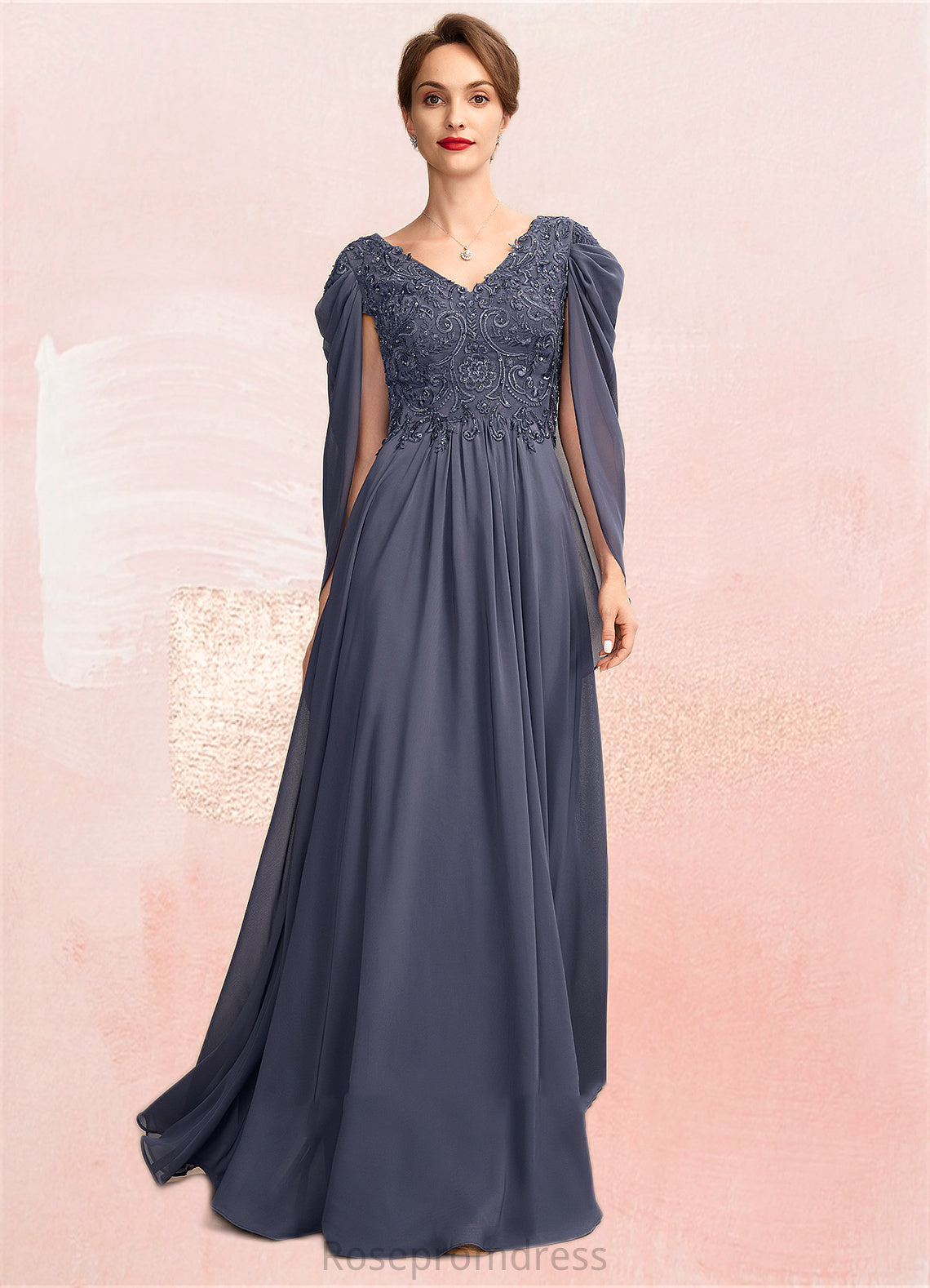 Paulina A-Line V-neck Floor-Length Chiffon Lace Mother of the Bride Dress With Beading Sequins SRS126P0015022