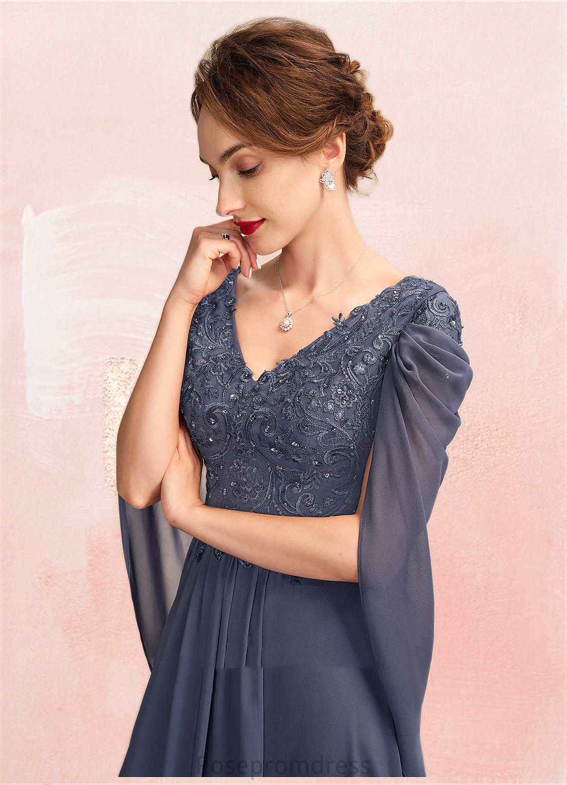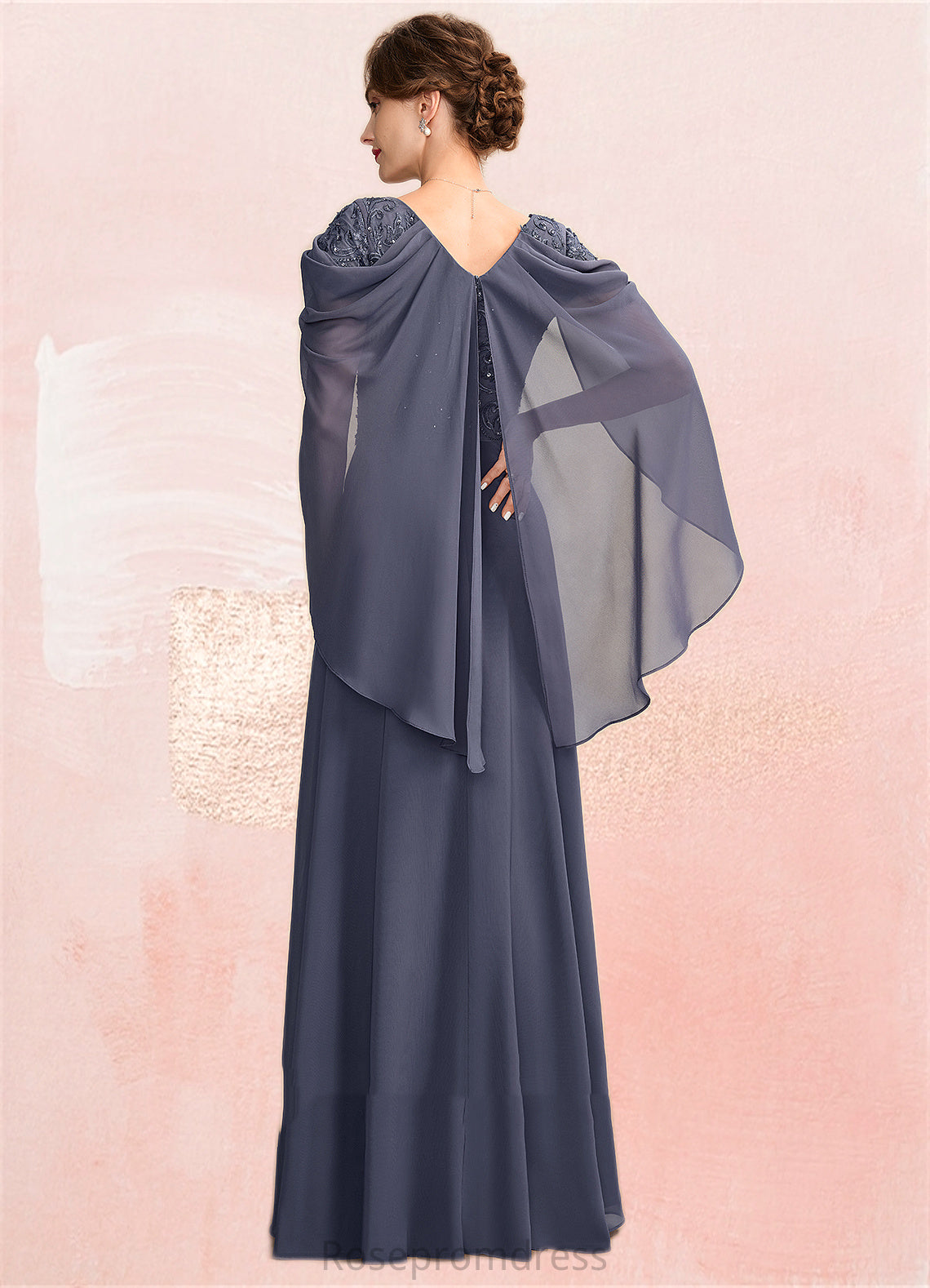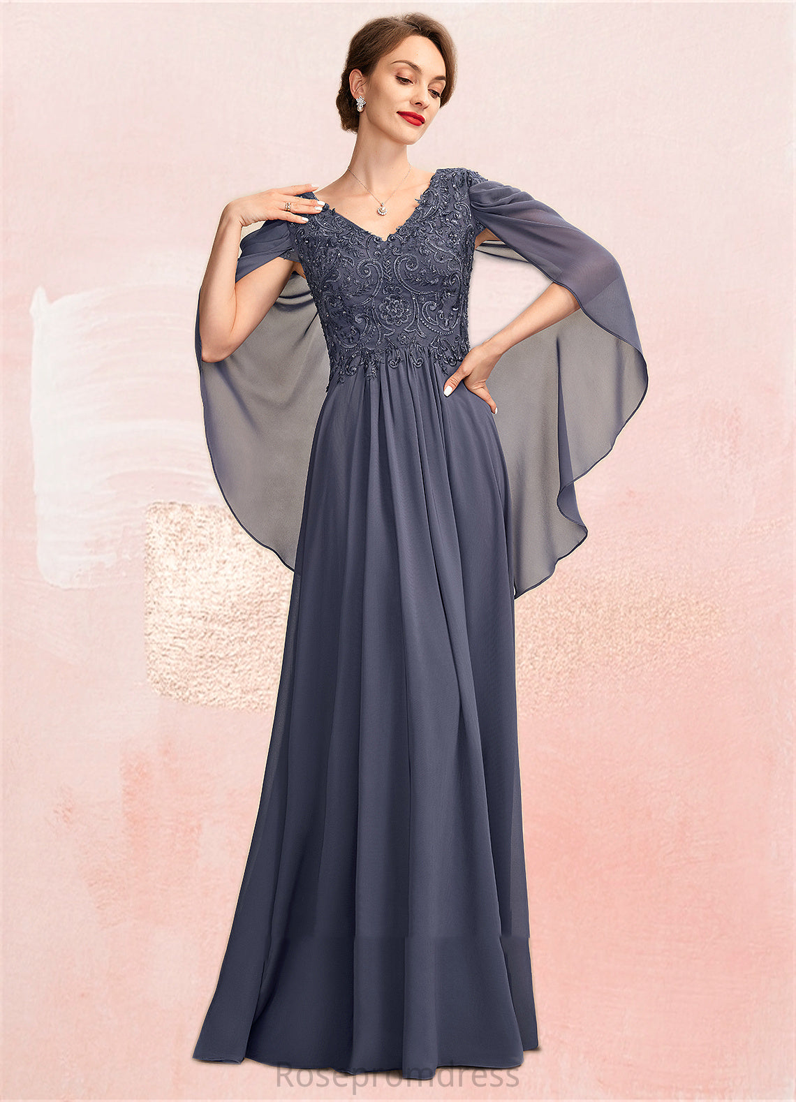 Paulina A-Line V-neck Floor-Length Chiffon Lace Mother of the Bride Dress With Beading Sequins SRS126P0015022