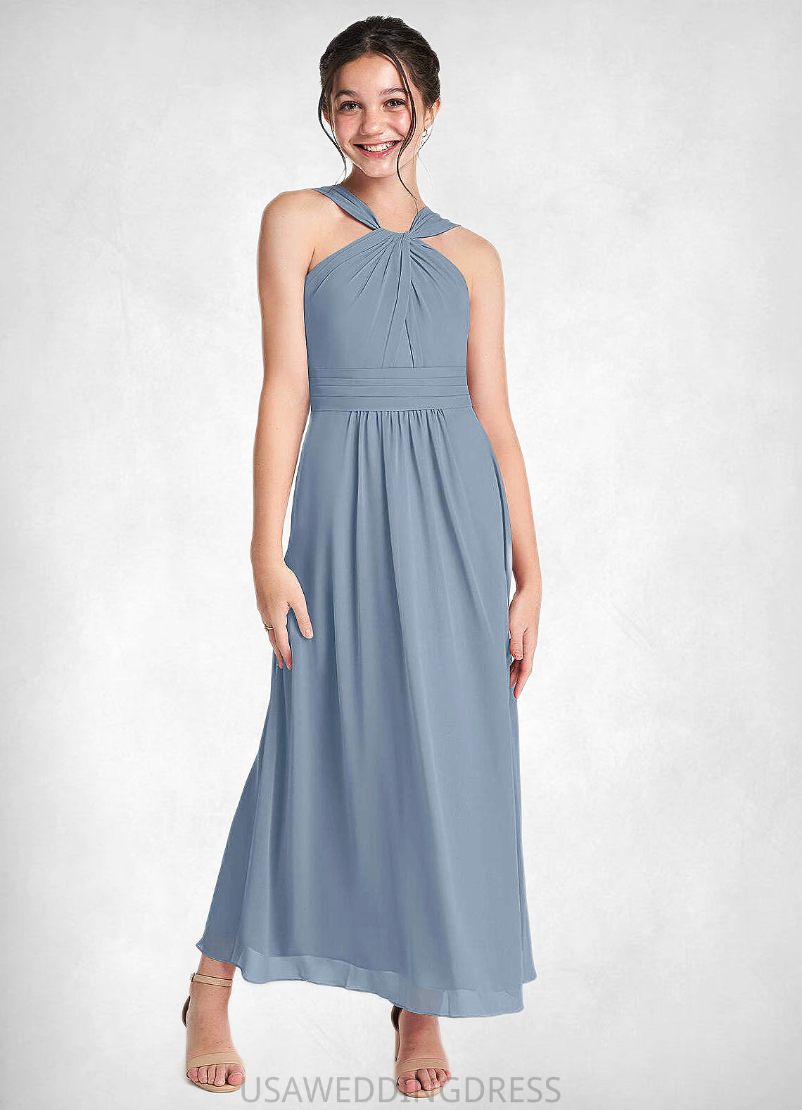 Pauline A-Line Pleated Chiffon Ankle-Length Junior Bridesmaid Dress dusty blue DSP0022866