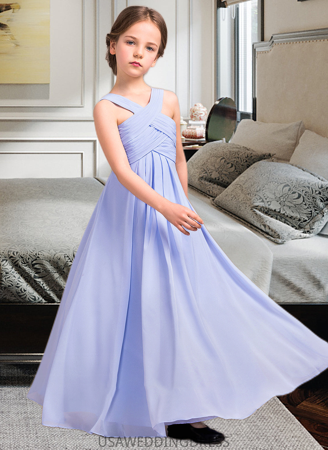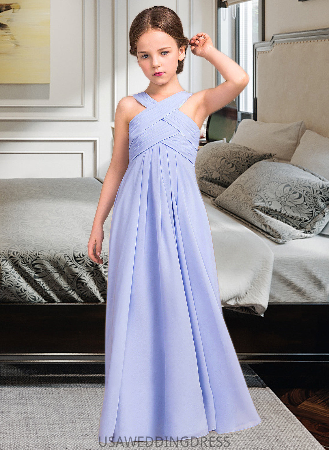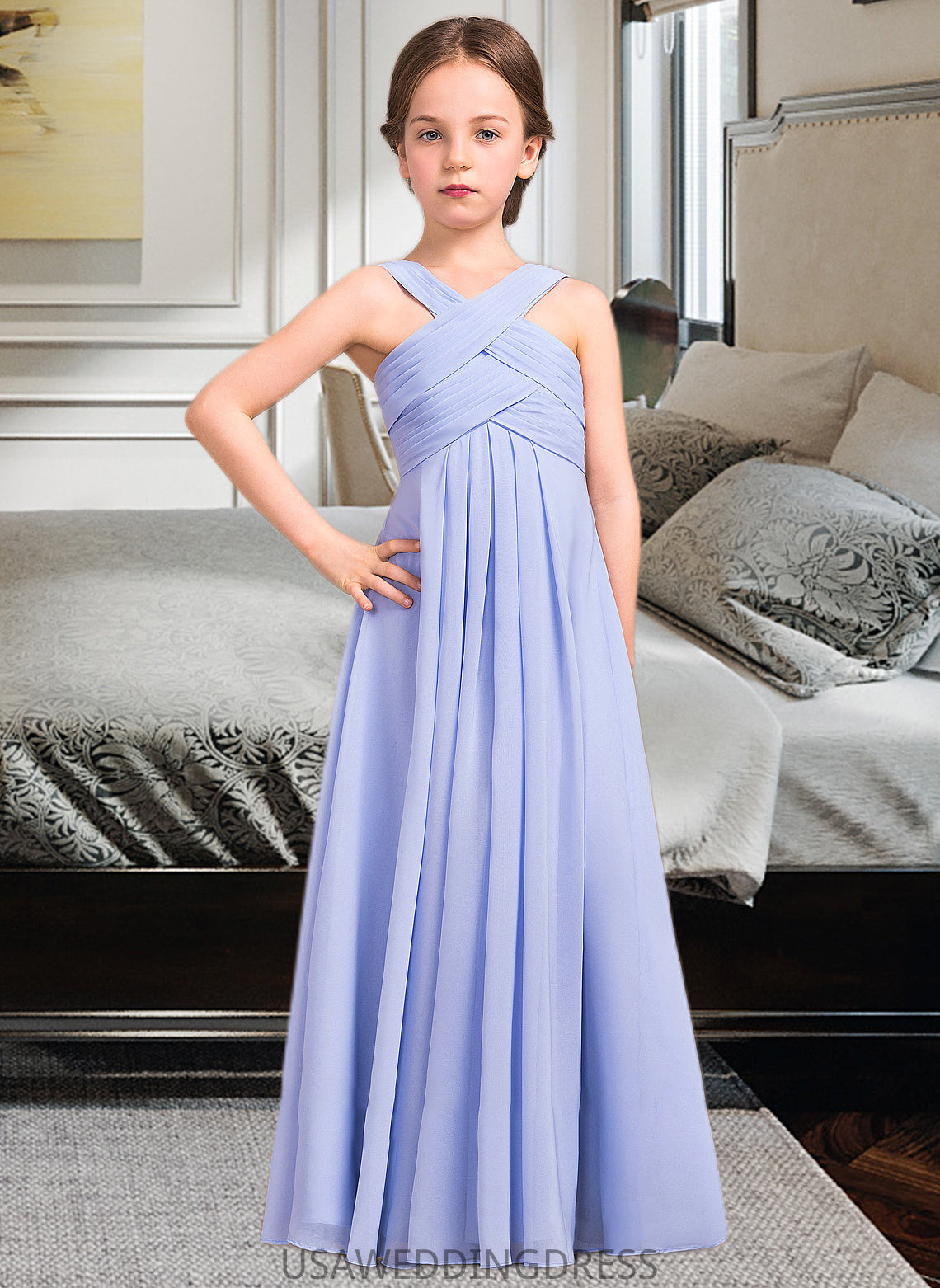 Pearl A-Line V-neck Floor-Length Chiffon Junior Bridesmaid Dress With Ruffle DSP0013501