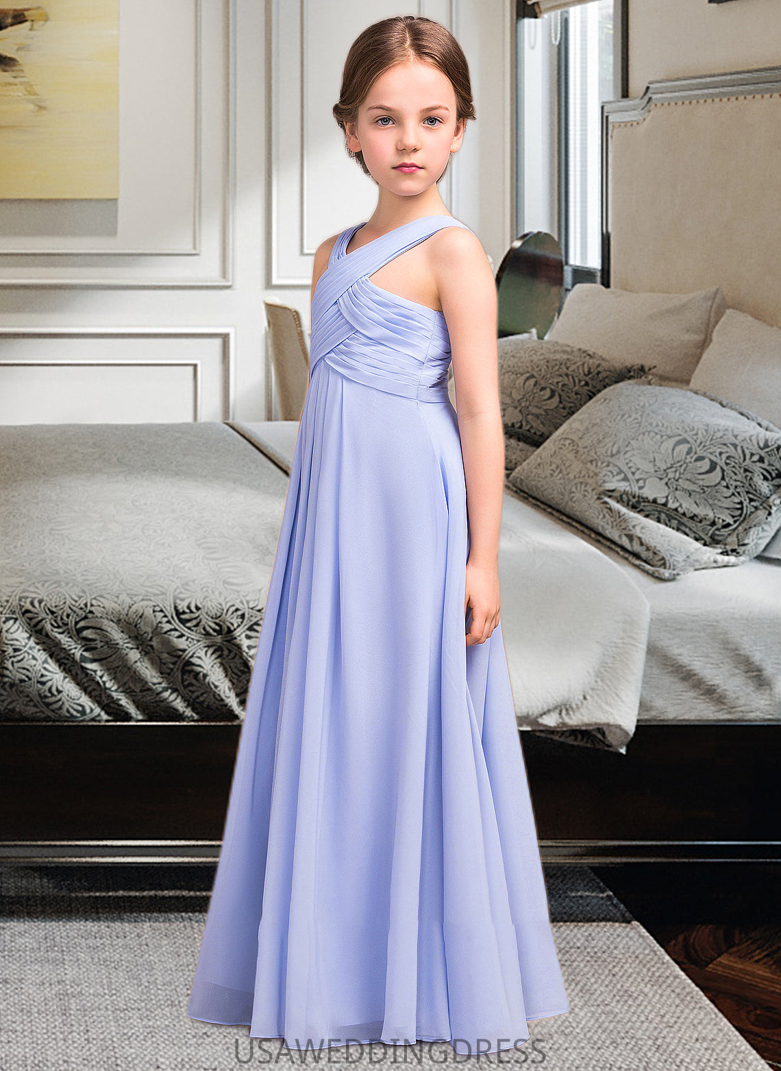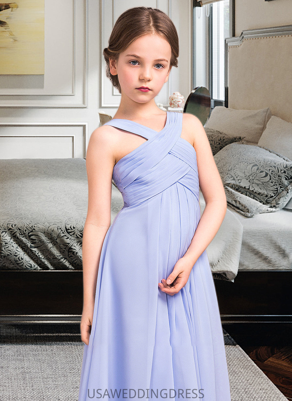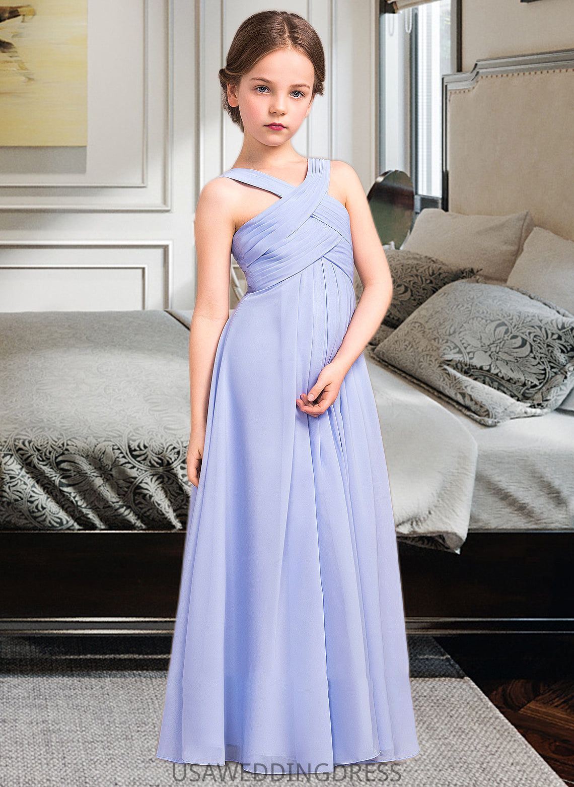 Pearl A-Line V-neck Floor-Length Chiffon Junior Bridesmaid Dress With Ruffle DSP0013501
