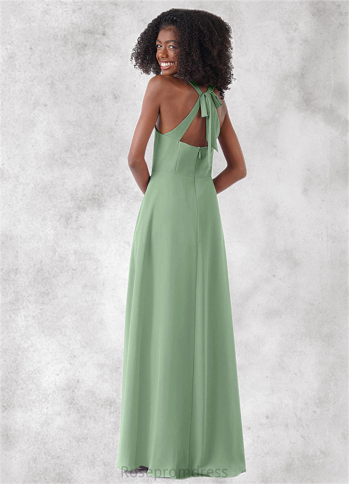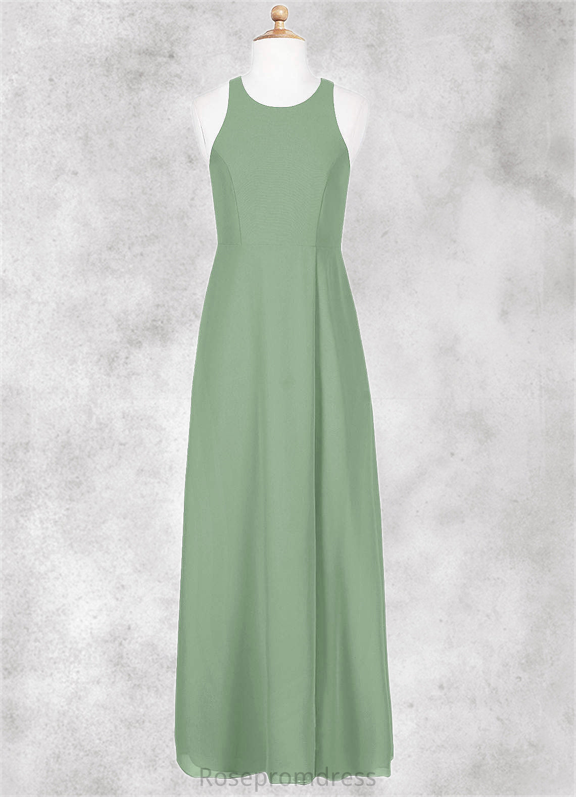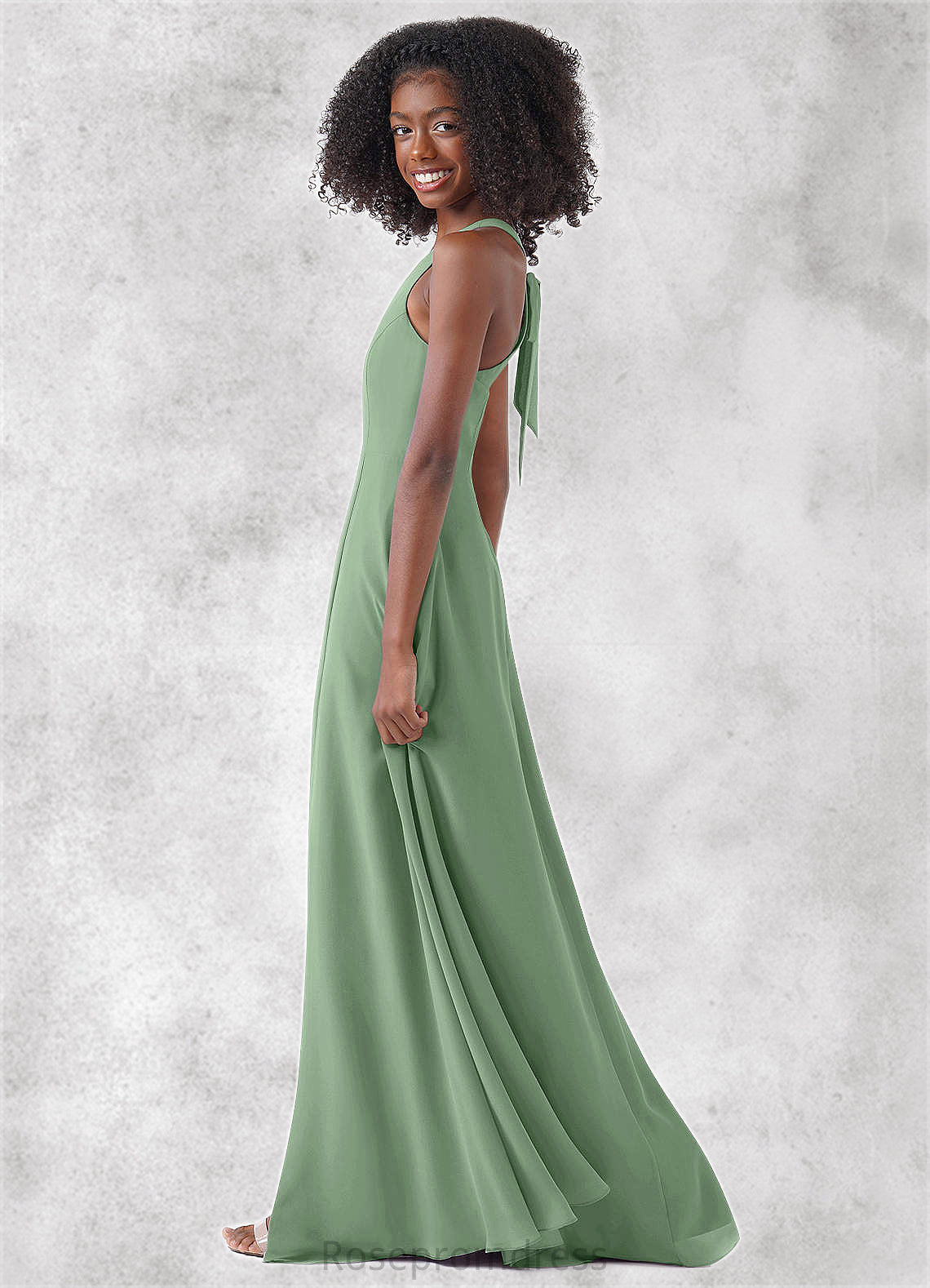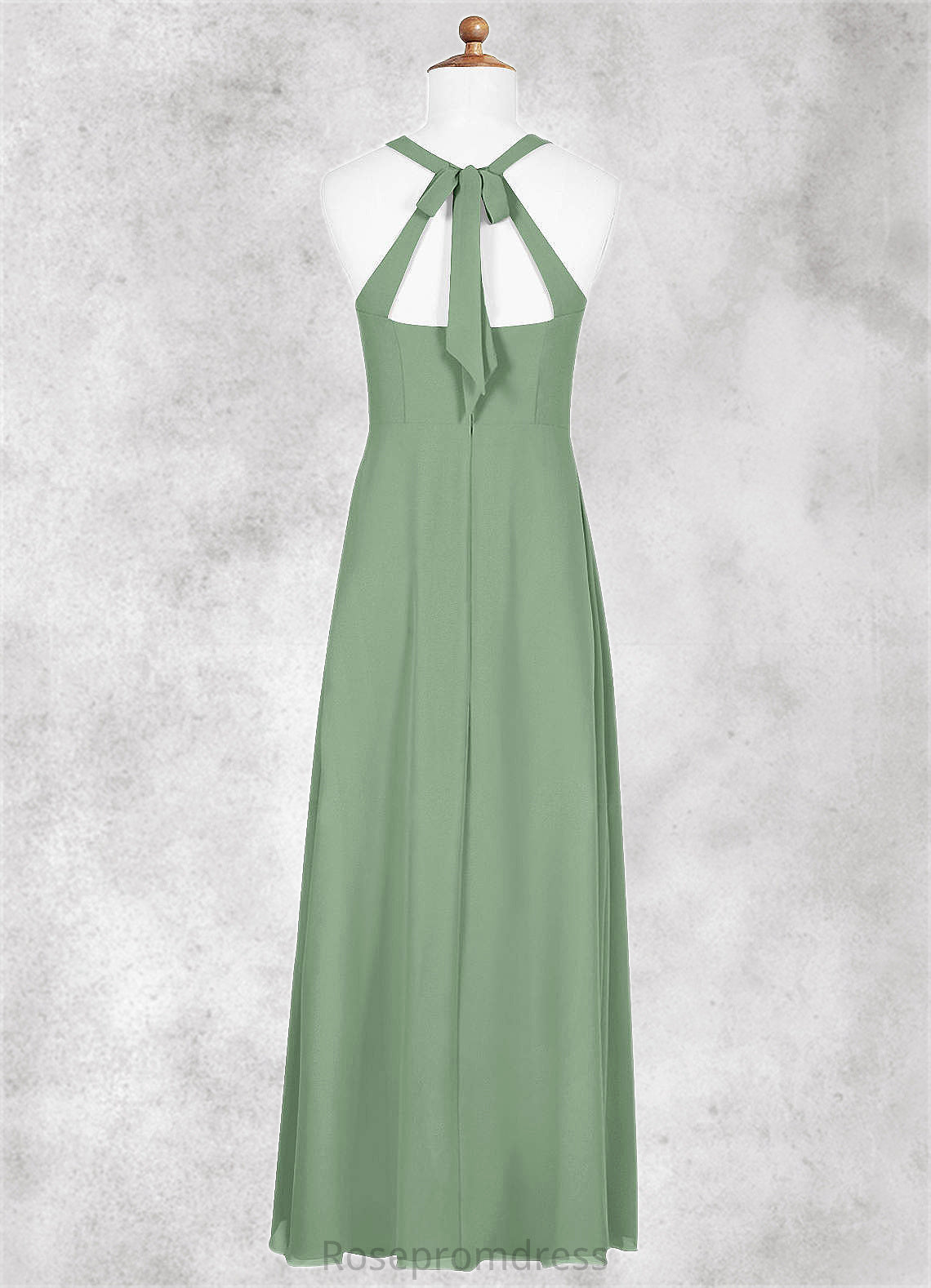 Penelope A-Line Bow Chiffon Floor-Length Junior Bridesmaid Dress SRSP0020013