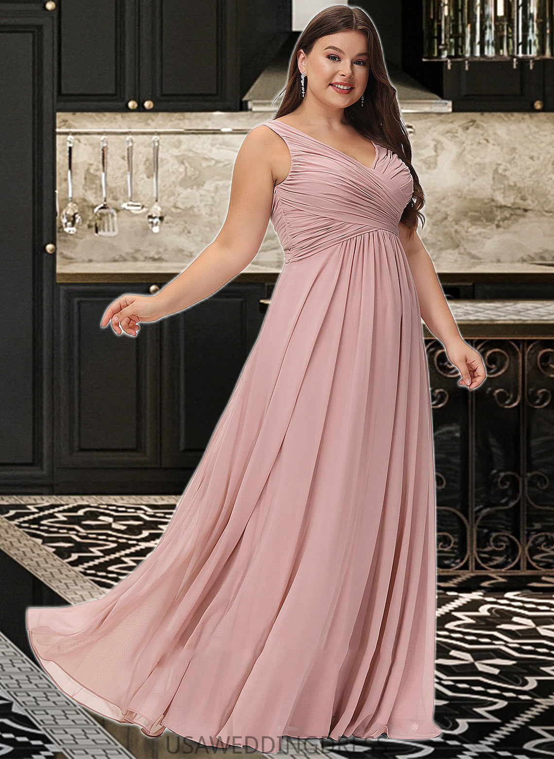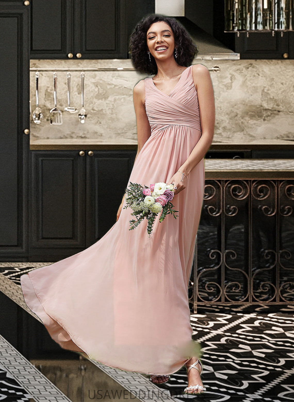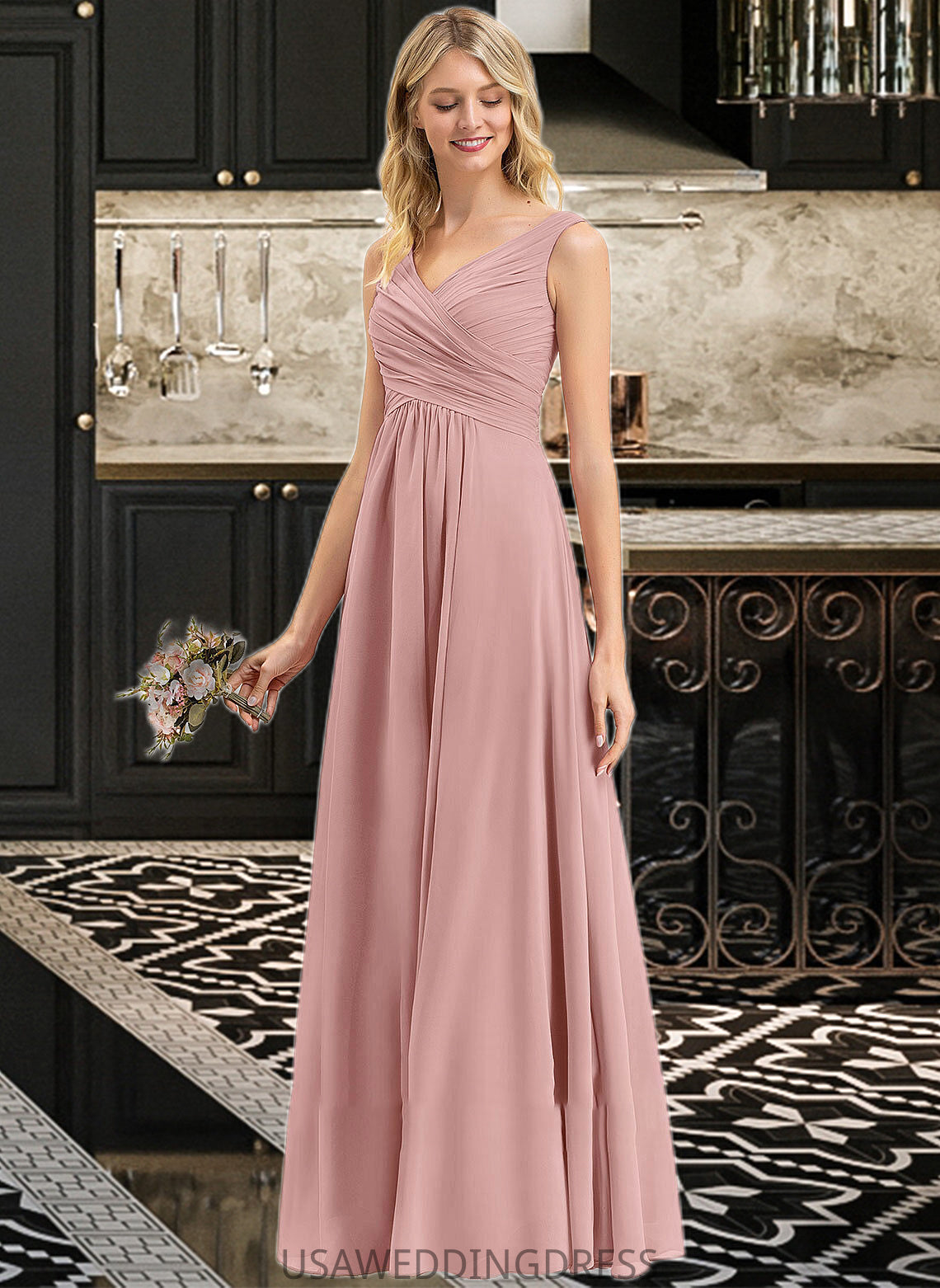 Penelope A-Line V-neck Floor-Length Chiffon Bridesmaid Dress With Ruffle DSP0012774