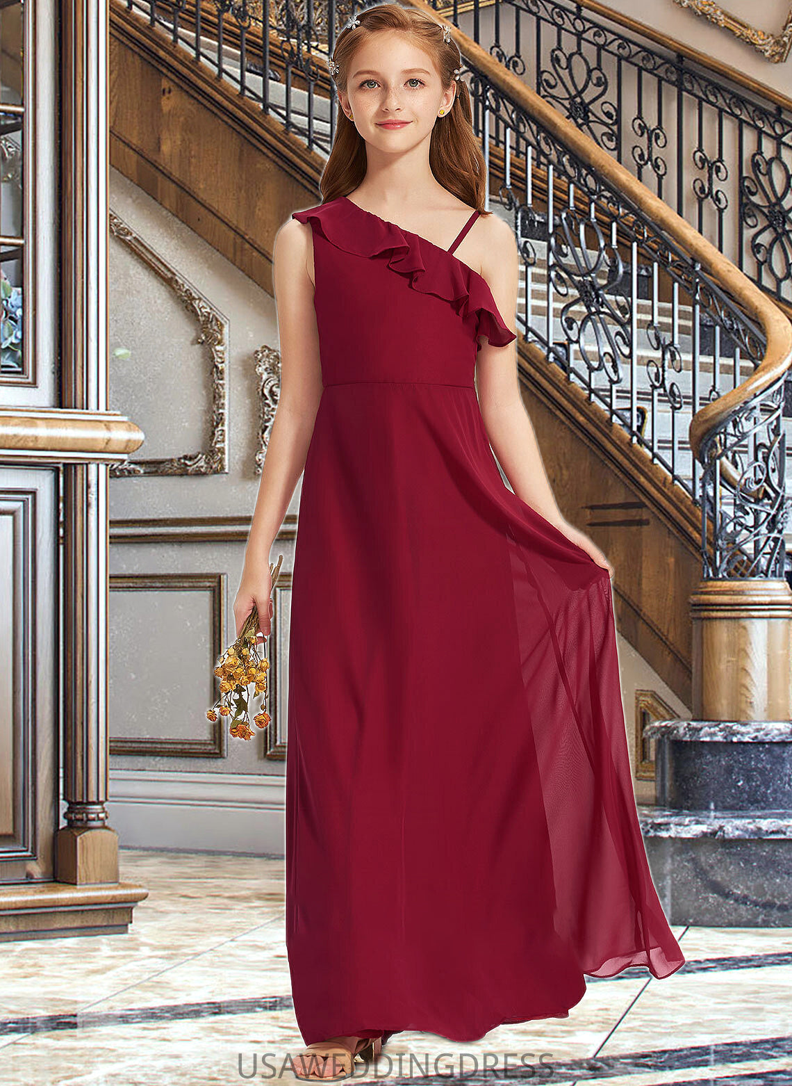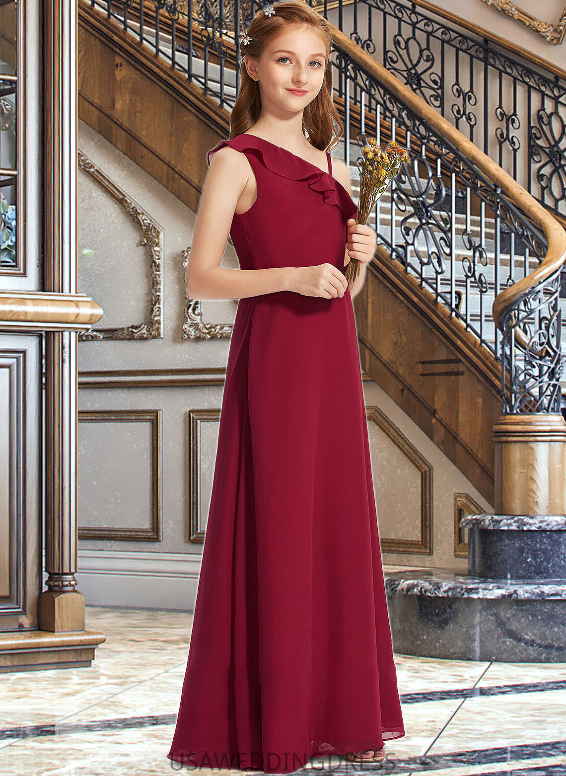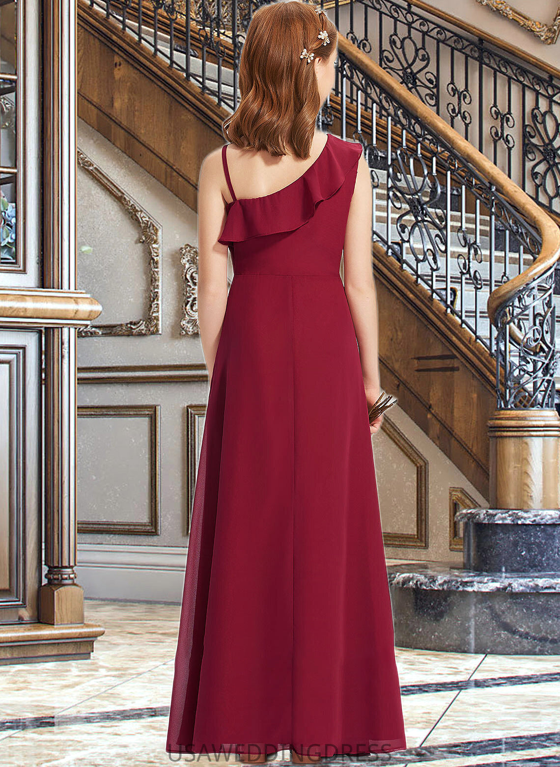 Penny A-Line One-Shoulder Floor-Length Chiffon Junior Bridesmaid Dress With Ruffles DSP0013650