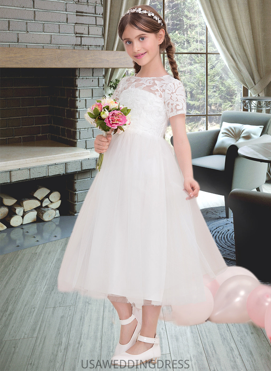 Persis A-Line Scoop Neck Tea-Length Tulle Junior Bridesmaid Dress DSP0013535