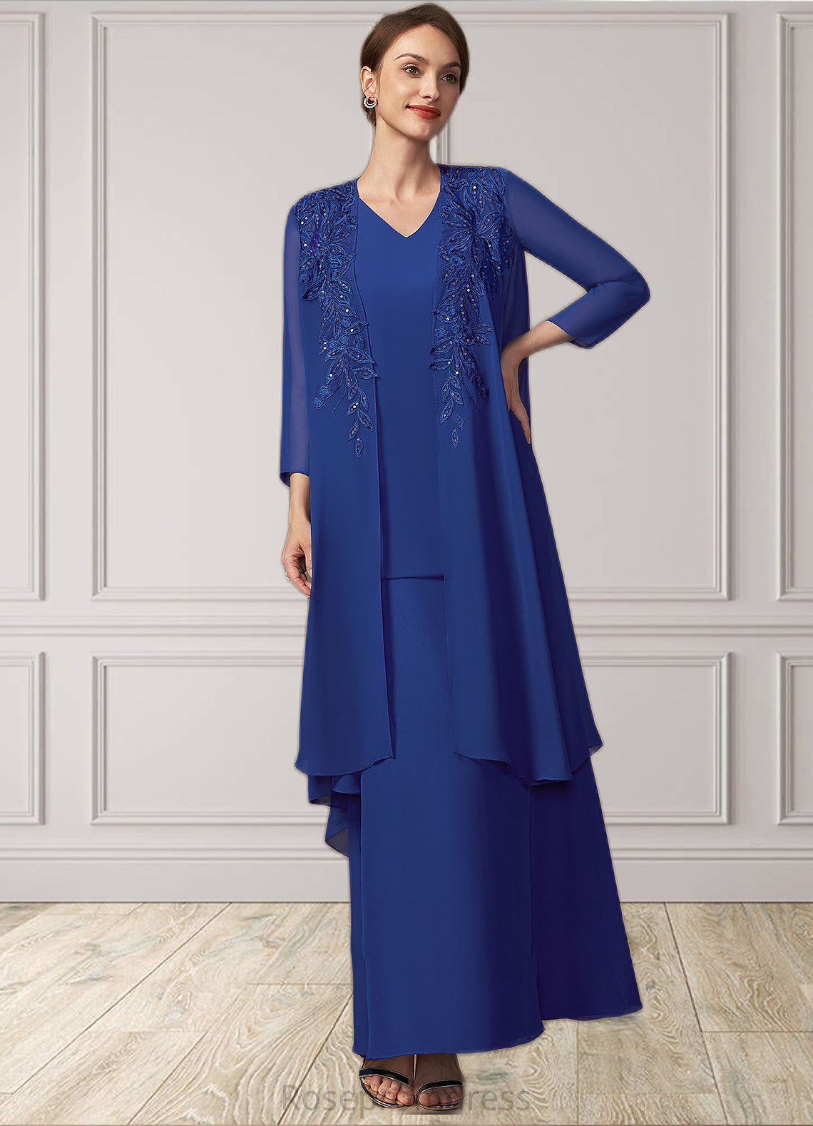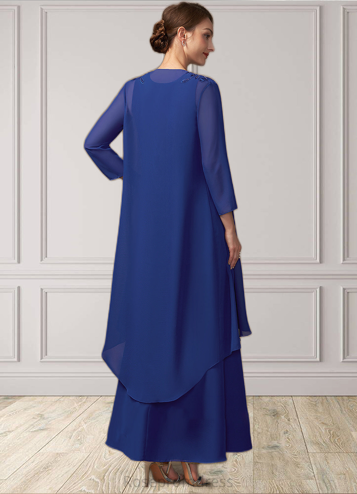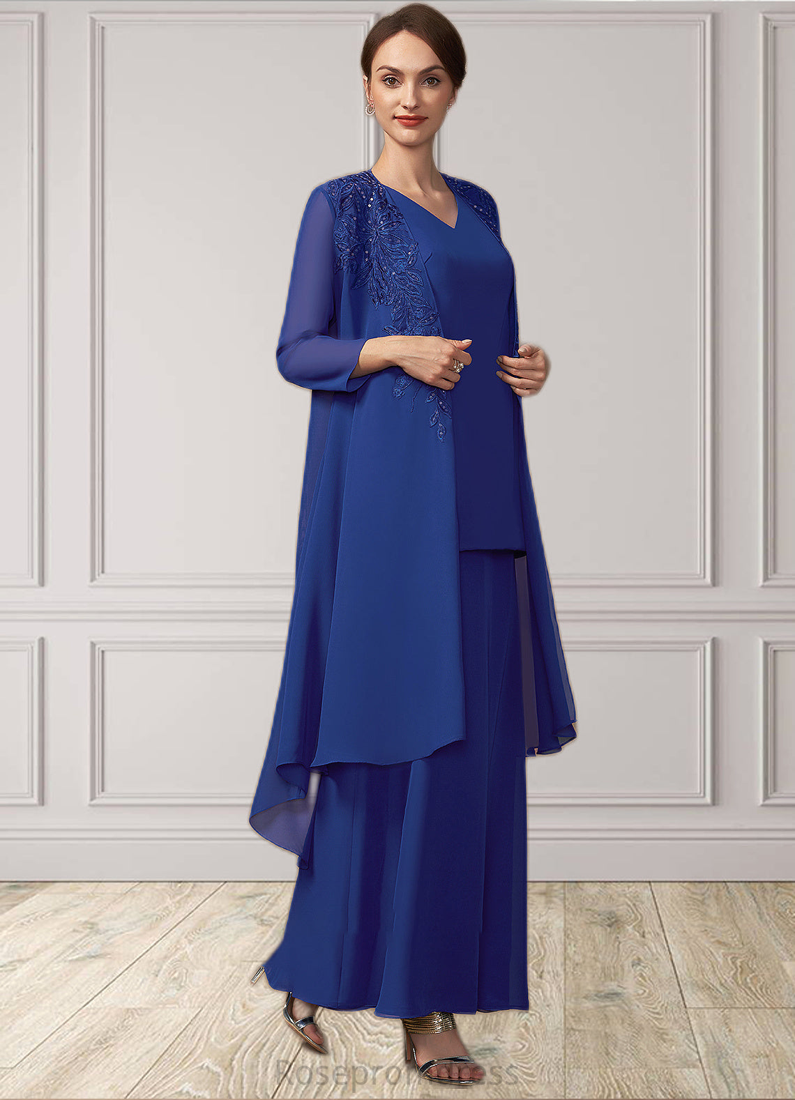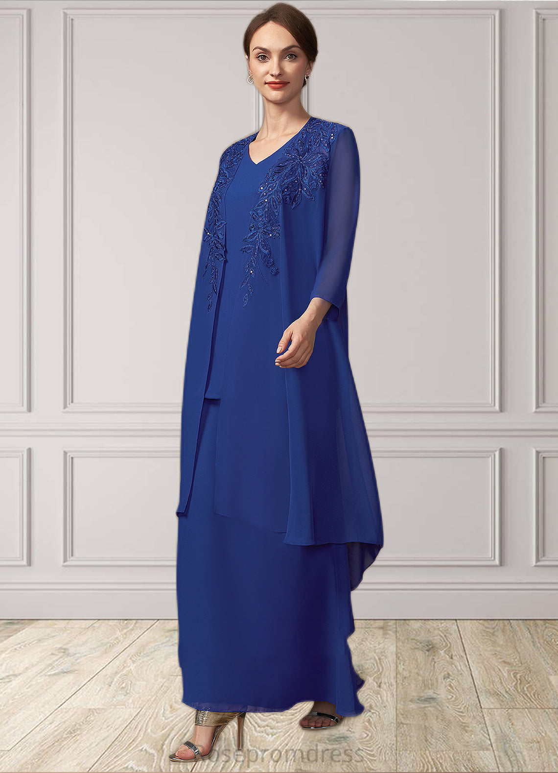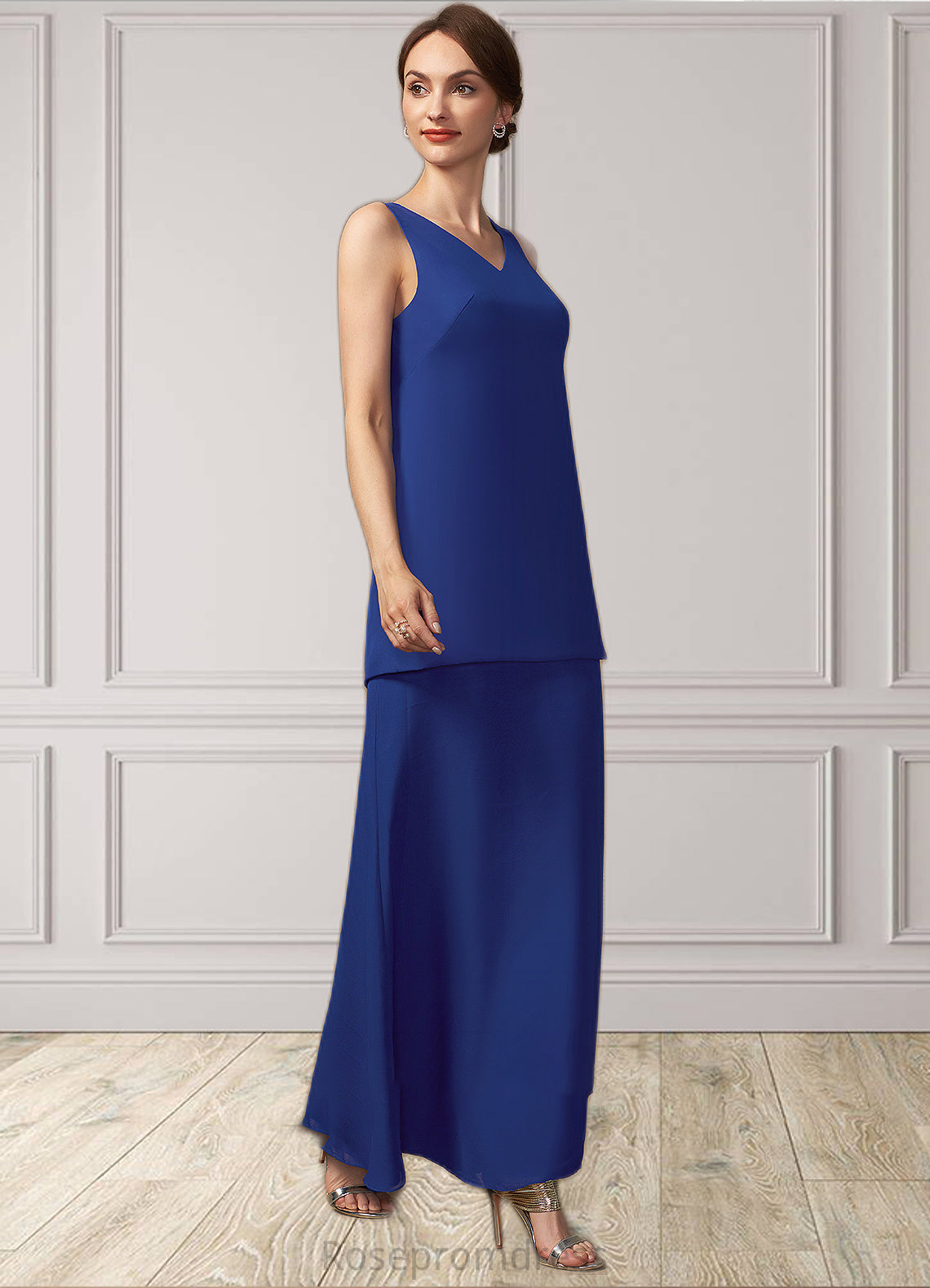 Peyton A-line V-Neck Ankle-Length Chiffon Mother of the Bride Dress SRS126P0014729