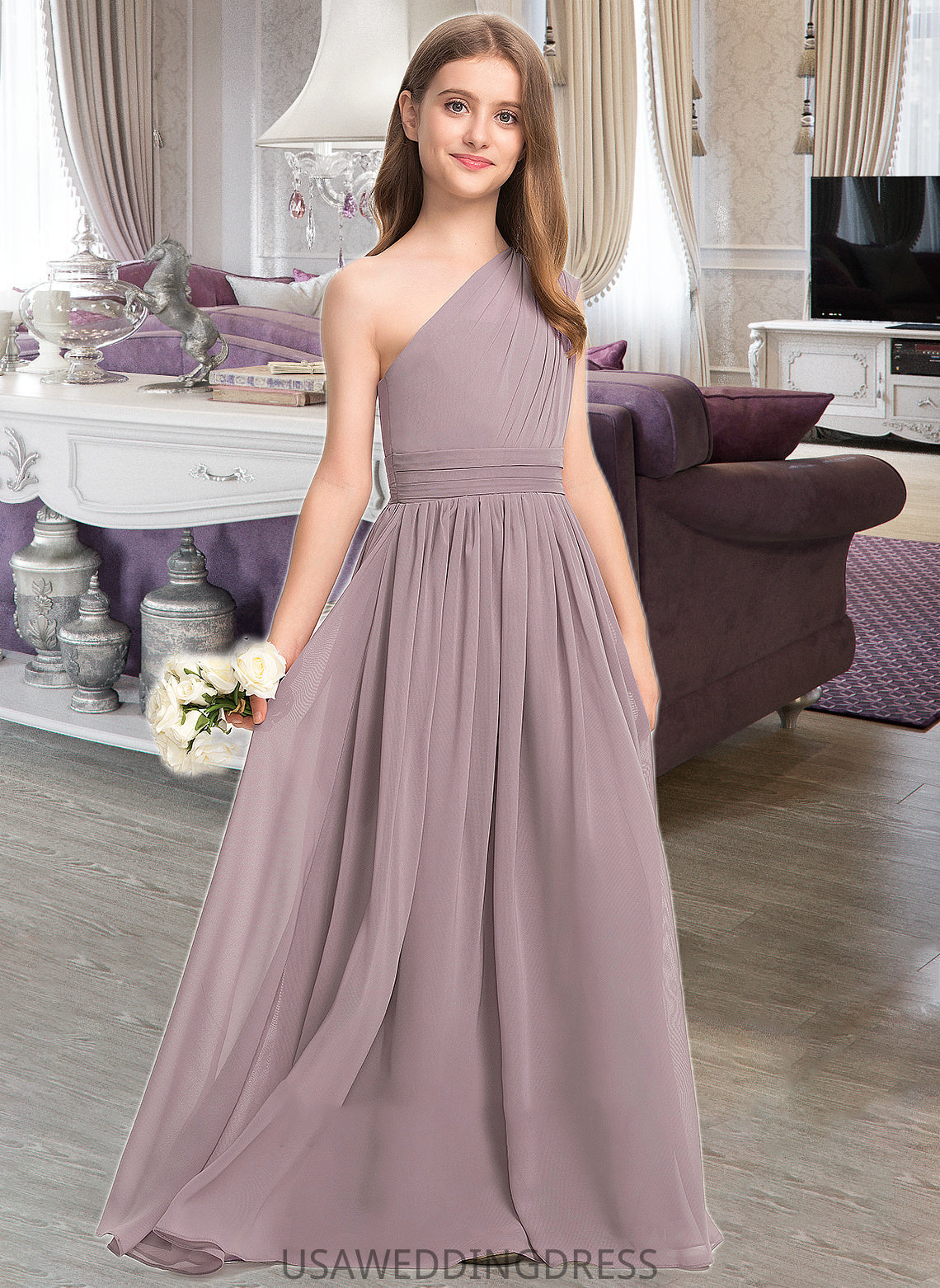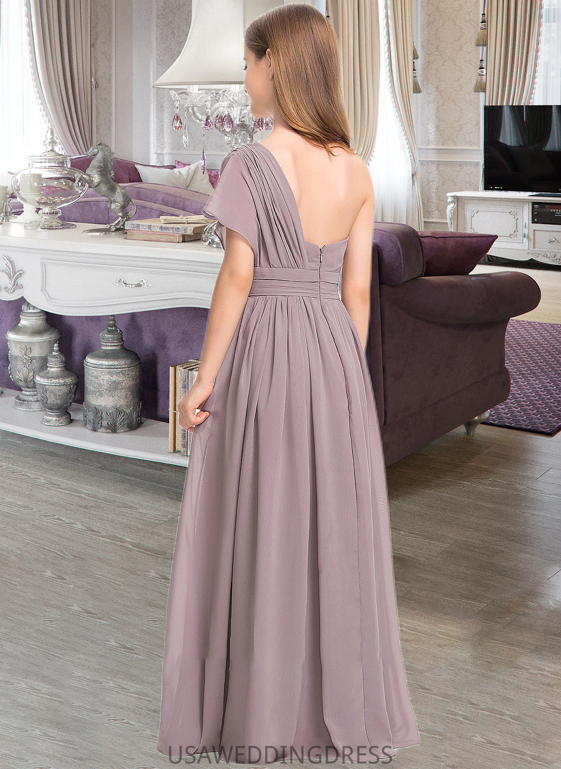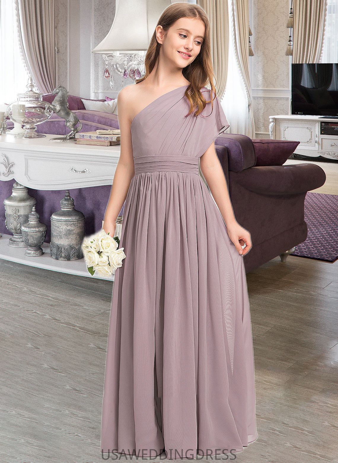 Phyllis A-Line One-Shoulder Floor-Length Chiffon Junior Bridesmaid Dress With Ruffle DSP0013400