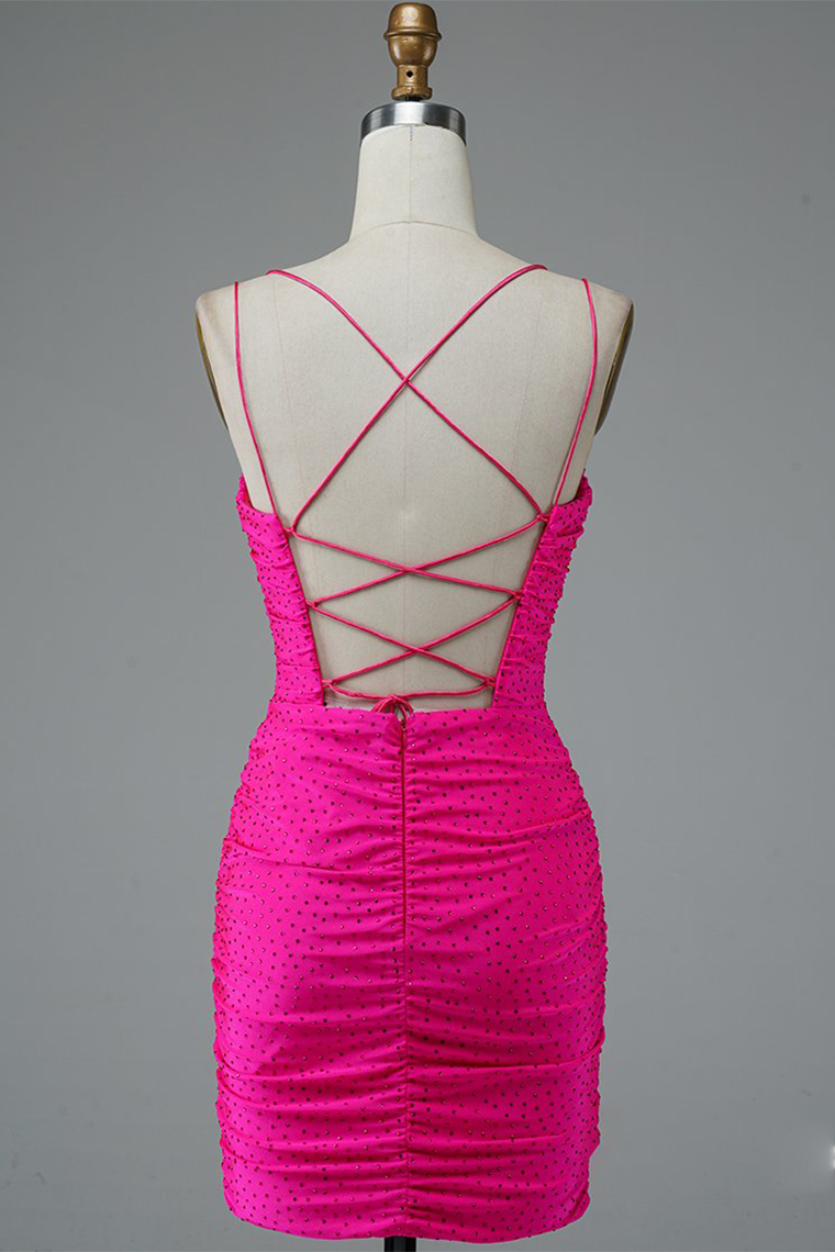 Pink Homecoming Dresses Eden Lace Up Spaghetti Straps Short Party Dress