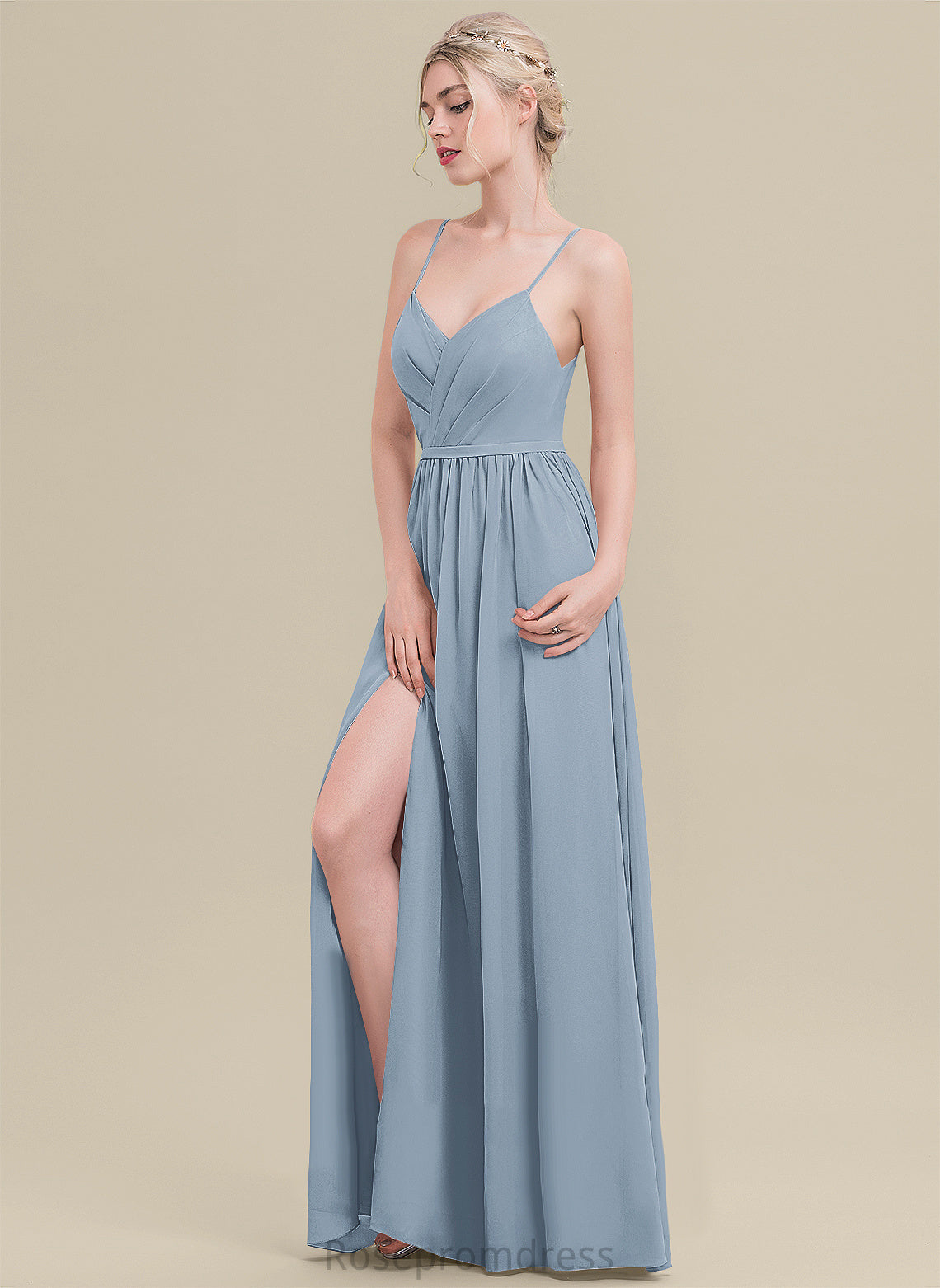 Pleated A-Line Length Floor-Length Neckline Fabric Silhouette V-neck Embellishment Olivia Bridesmaid Dresses