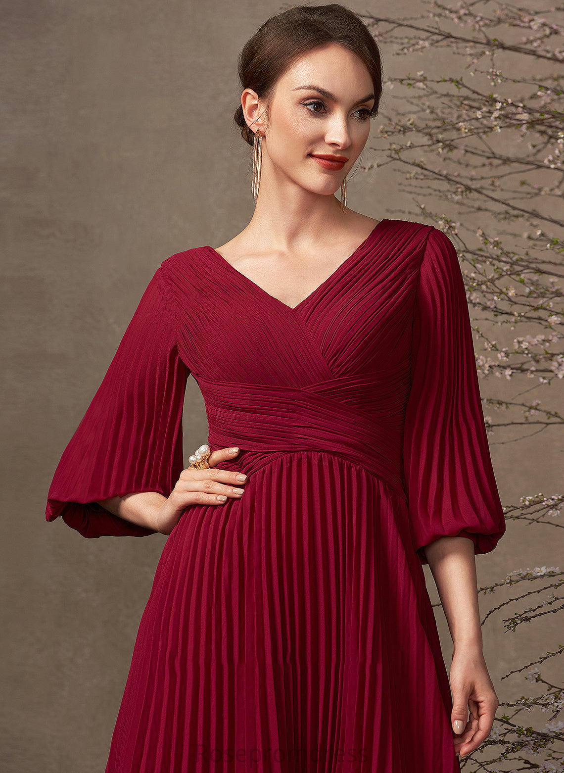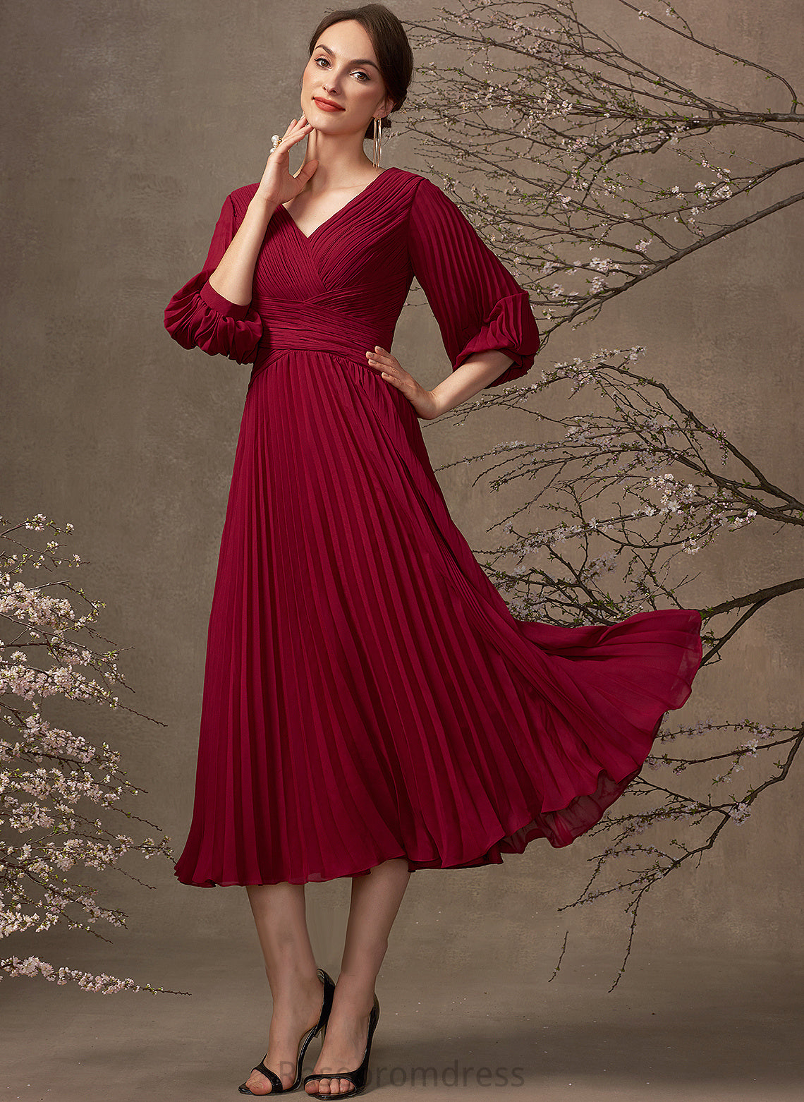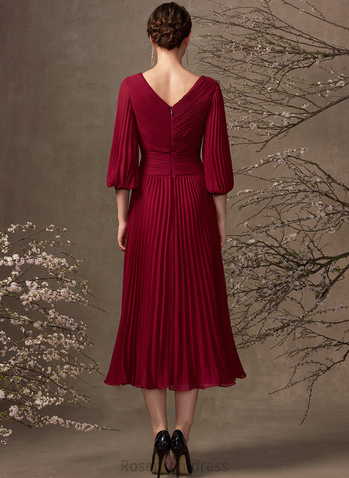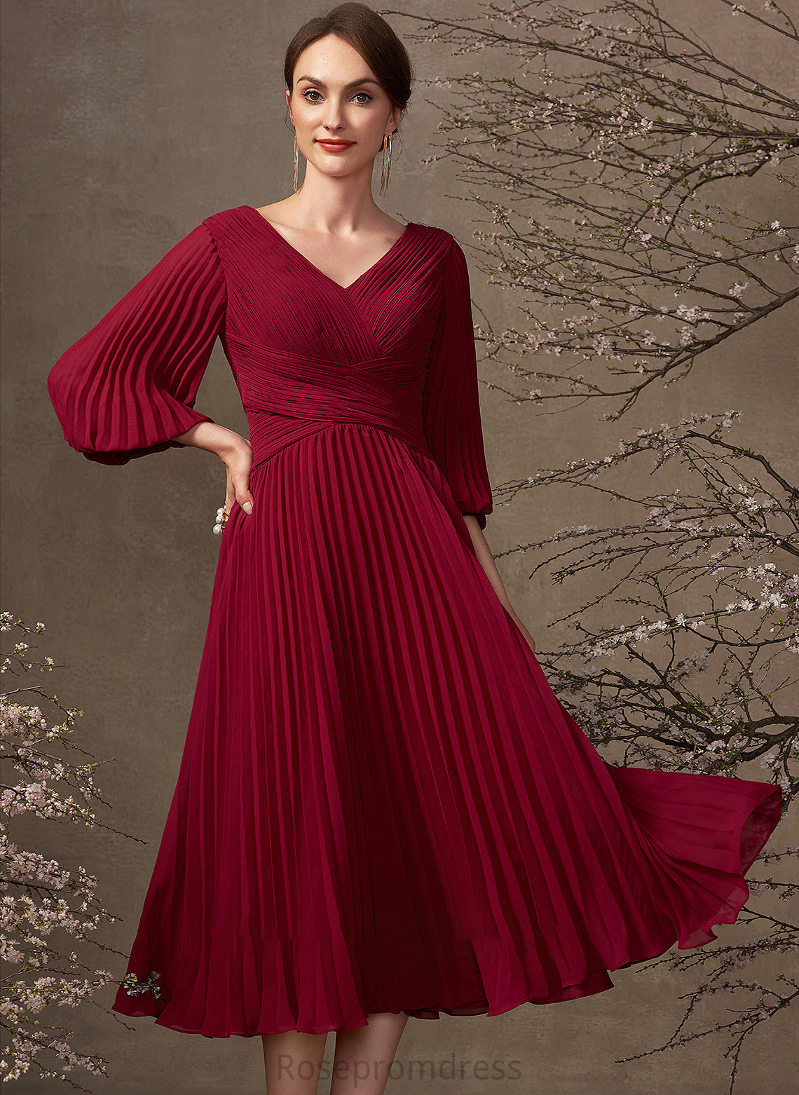 Pleated Chiffon Skyler A-Line Bride Mother Mother of the Bride Dresses of With the V-neck Dress Tea-Length